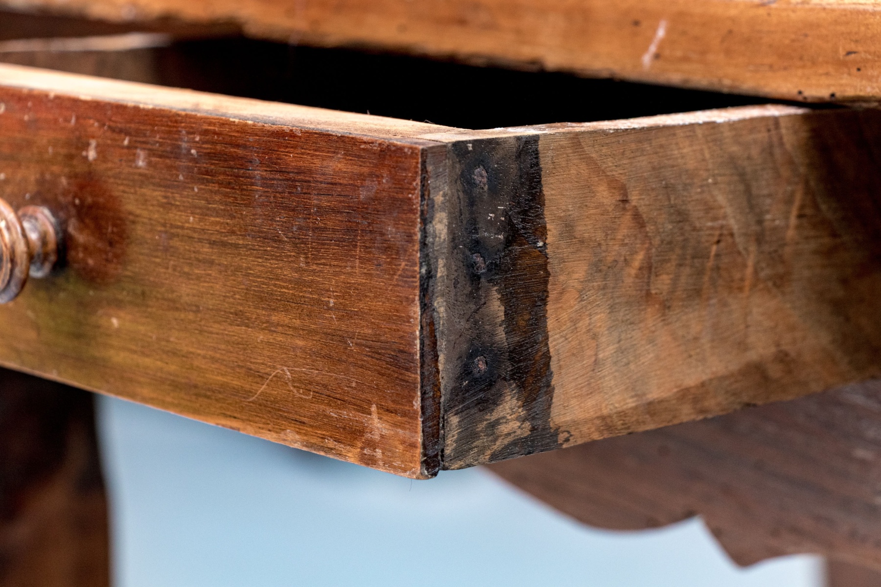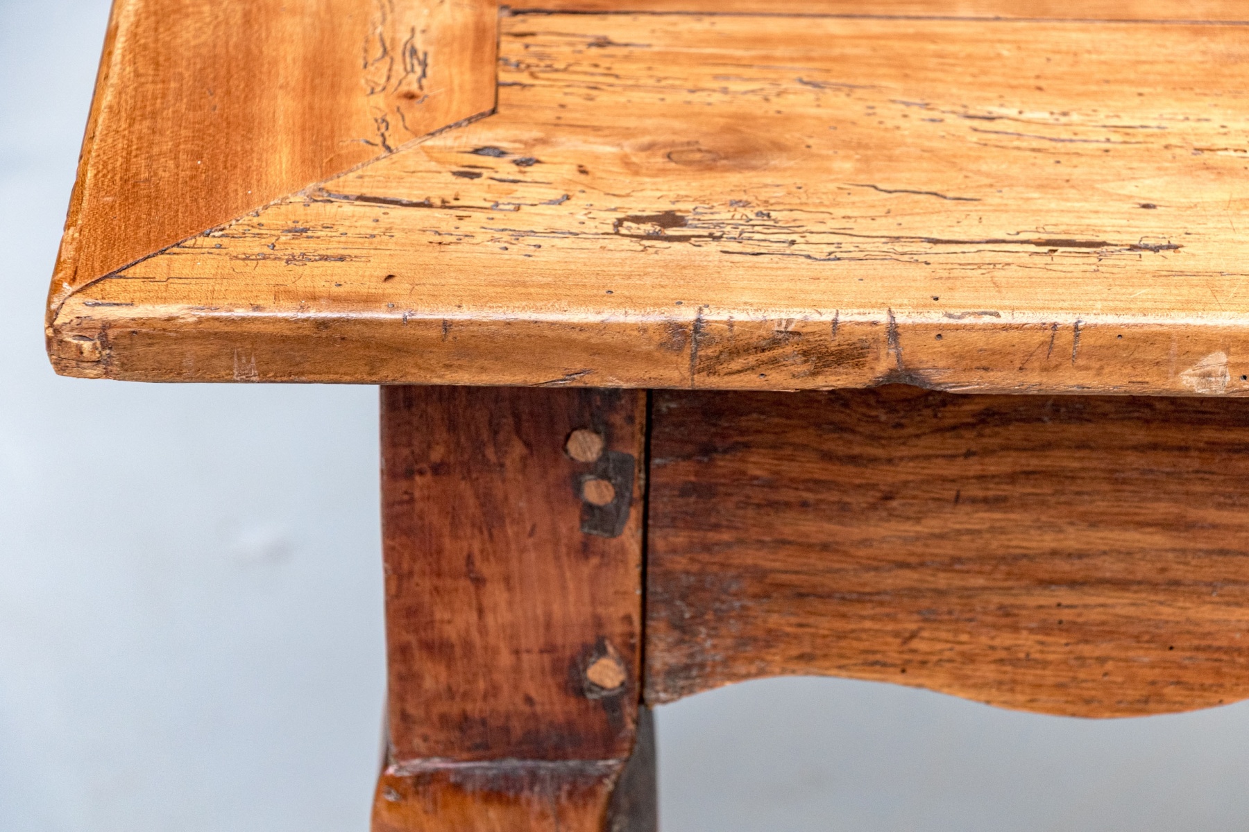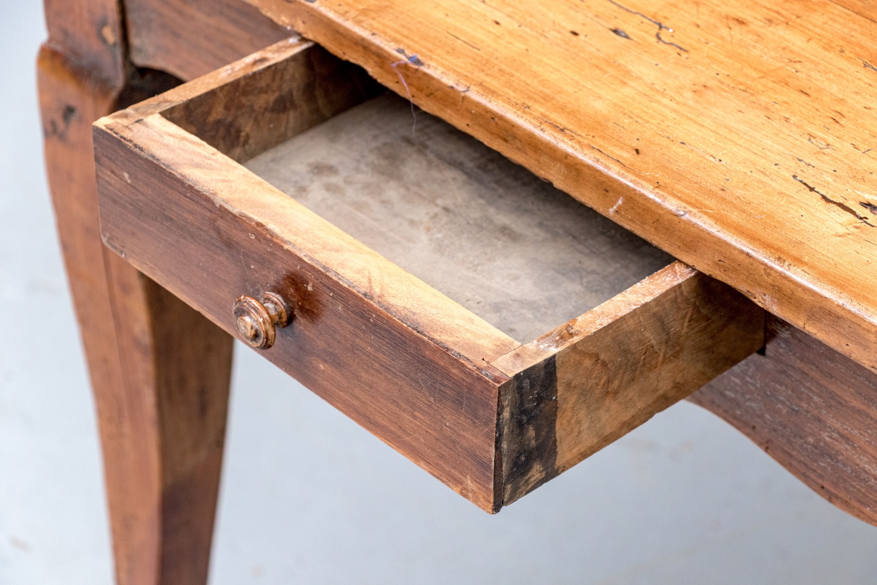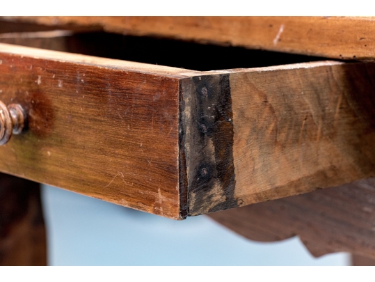 Condition: Please see detail photos. There are various acceptable signs of age including sporadic and attractive worming, work marks and wear to the top surface, nicks and wear to the edge and corners, stable board separation and slightly tight drawers. All of the aforementioned is for accuracy as the wear is ameliorated by a later polish and the Table presents in a particularly fine Provincial French manner.