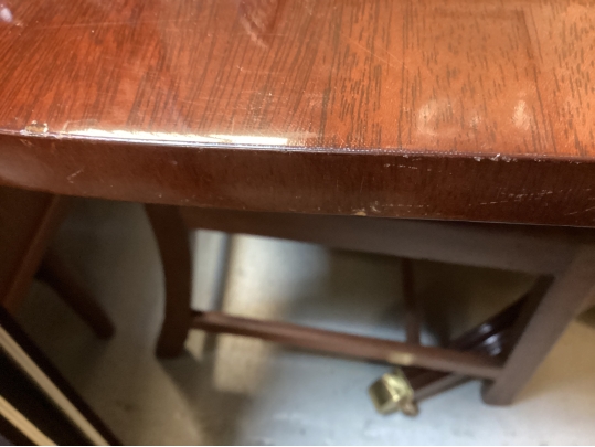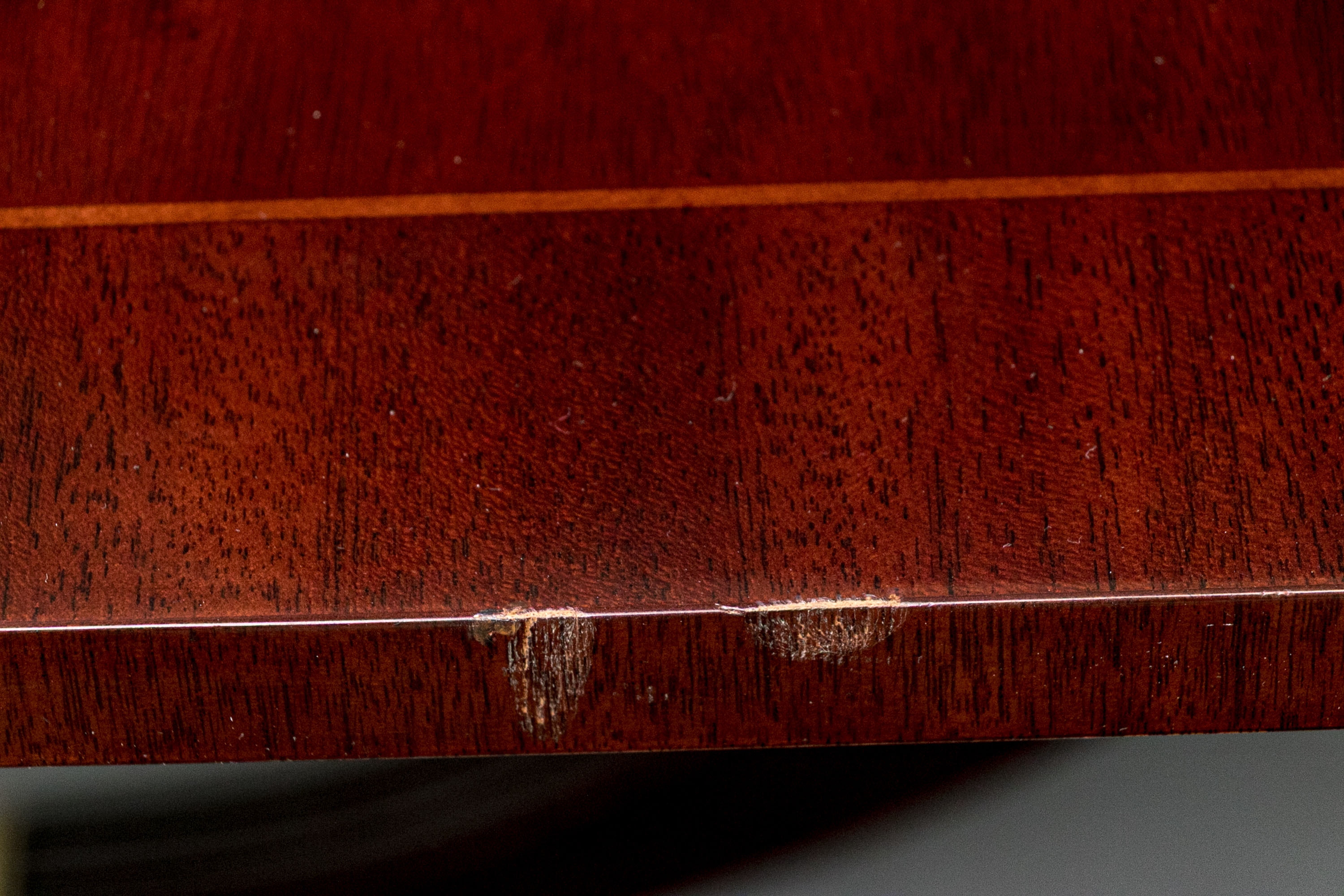 Condition: Please see detail photos. Various signs of age and use include areas to the edges with scraping and finish losses as well as Wear and chips to the edges, some scratches to the table top with the table retaining a particularly fine presentation.