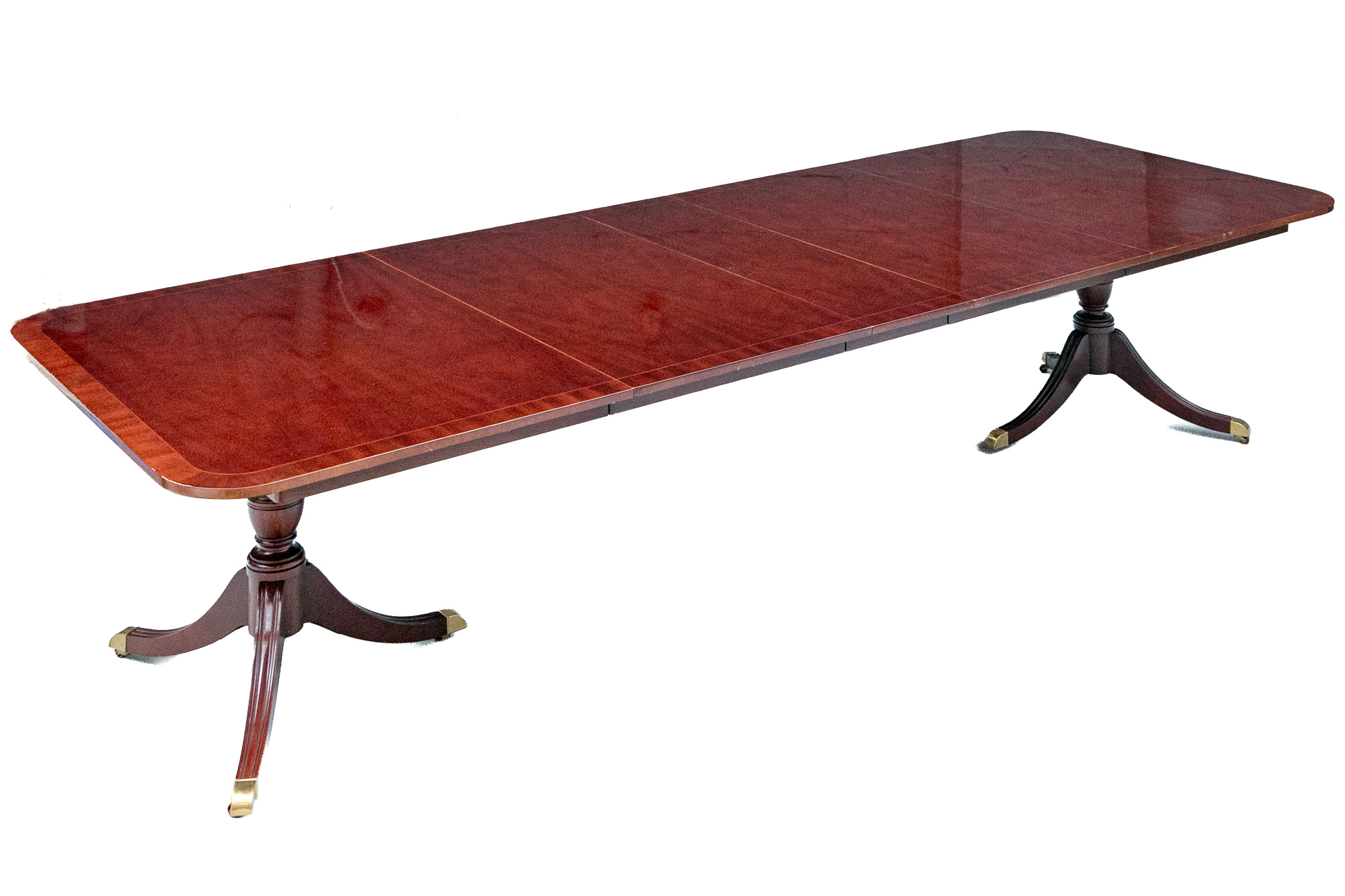 Classic Kindel Georgian Twin Pedestal Mahogany Extension Dining Table