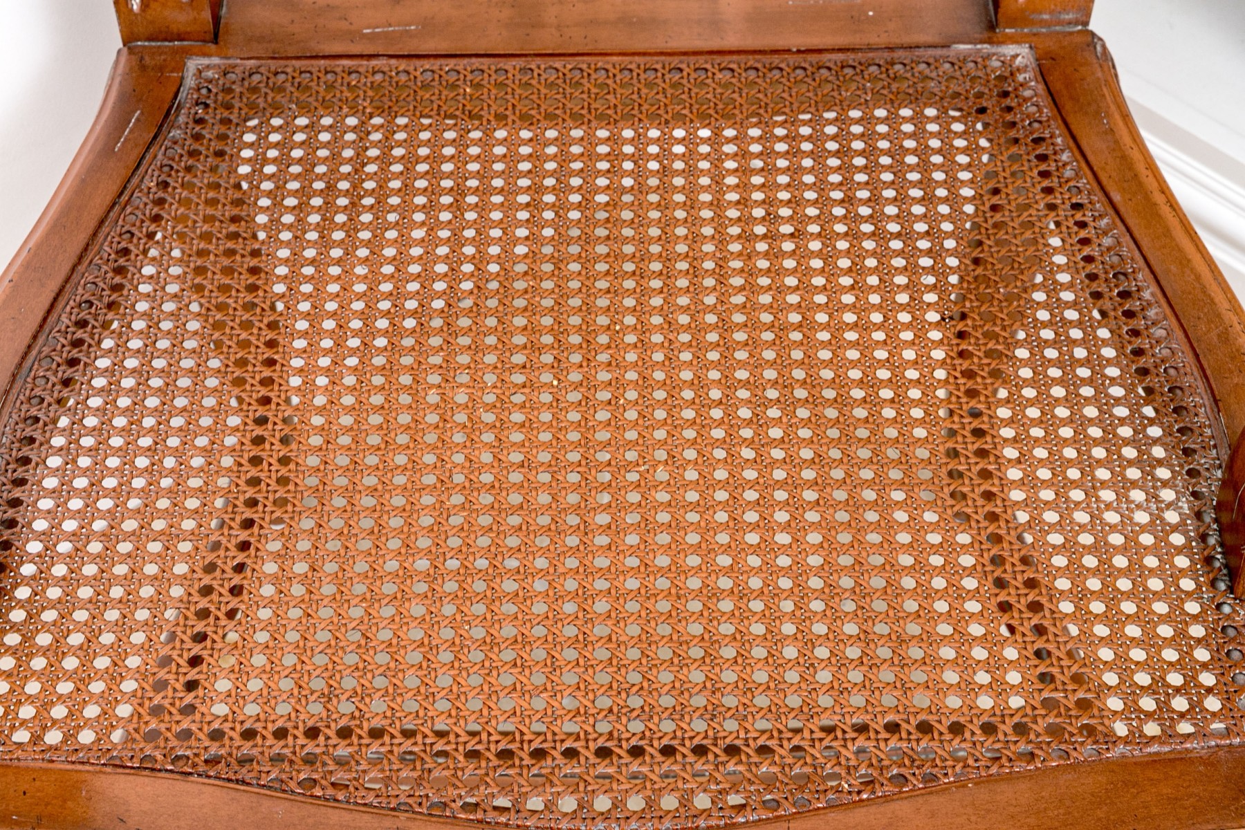 On front carved cabriole legs with handsomely carved exposed wood frame with shaped seat back with fitted cane seat and seat back.
