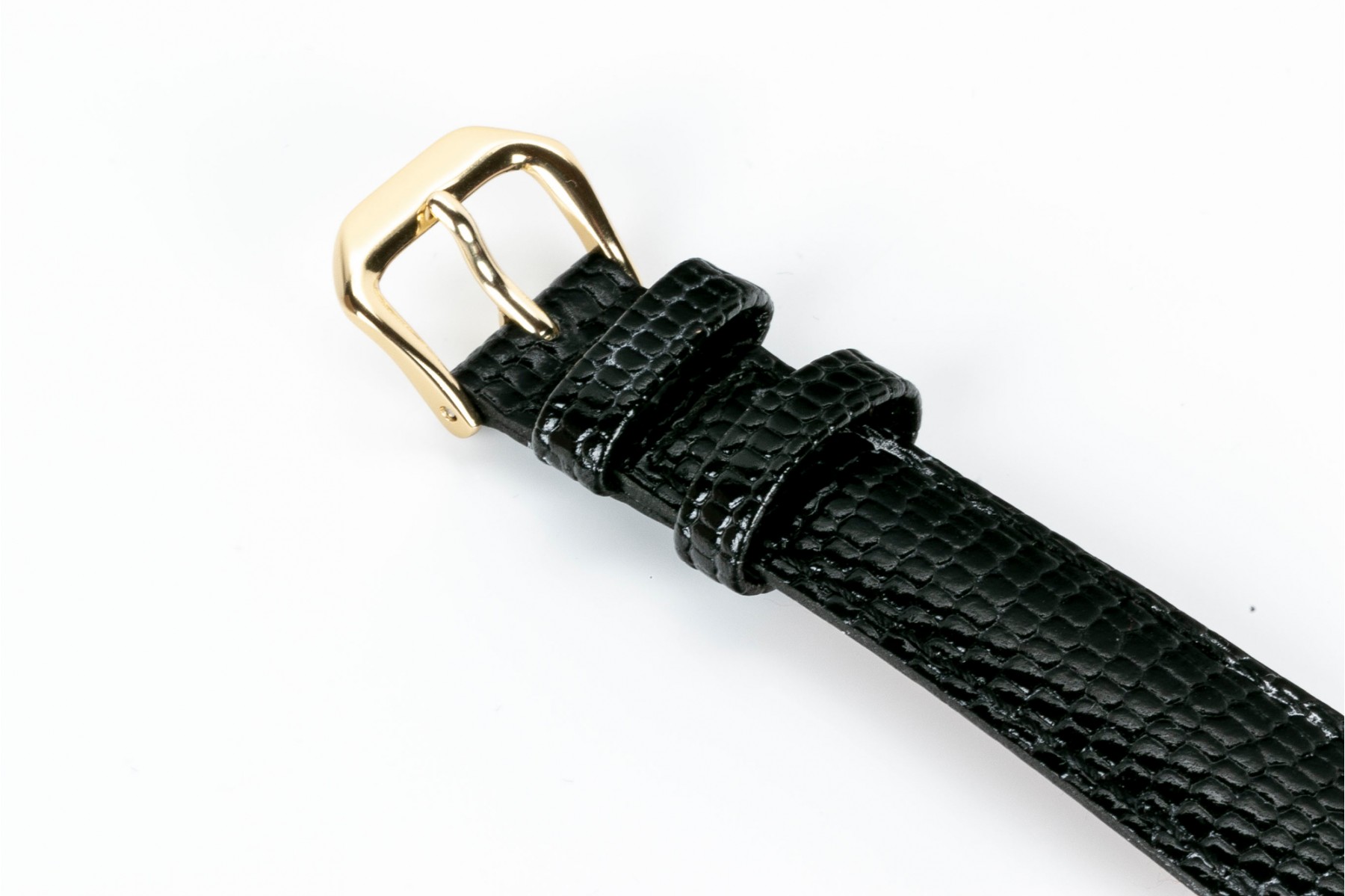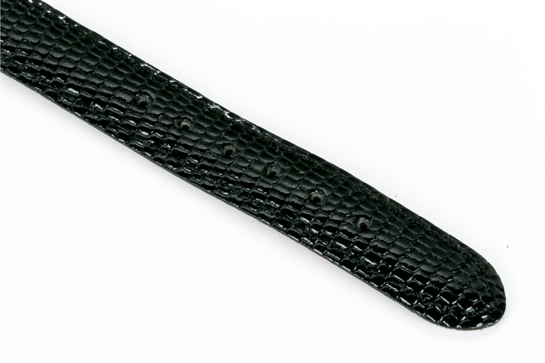 Condition: New battery needed, working condition unknown. Leather strap is scuffed and worn.