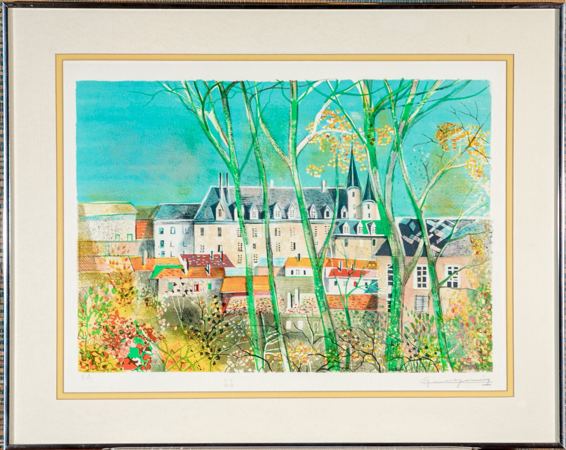 Presented in a silver tone frame, double matted and glazed.