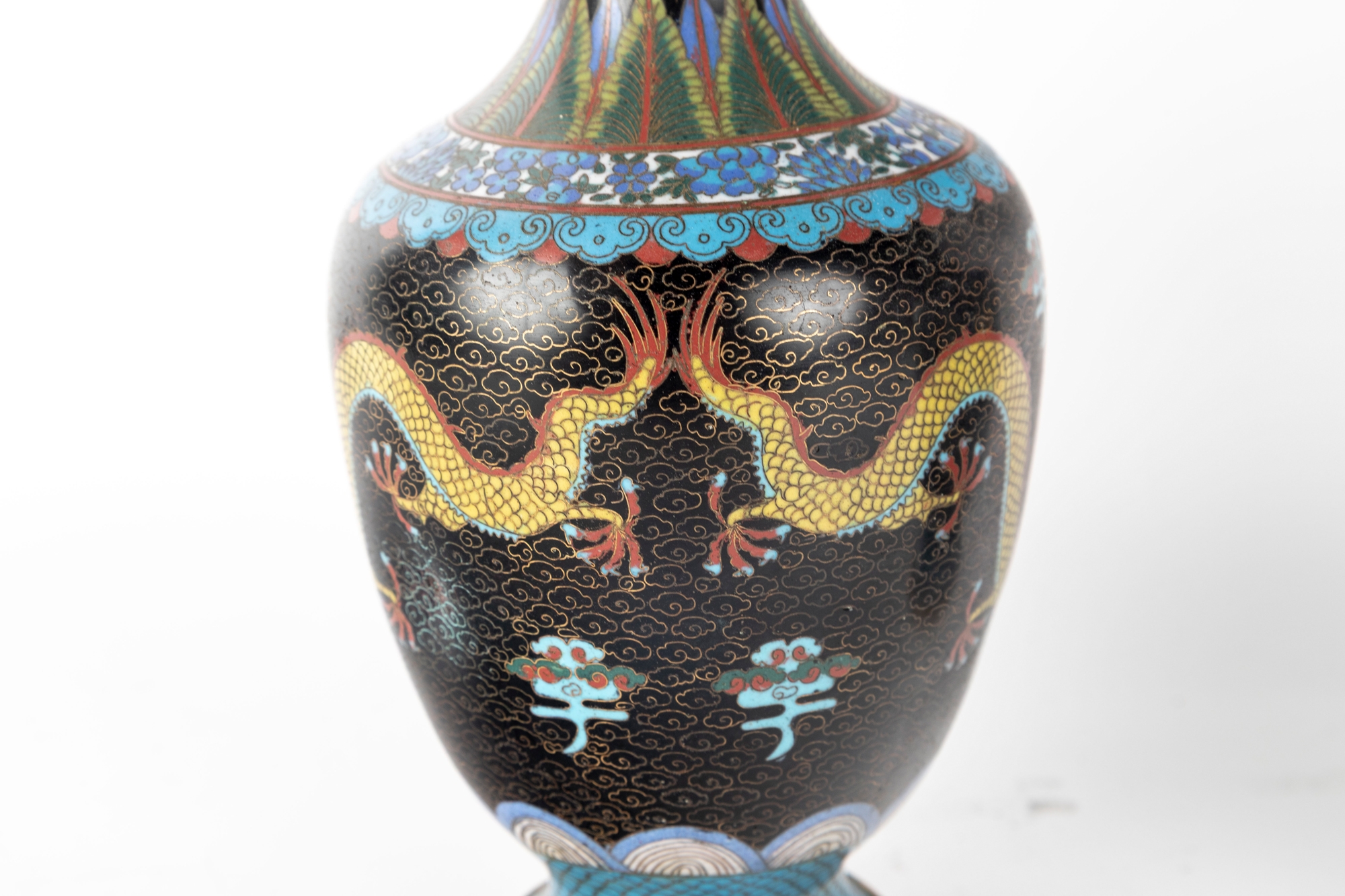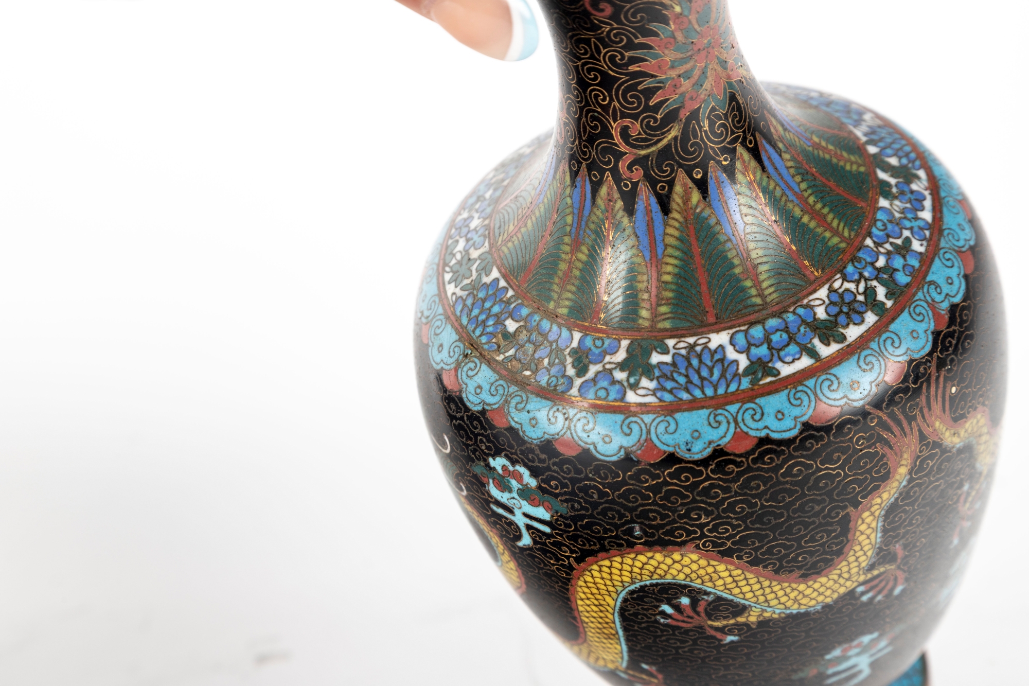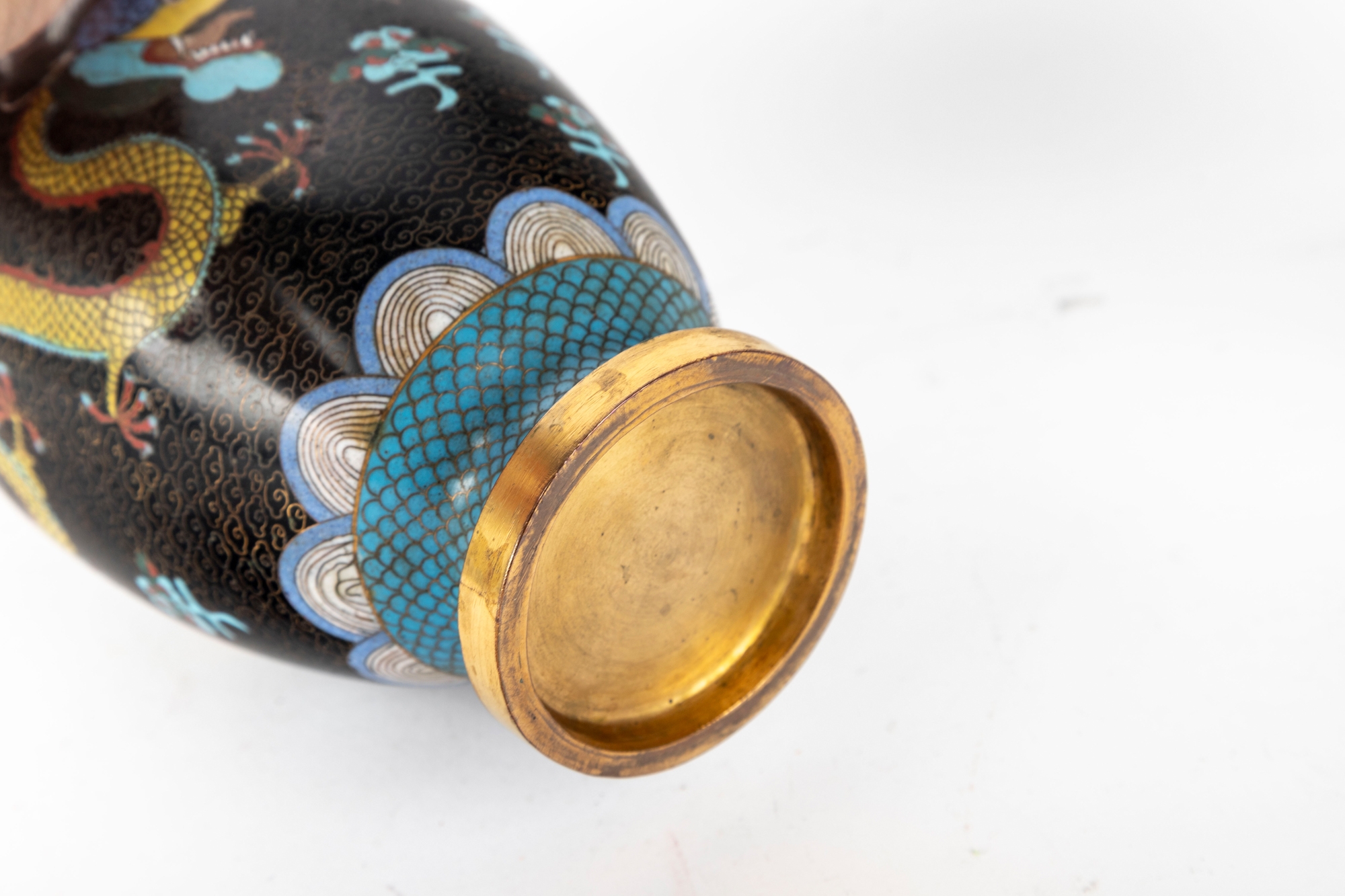Cloisonne & Enamel Vintage Brass Chinese Dragon Vases