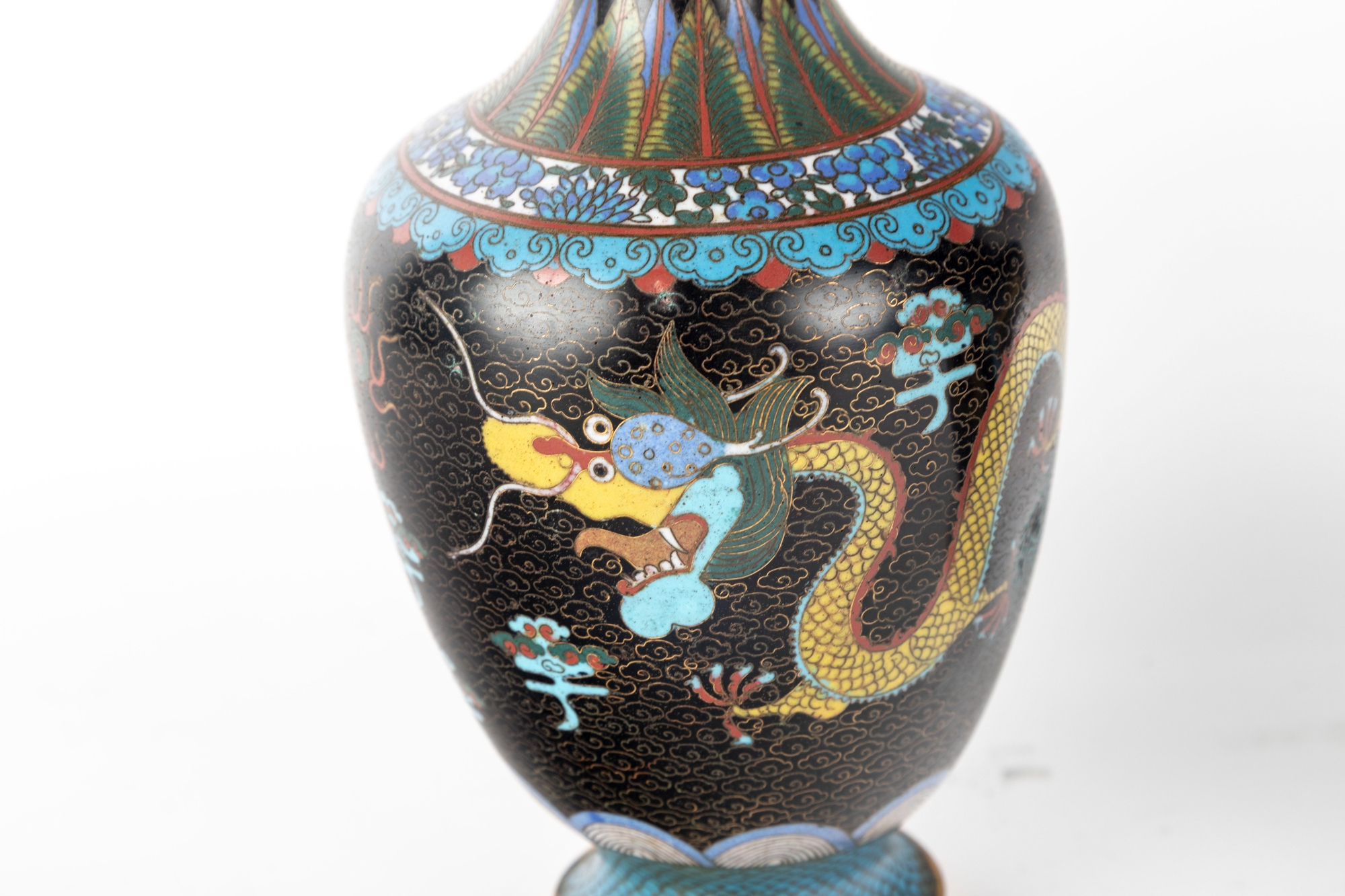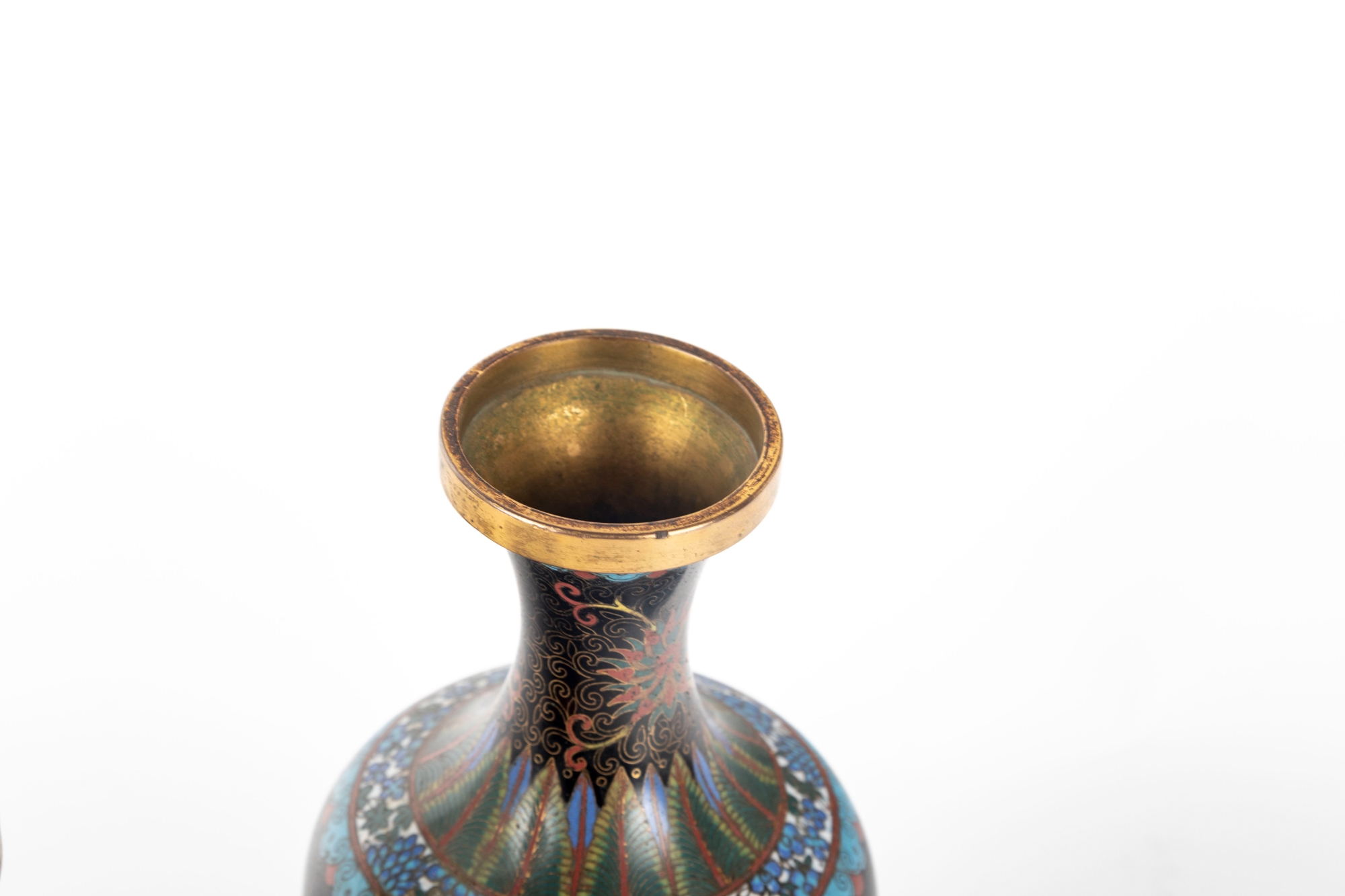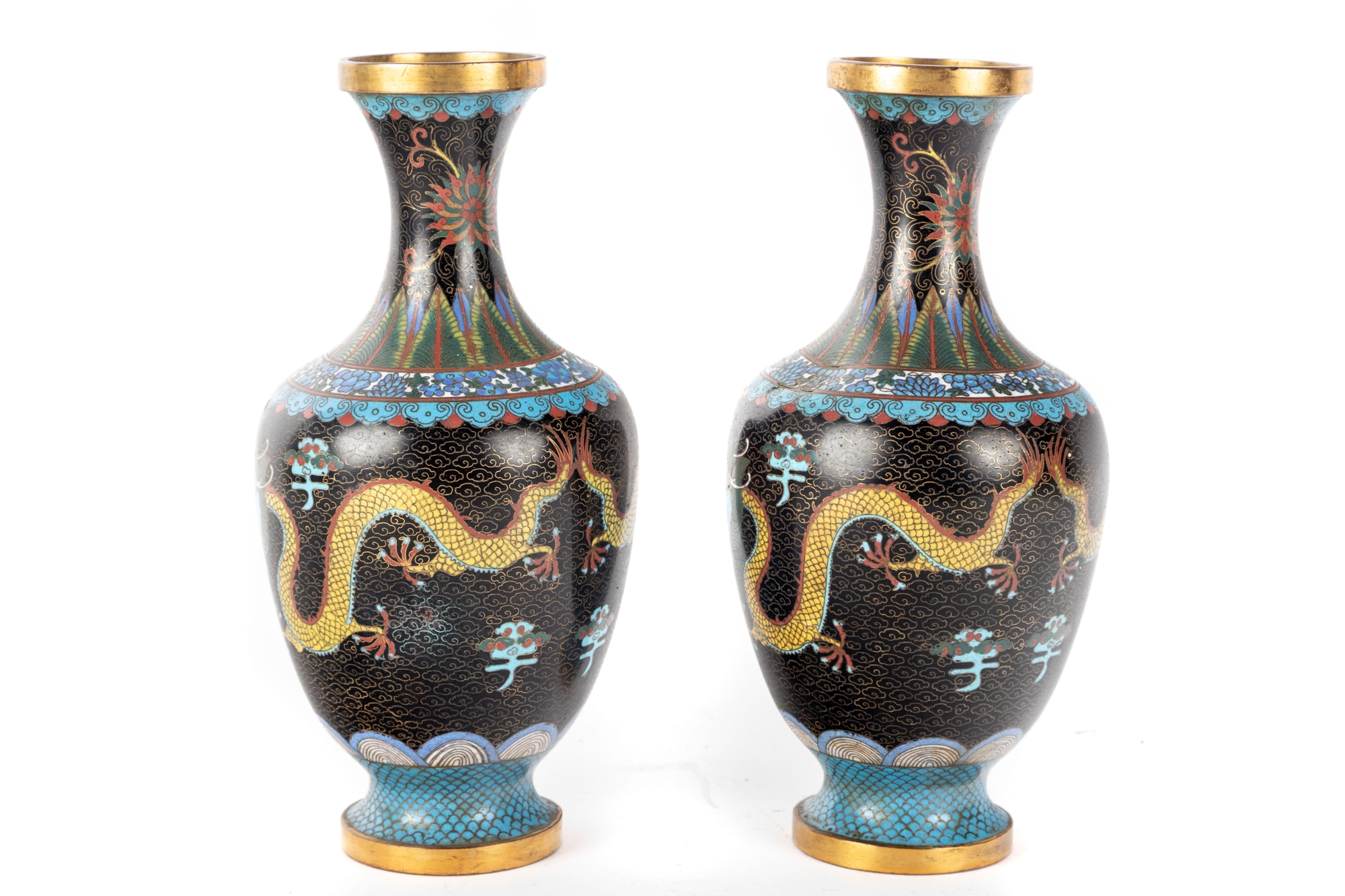 Cloisonne & Enamel Vintage Brass Chinese Dragon Vases