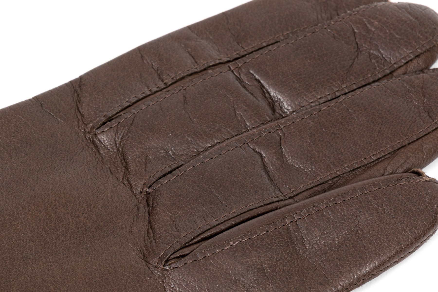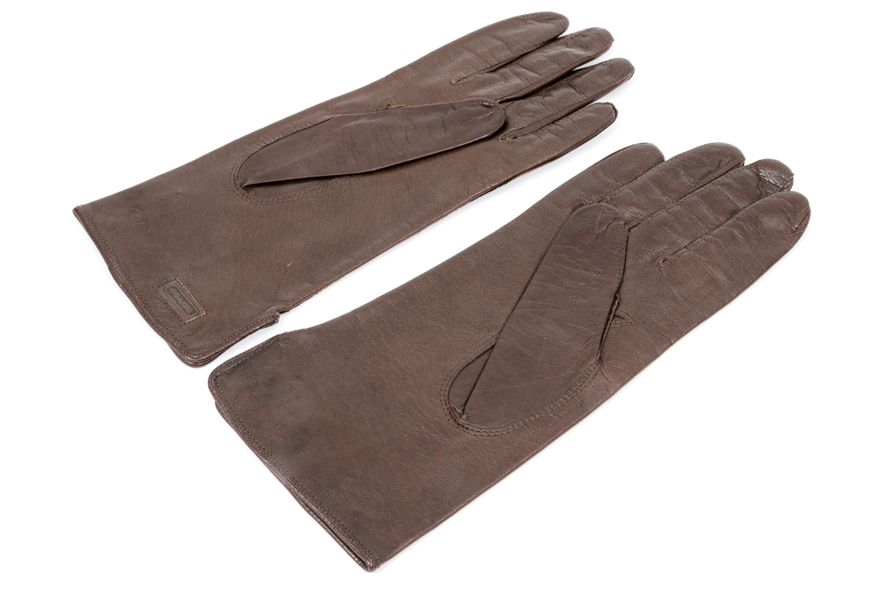 Coach handsome brown leather and silk gloves, size 7 1/2