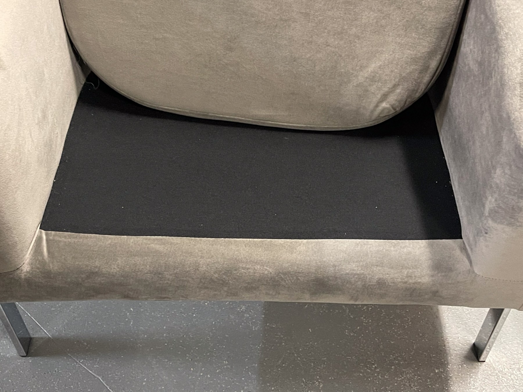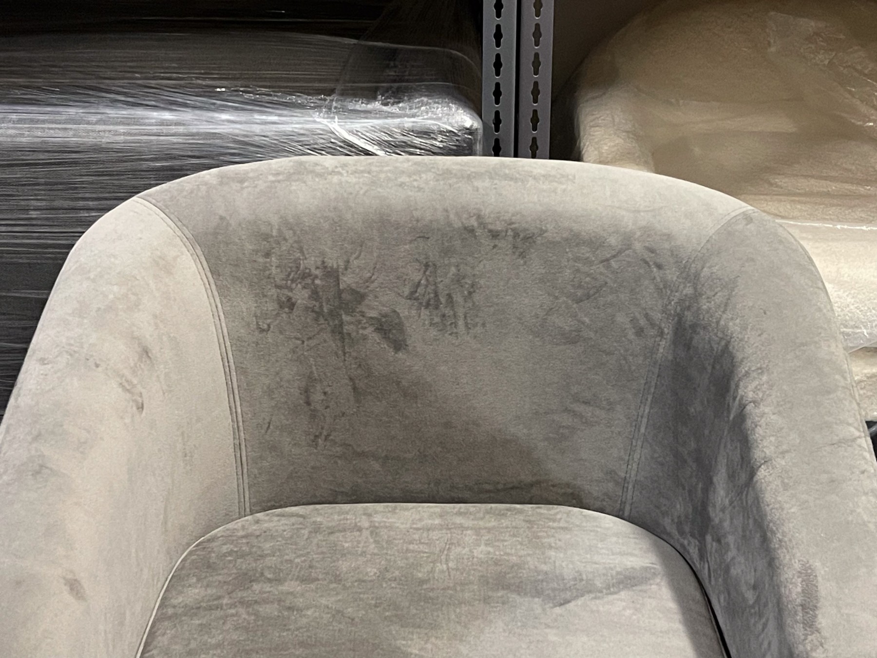 A Coastal Furniture modern design grey velvety fabric upholstered accent chair with barrel back, sturdy construction, chrome base and legs. From Accent Seating Collection by Coaster Furniture.