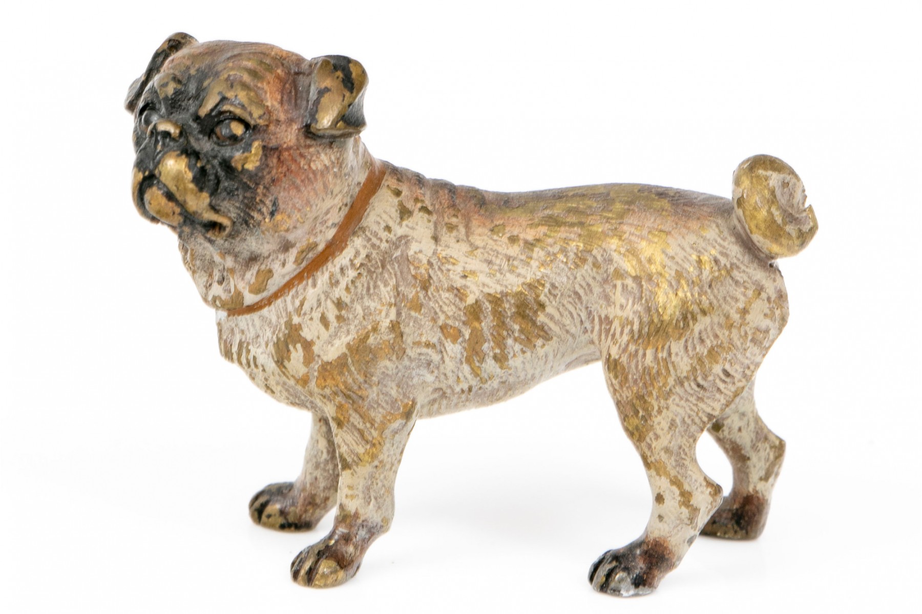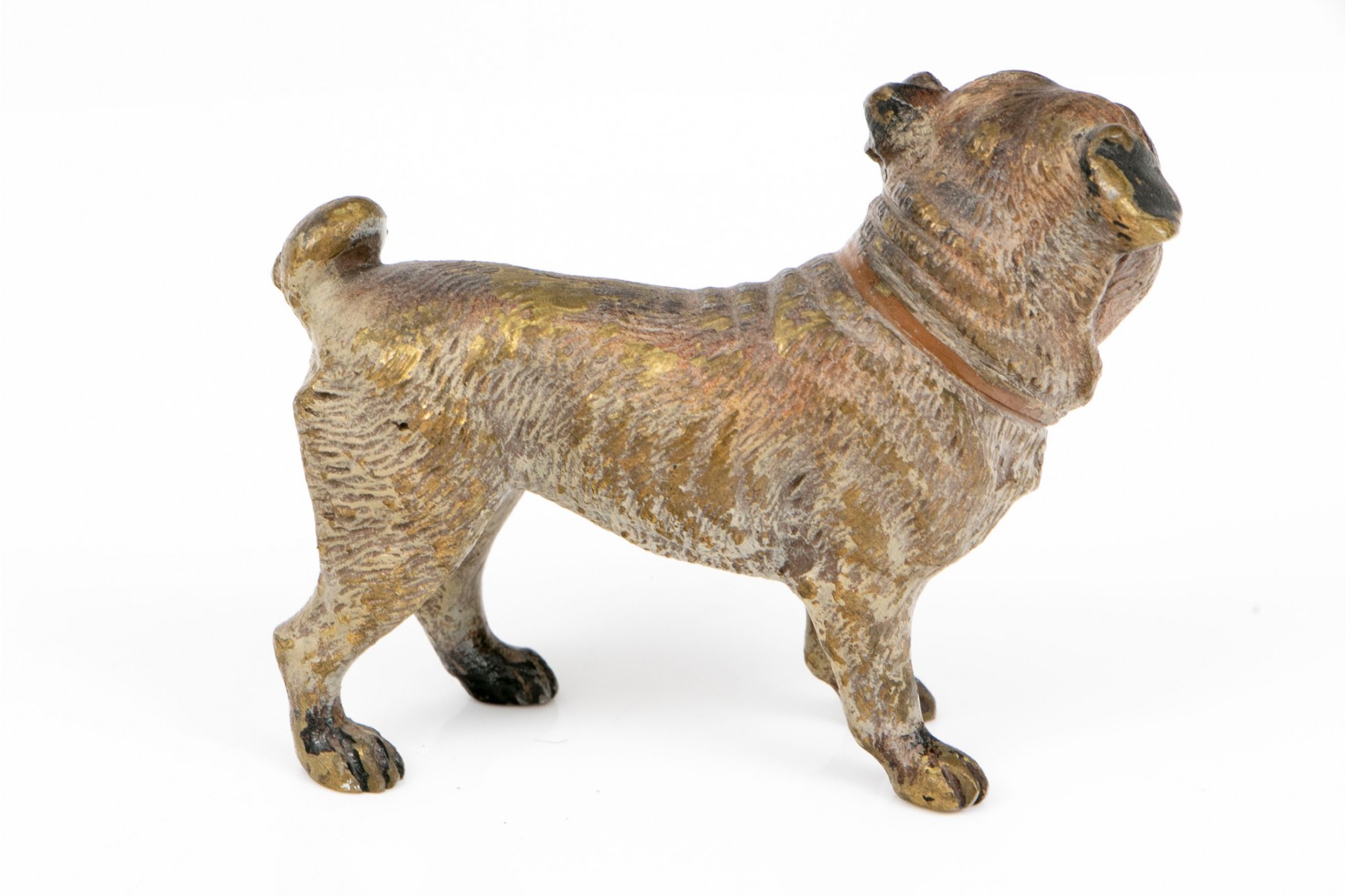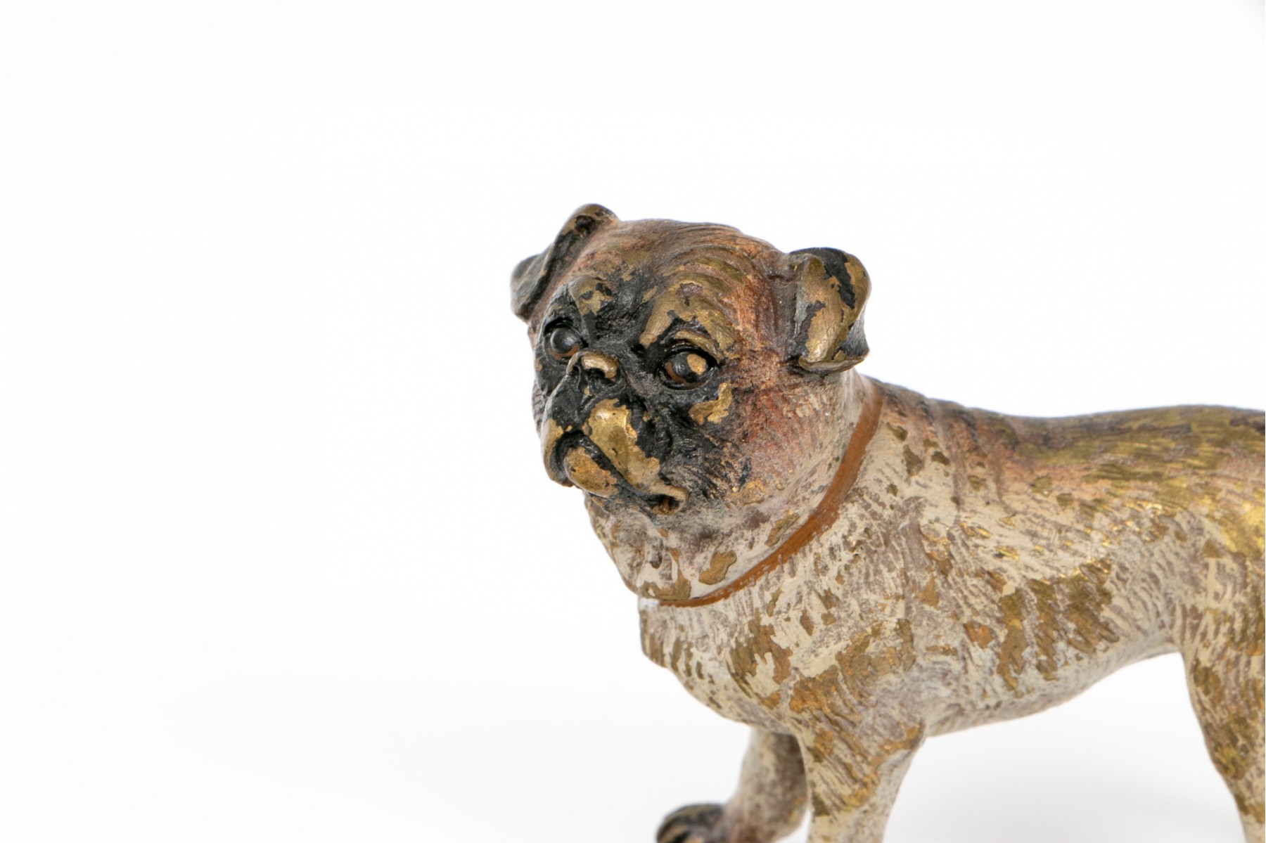 Cold painted bronze of a standing bull dog wearing a collar. Unmarked.