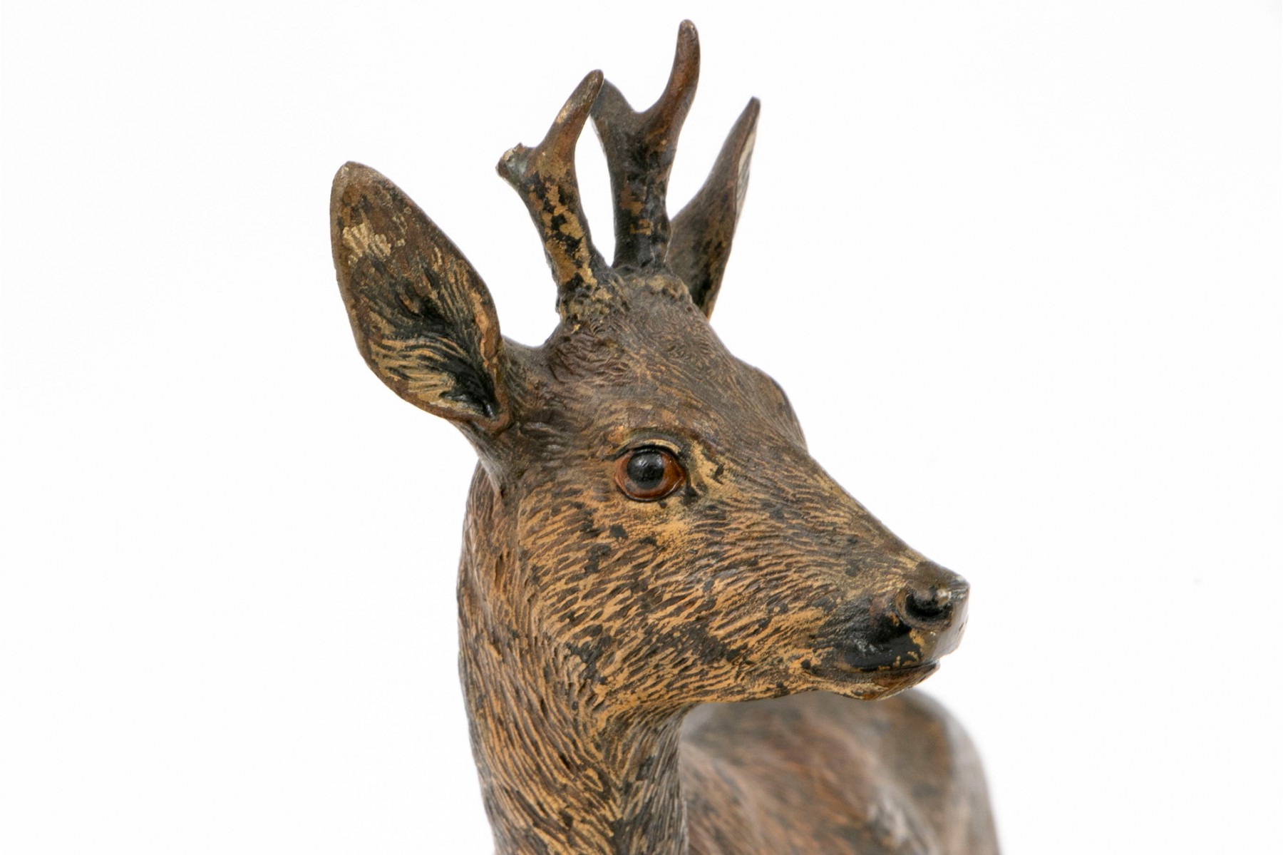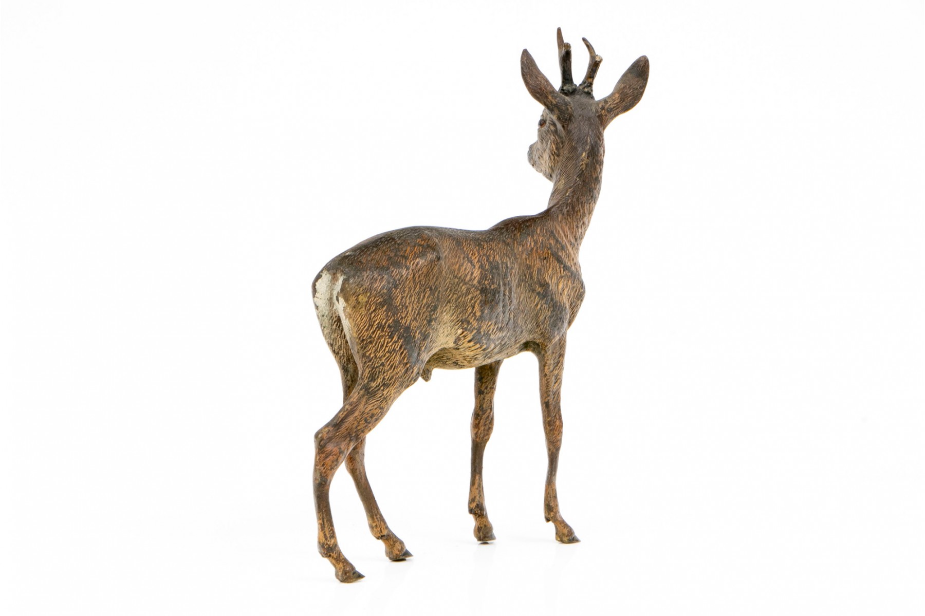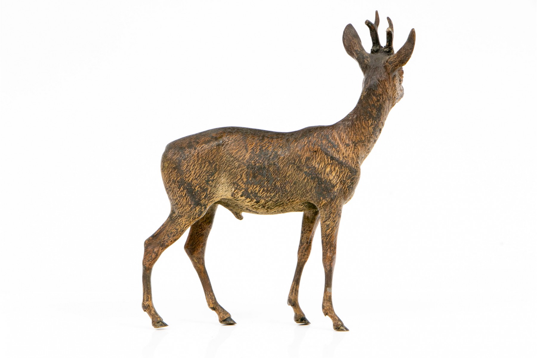 Cold painted Vienna bronze figure of a standing stag with antlers. Unmarked.