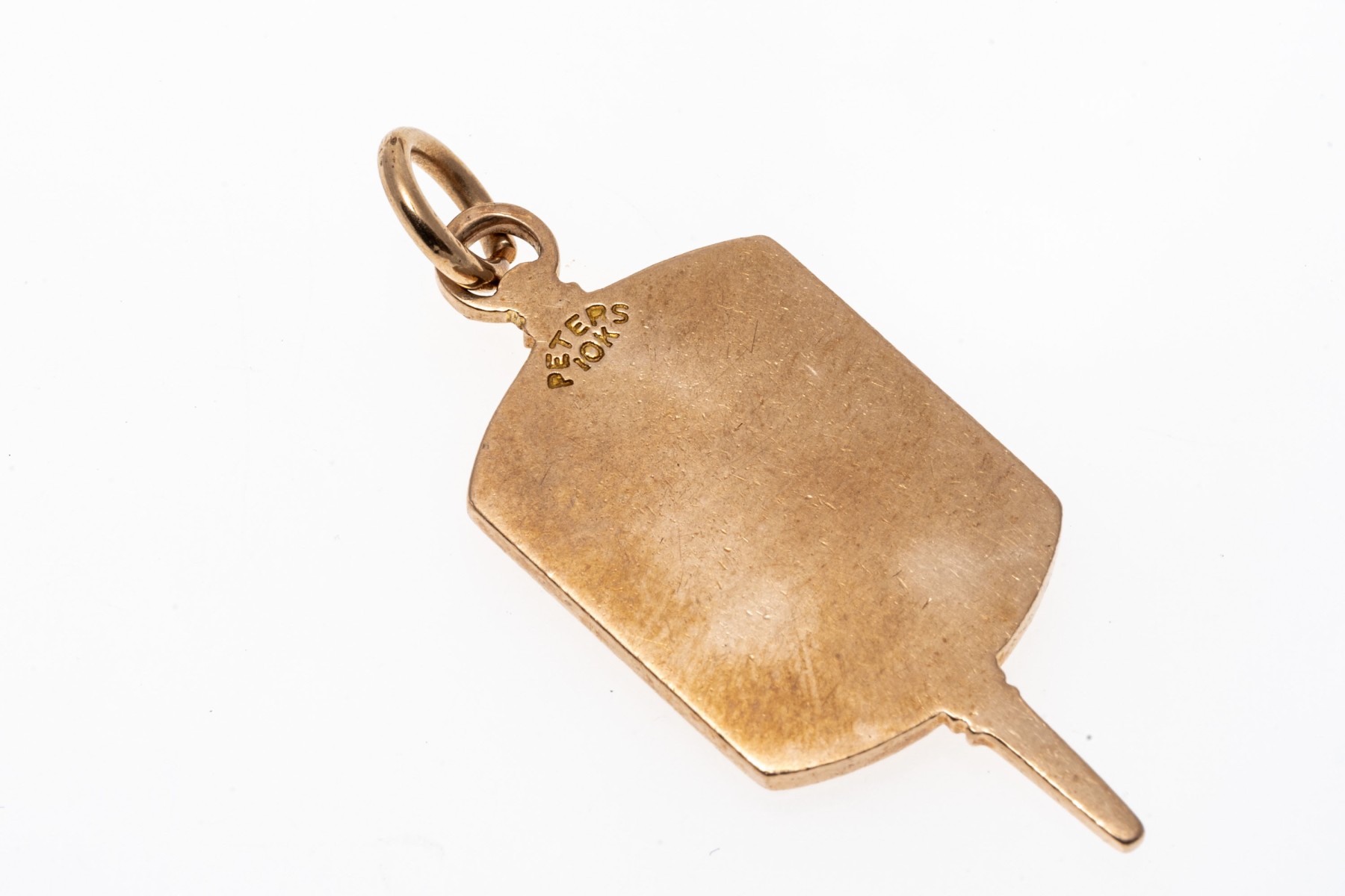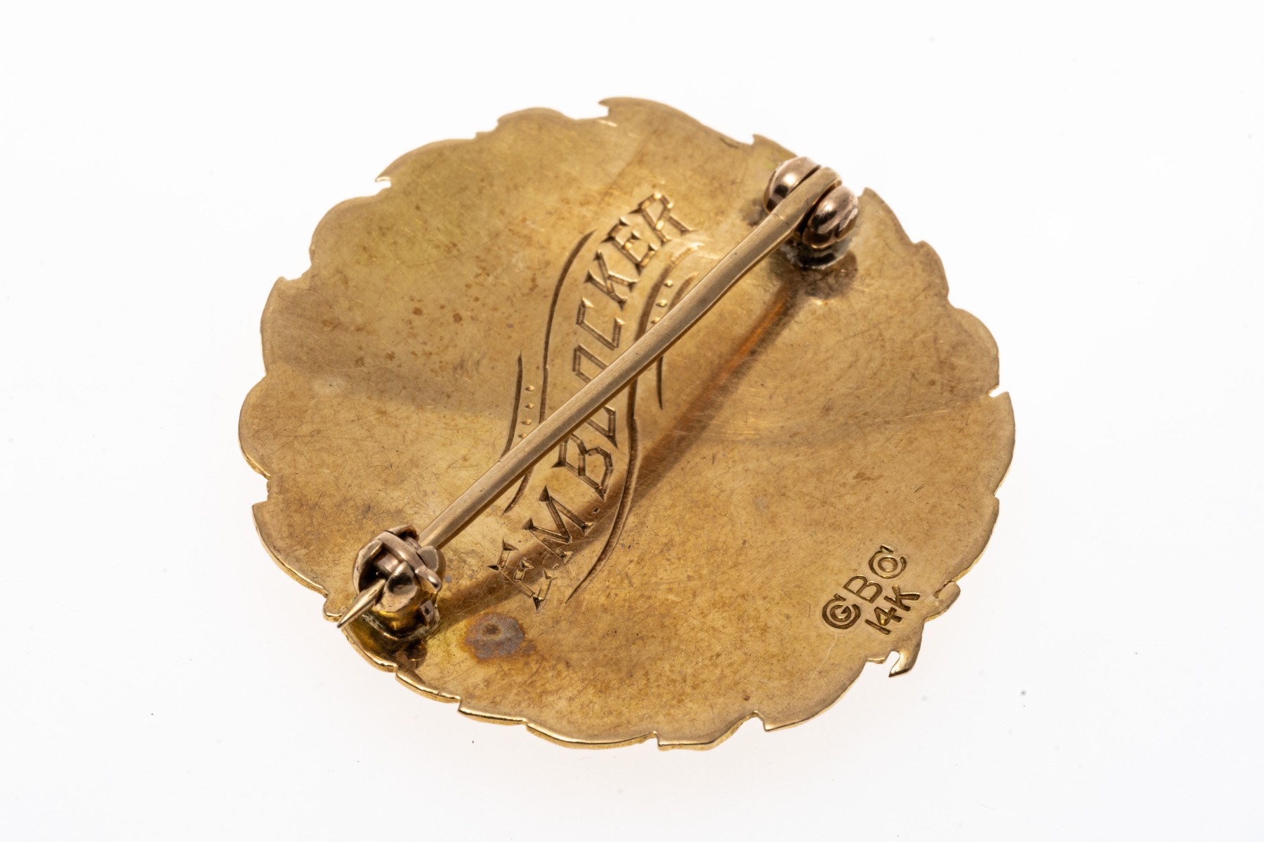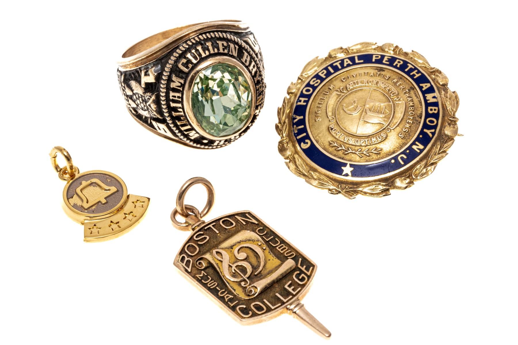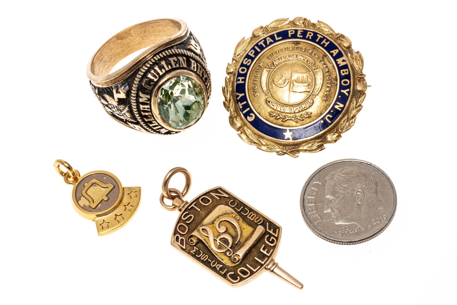 Lot of 10K and 14K scrap yellow gold. A 14K brooch. 10K ring, pendant and watch fobs.