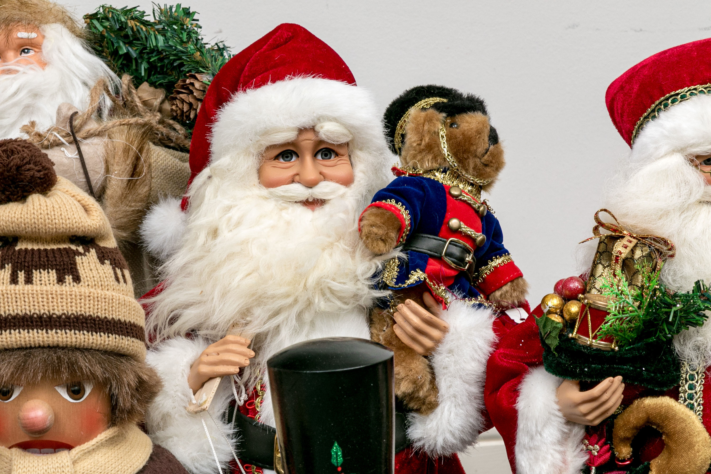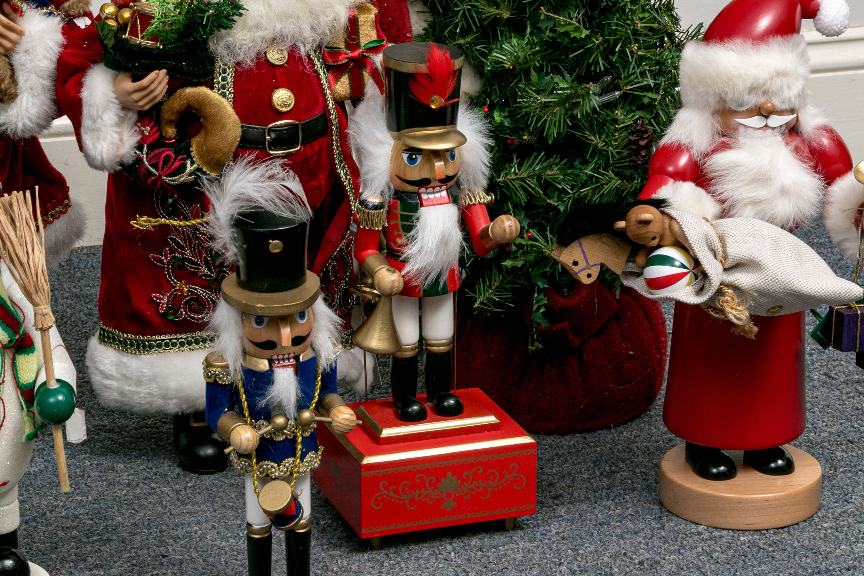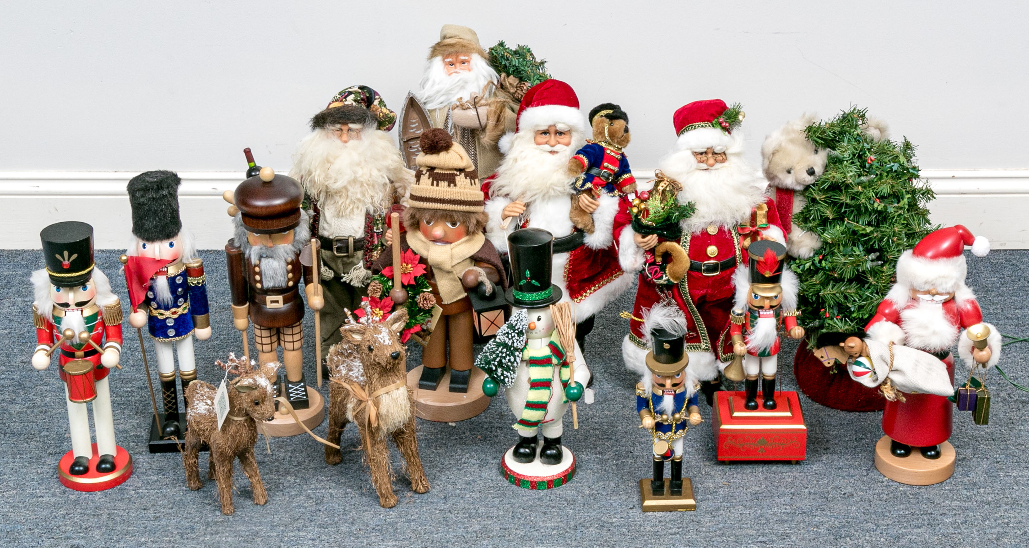 Including assorted, mixed media figures of Santa Claus, reindeer, snowmen with christmas trees and more.