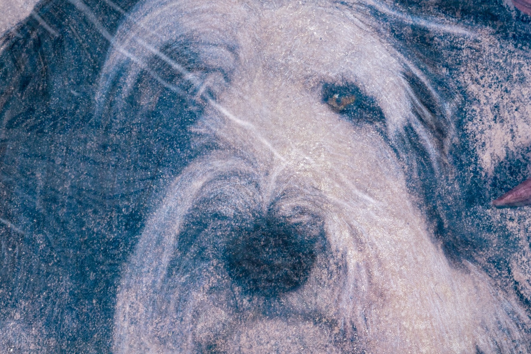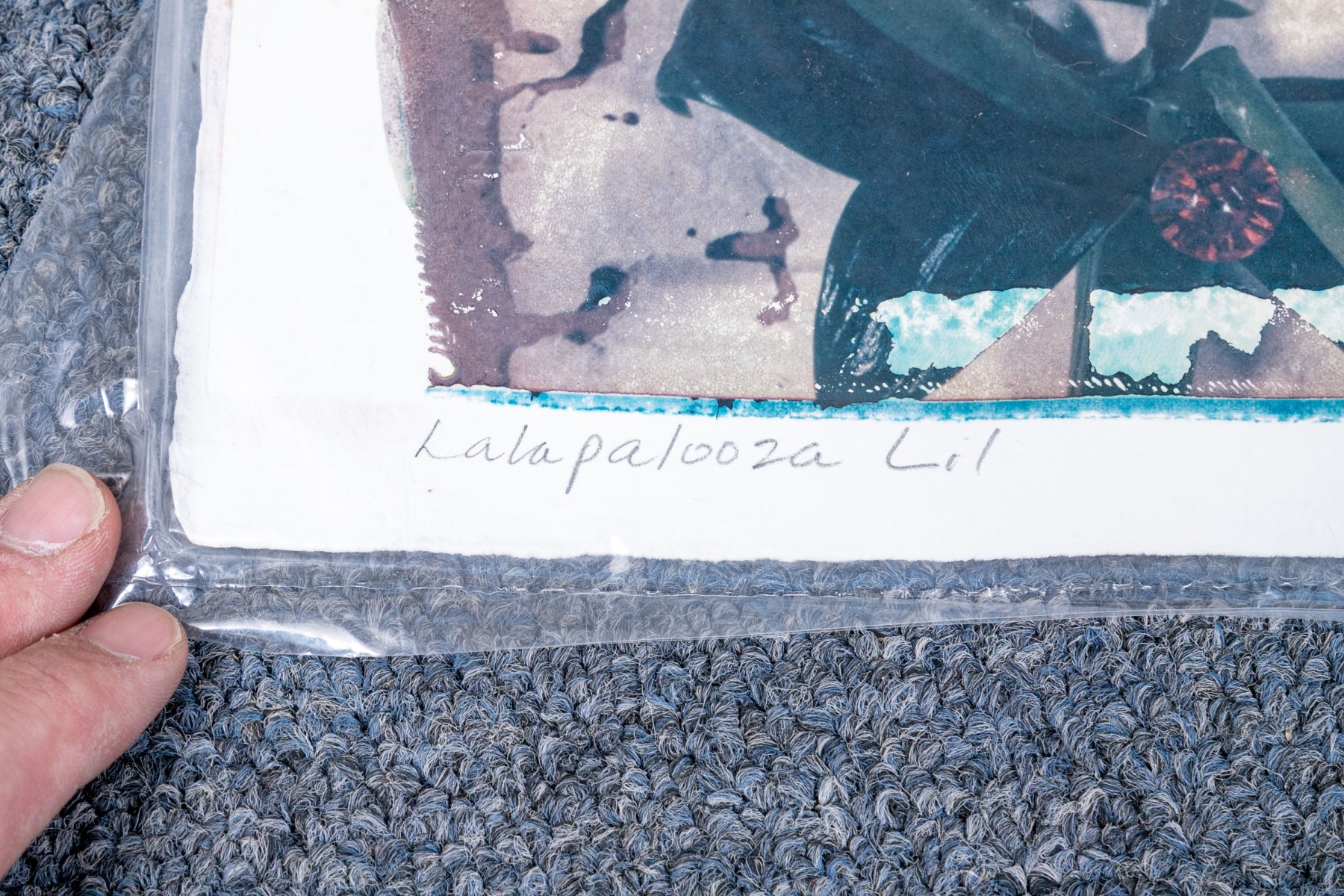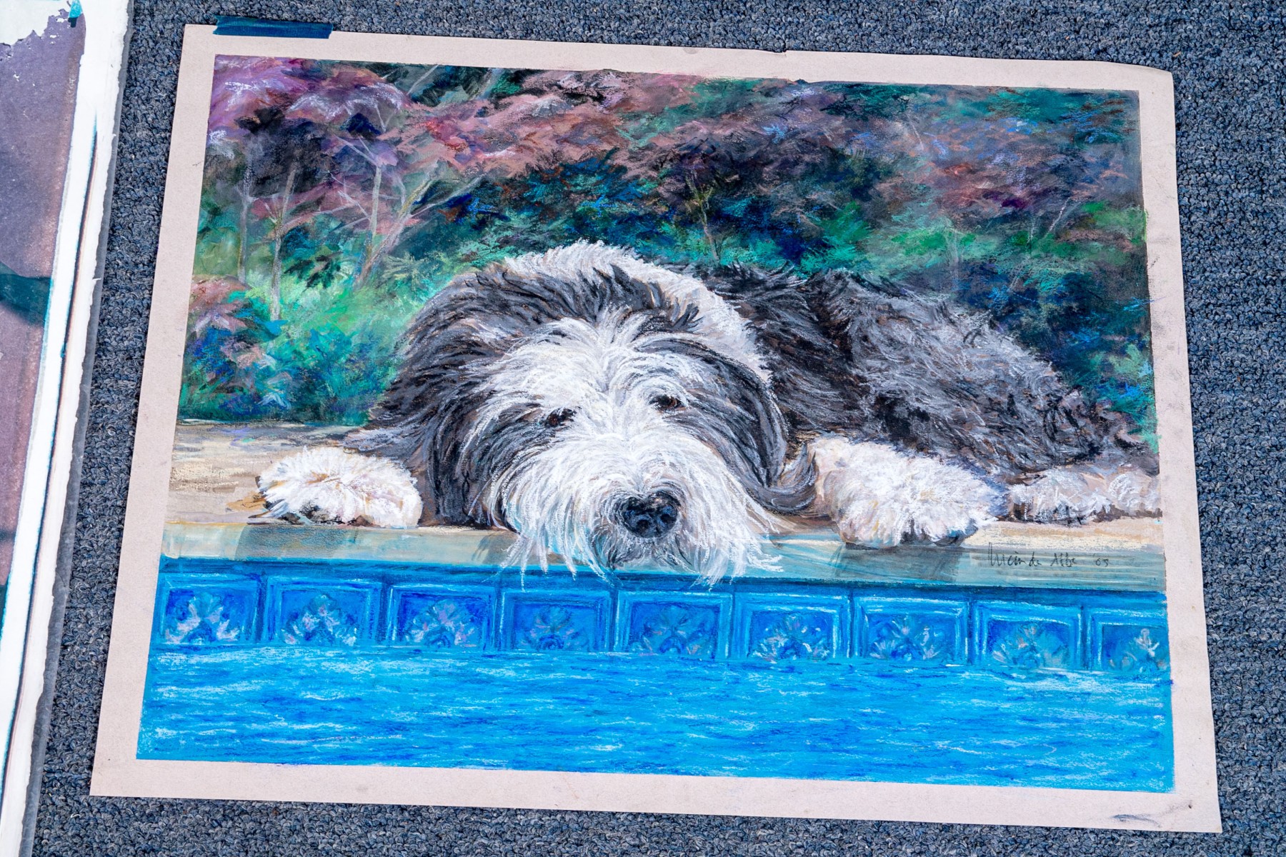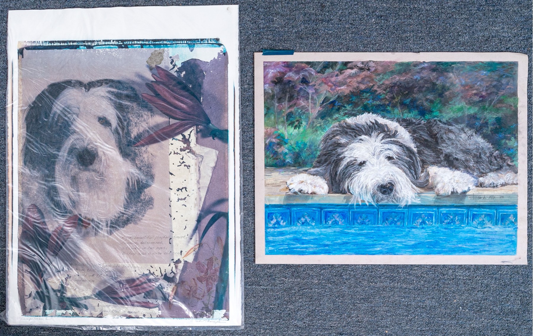 One absolutely adorable pastel sheepdog signed indistinctly lower right and dated '05 and another lithograph of a sheepdog titled "Lalapalooza Lil" lower left and signed indistinctly lower right.