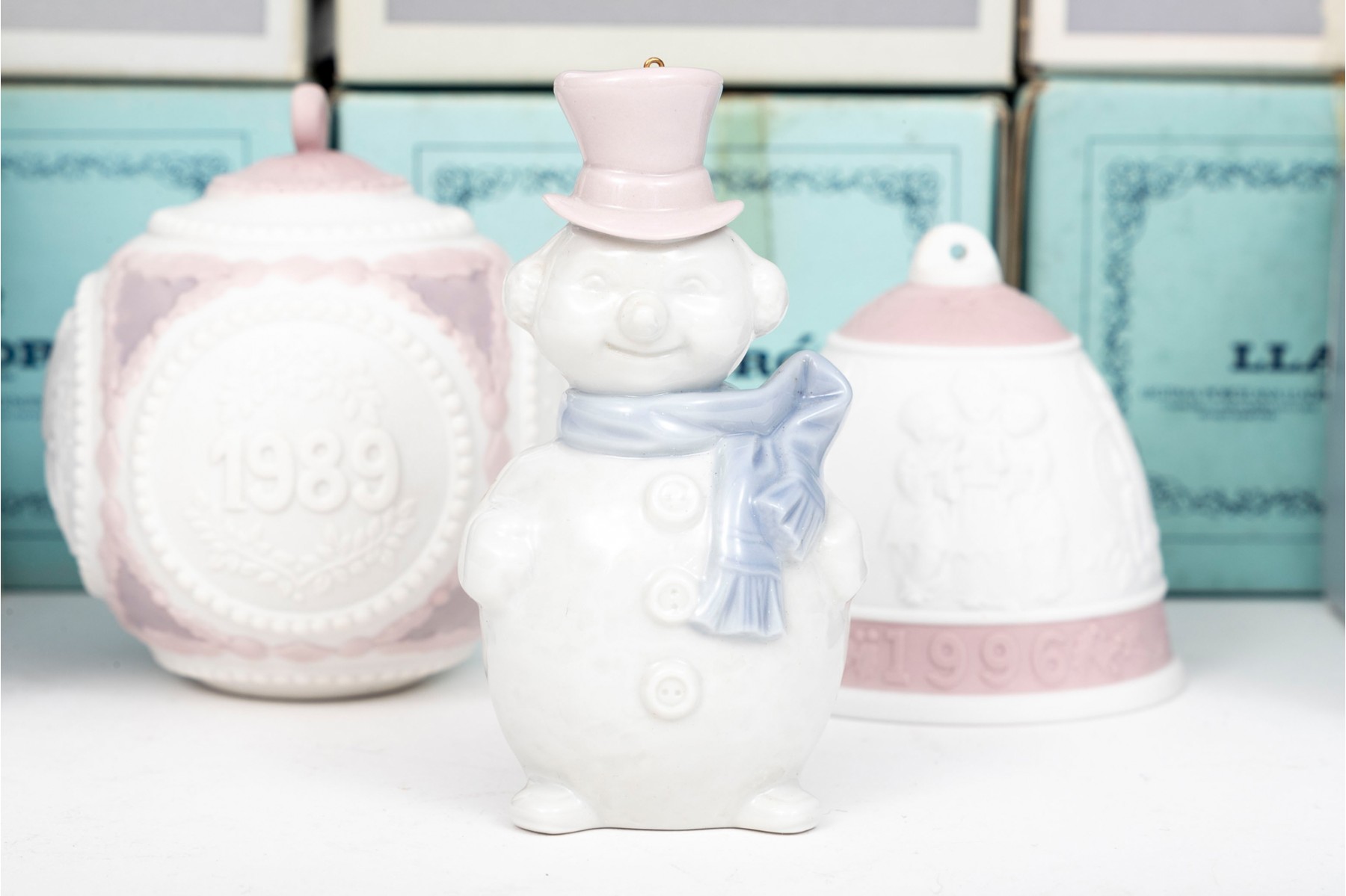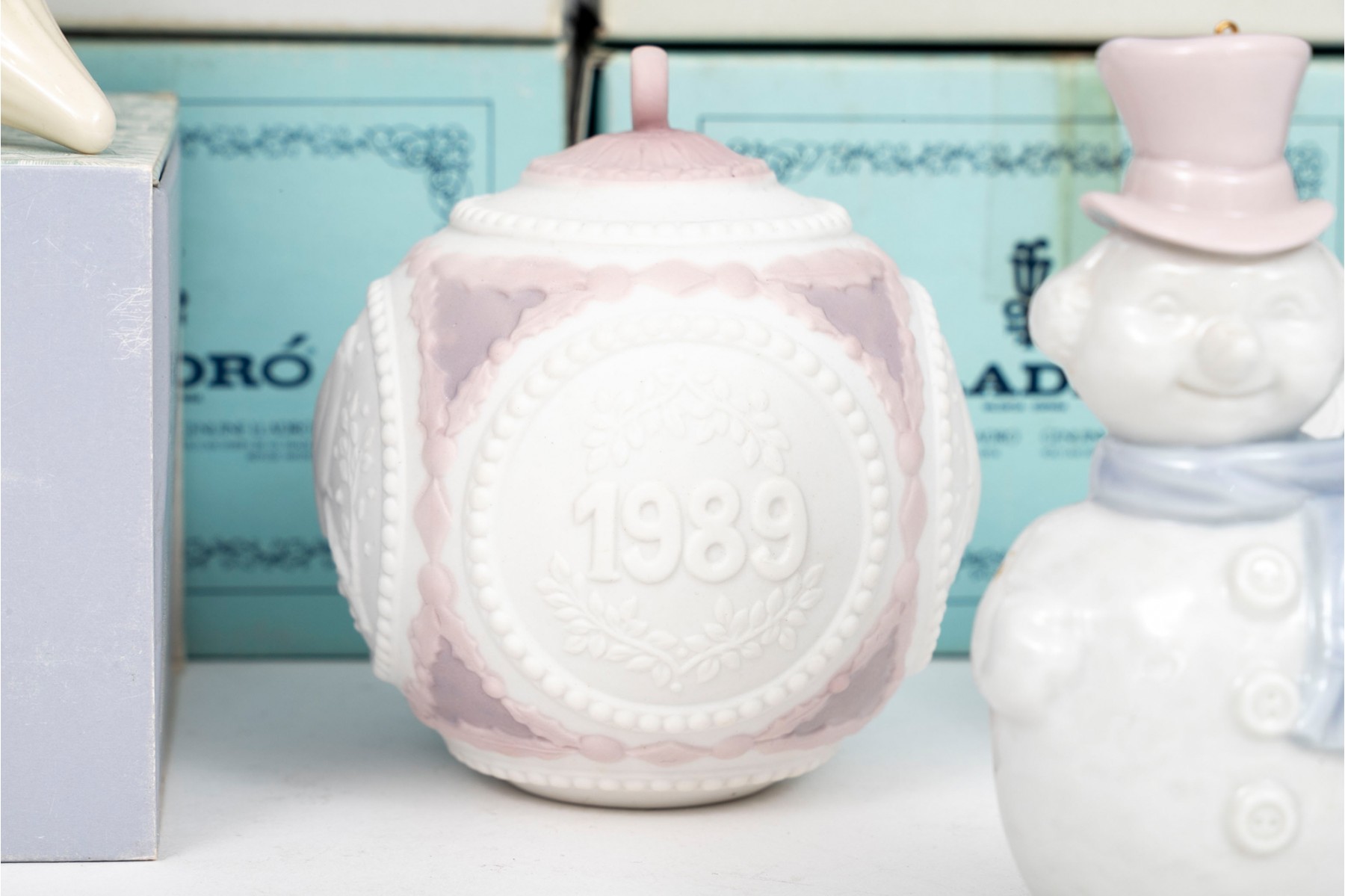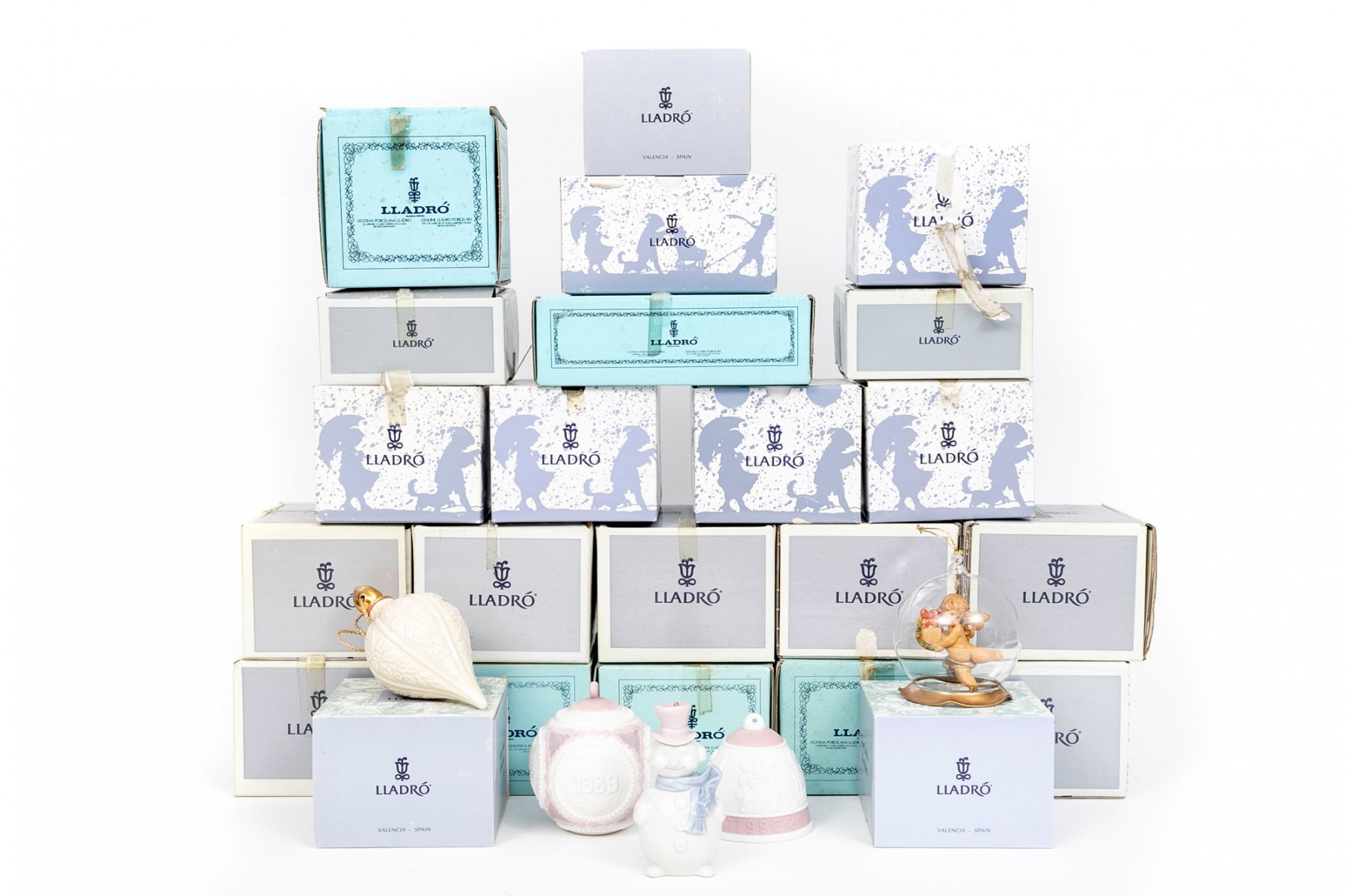 Collection of 23 porcelain ornaments, few glass, some with dates. See boxes for details of the ornaments.