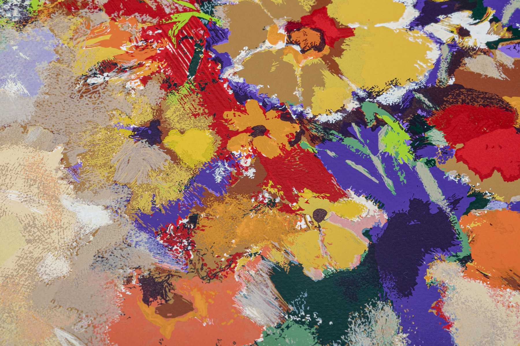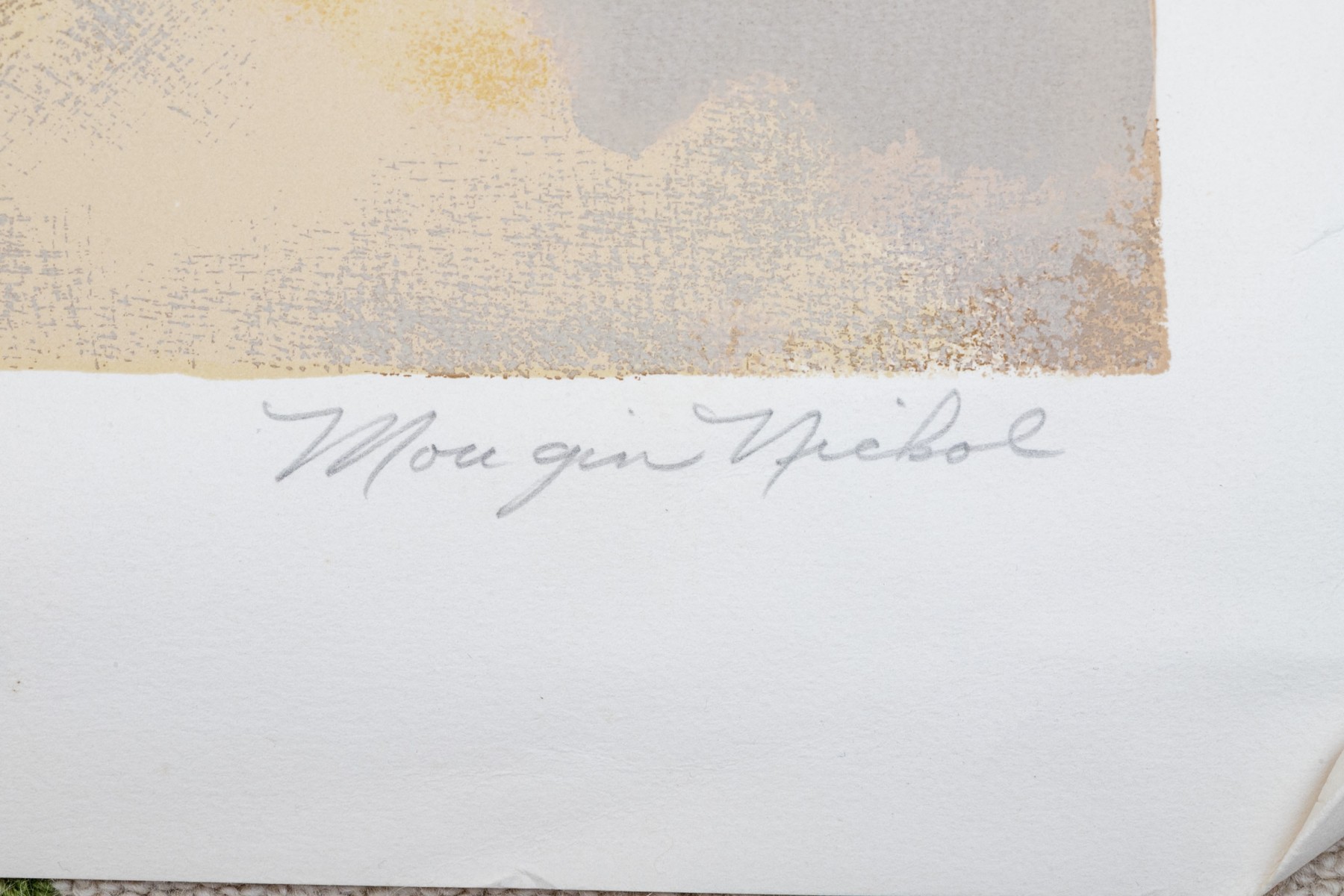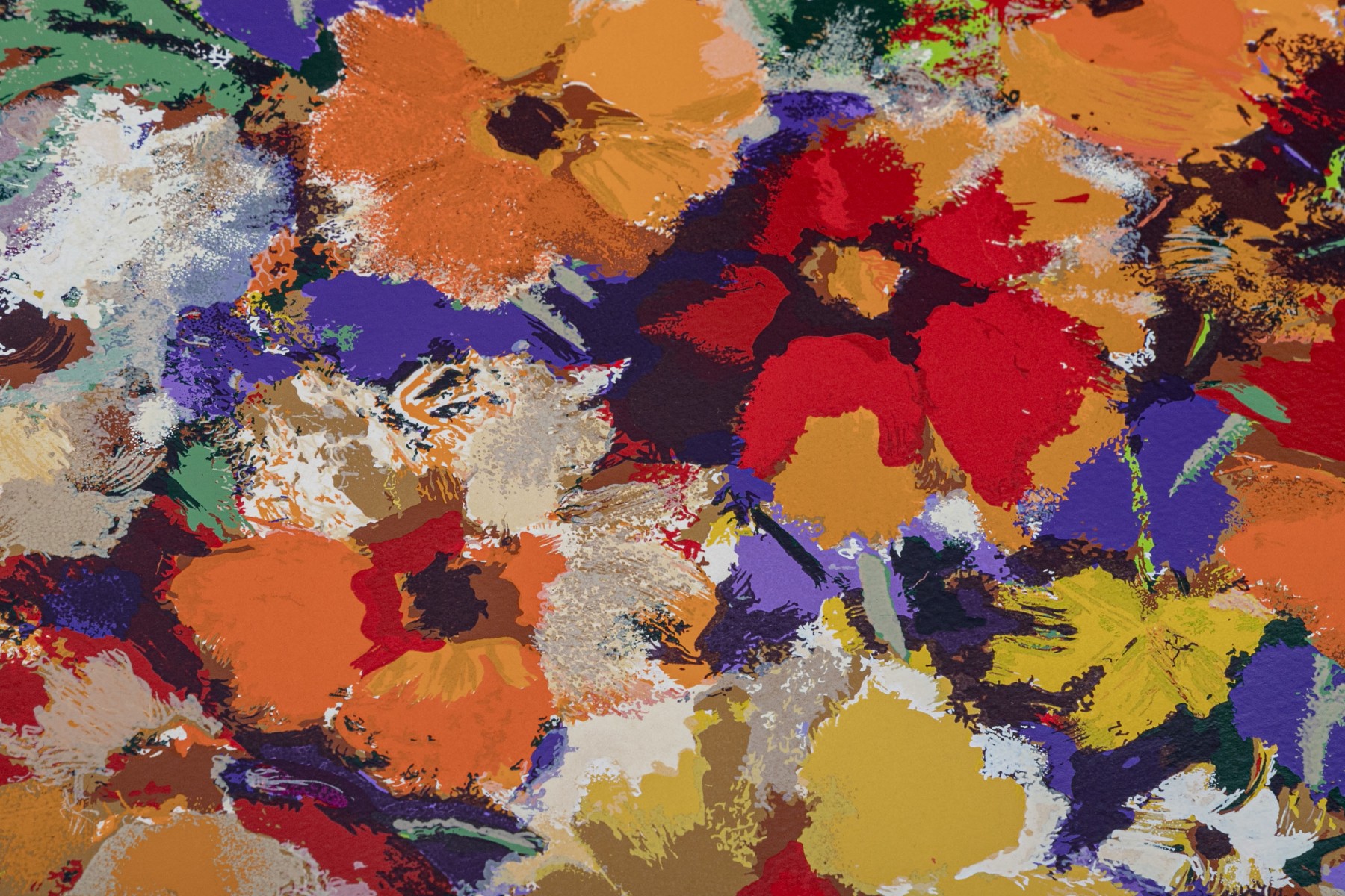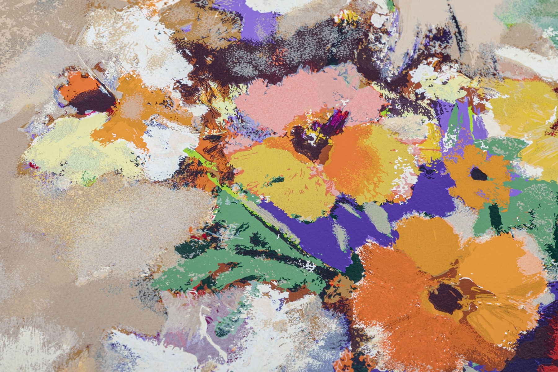 - Mou Gin Nickol limited edition lithograph in colors. Depicting a vibrant, polychromatic floral bouquet.