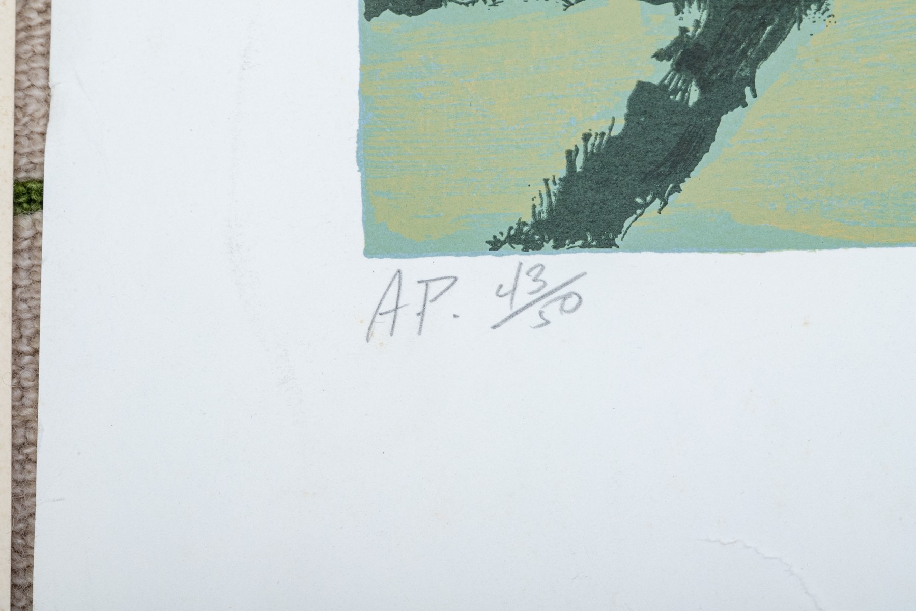 Pencil signed lower right out of plate, pencil numbered 'AP 43/50' out of plate to lower left.