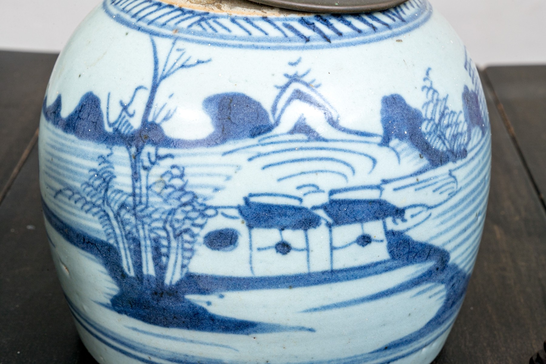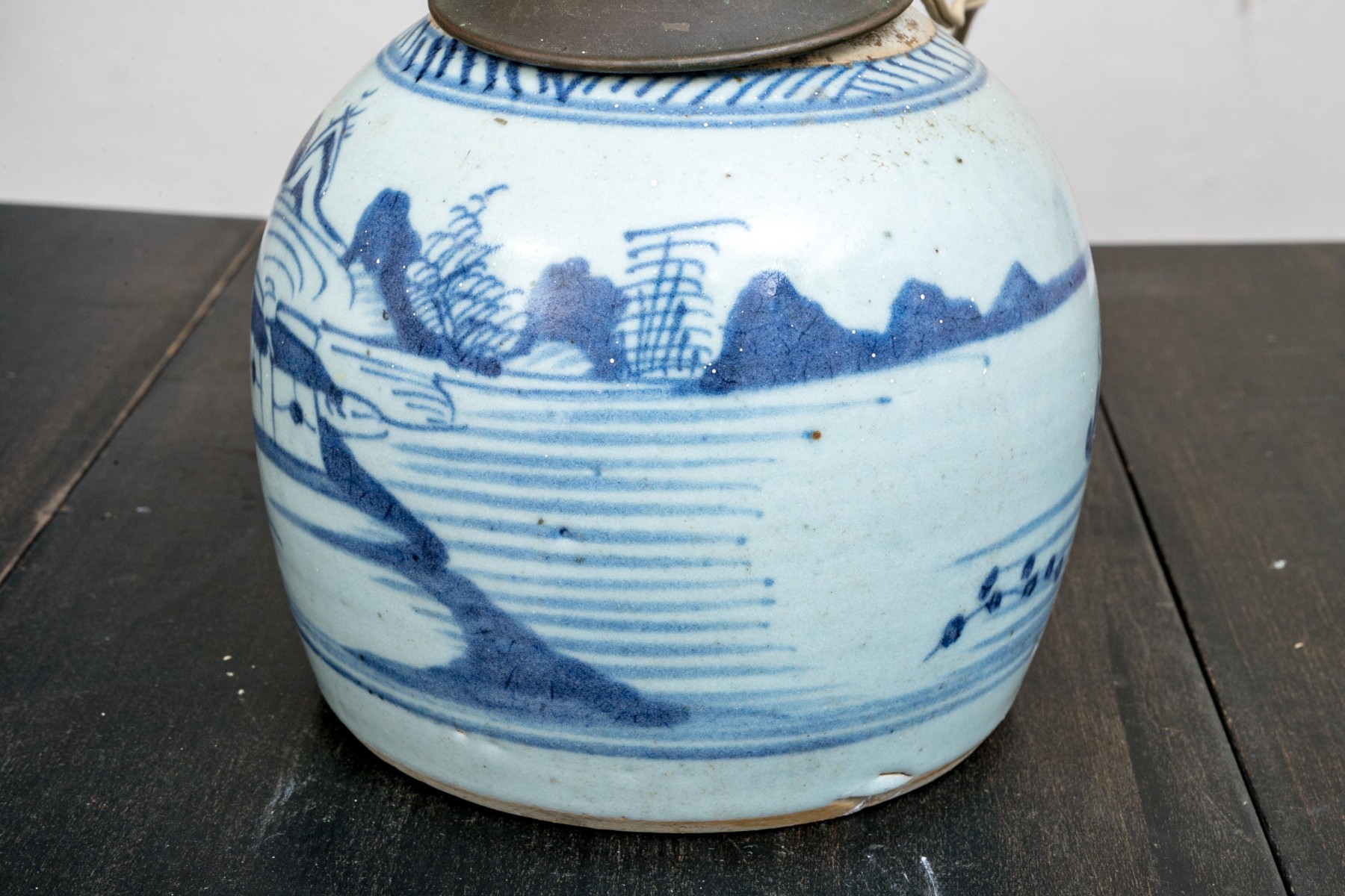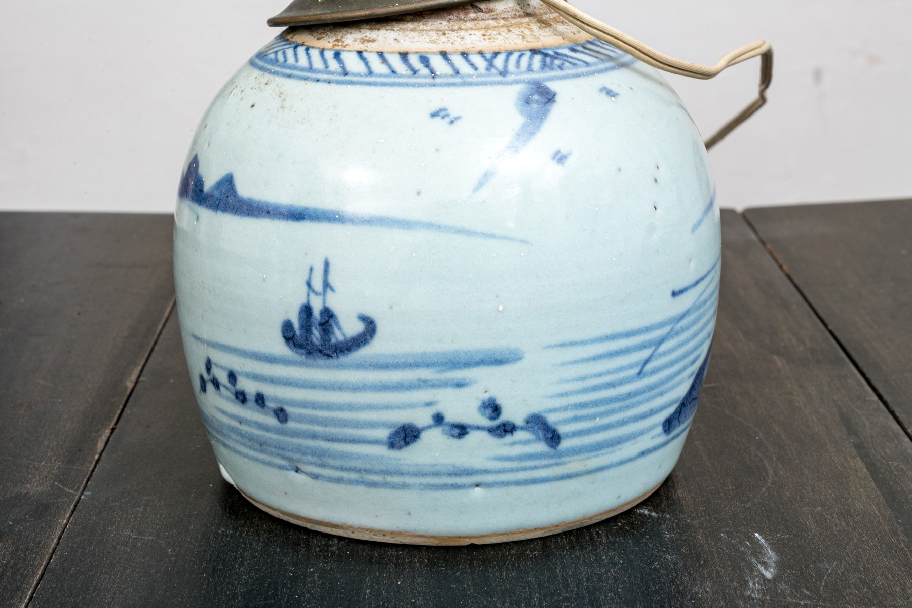 - An antique Chinese blue and white porcelain jar now mounted as a table lamp