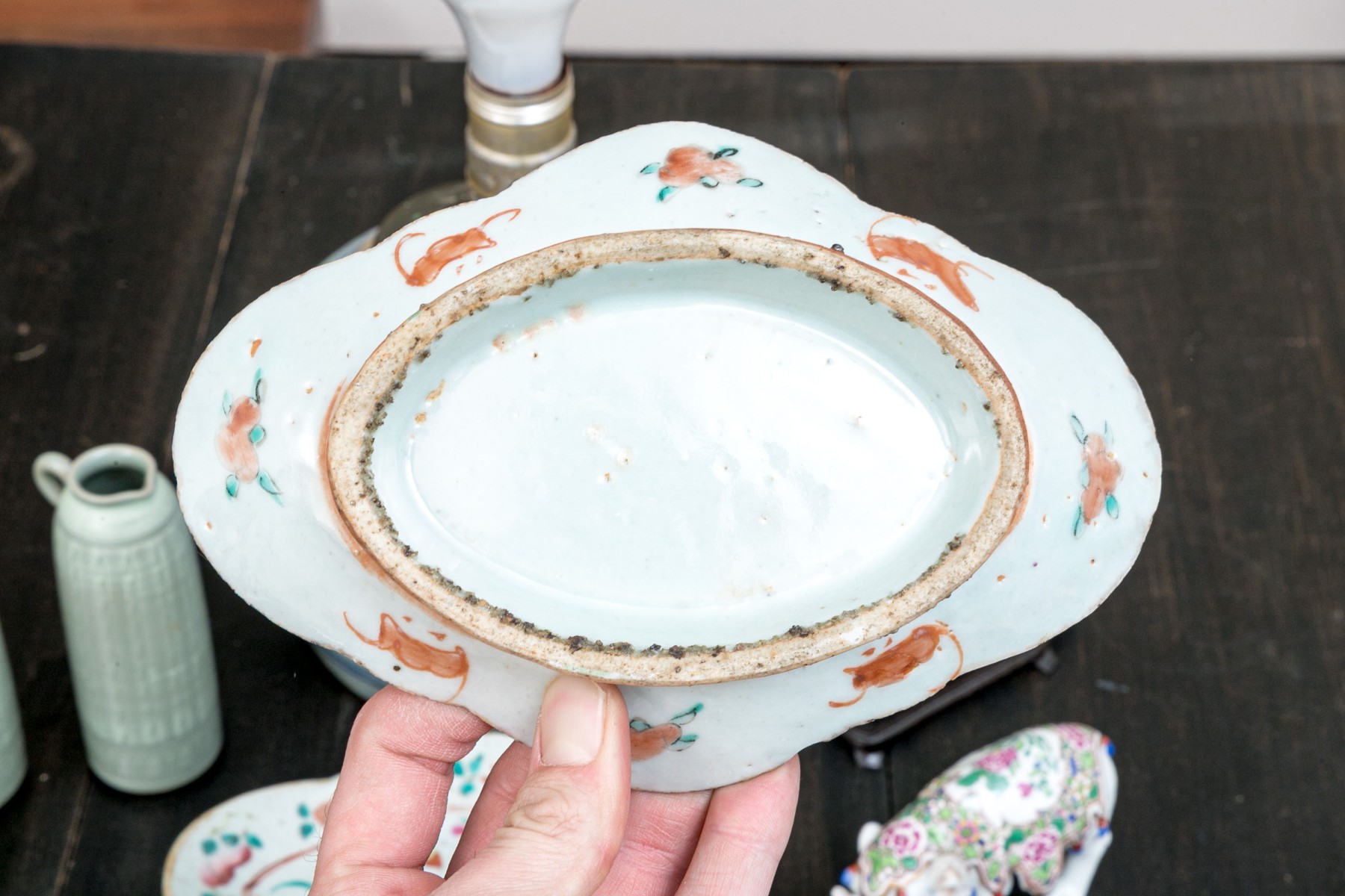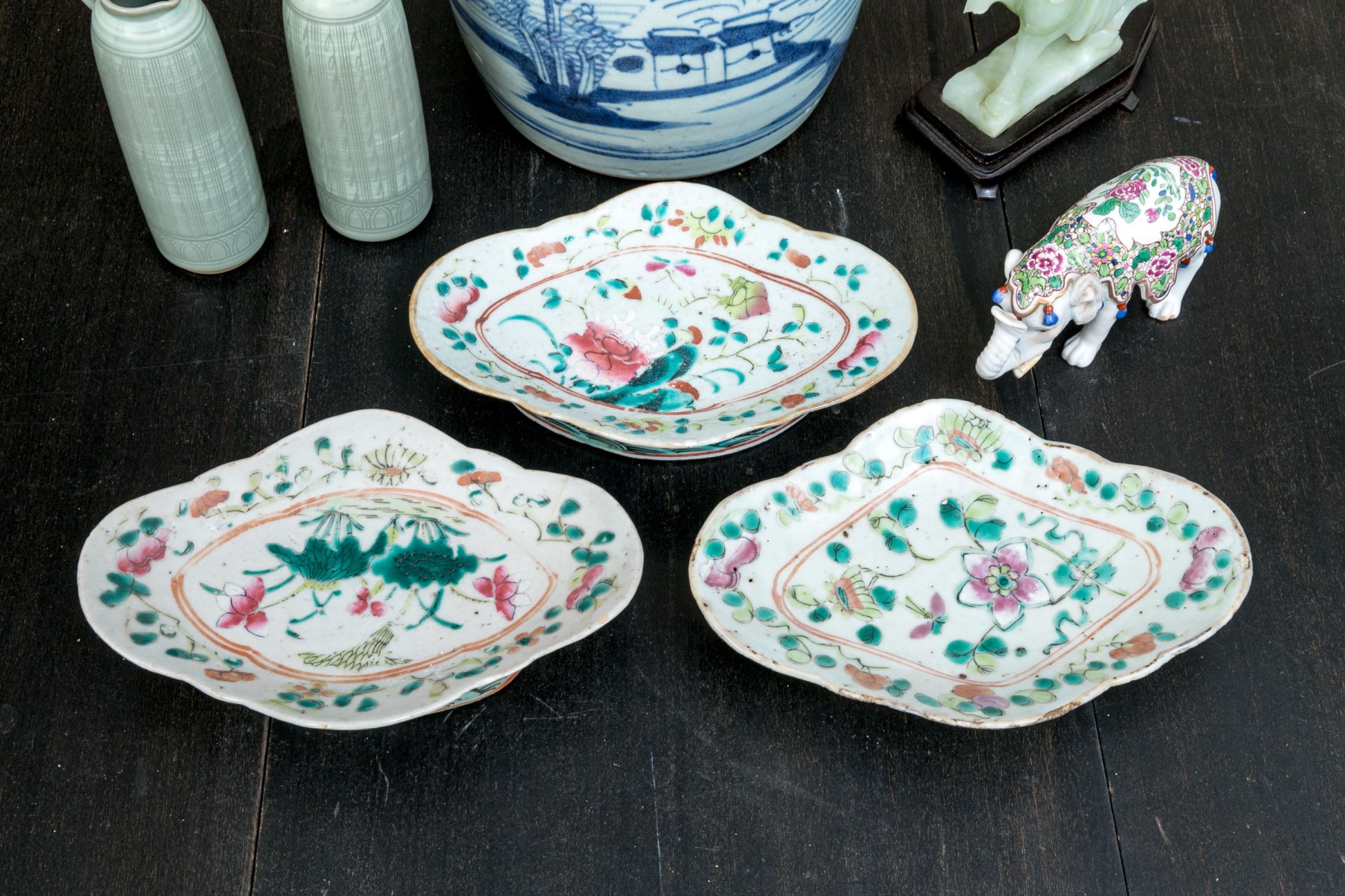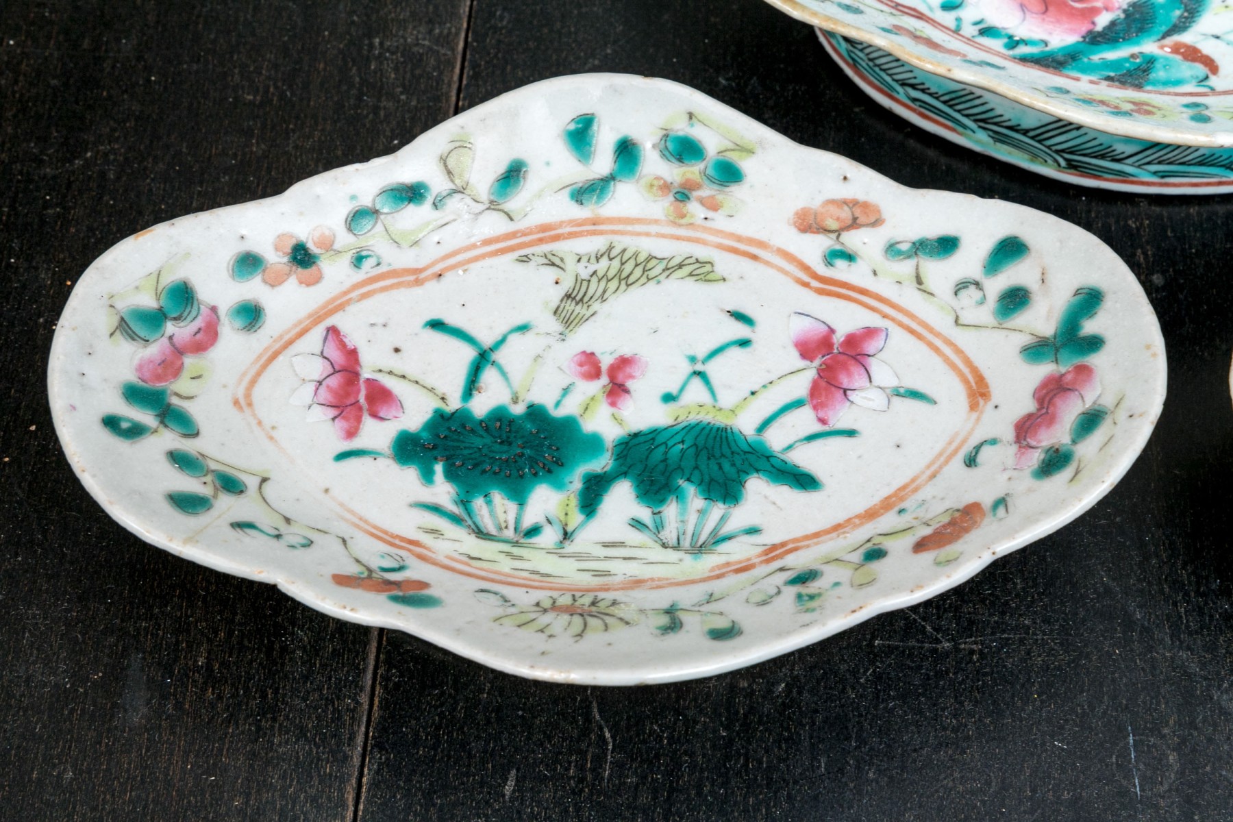 - 3 Chinese Famille Rose porcelain footed quatrefoil form dishes,