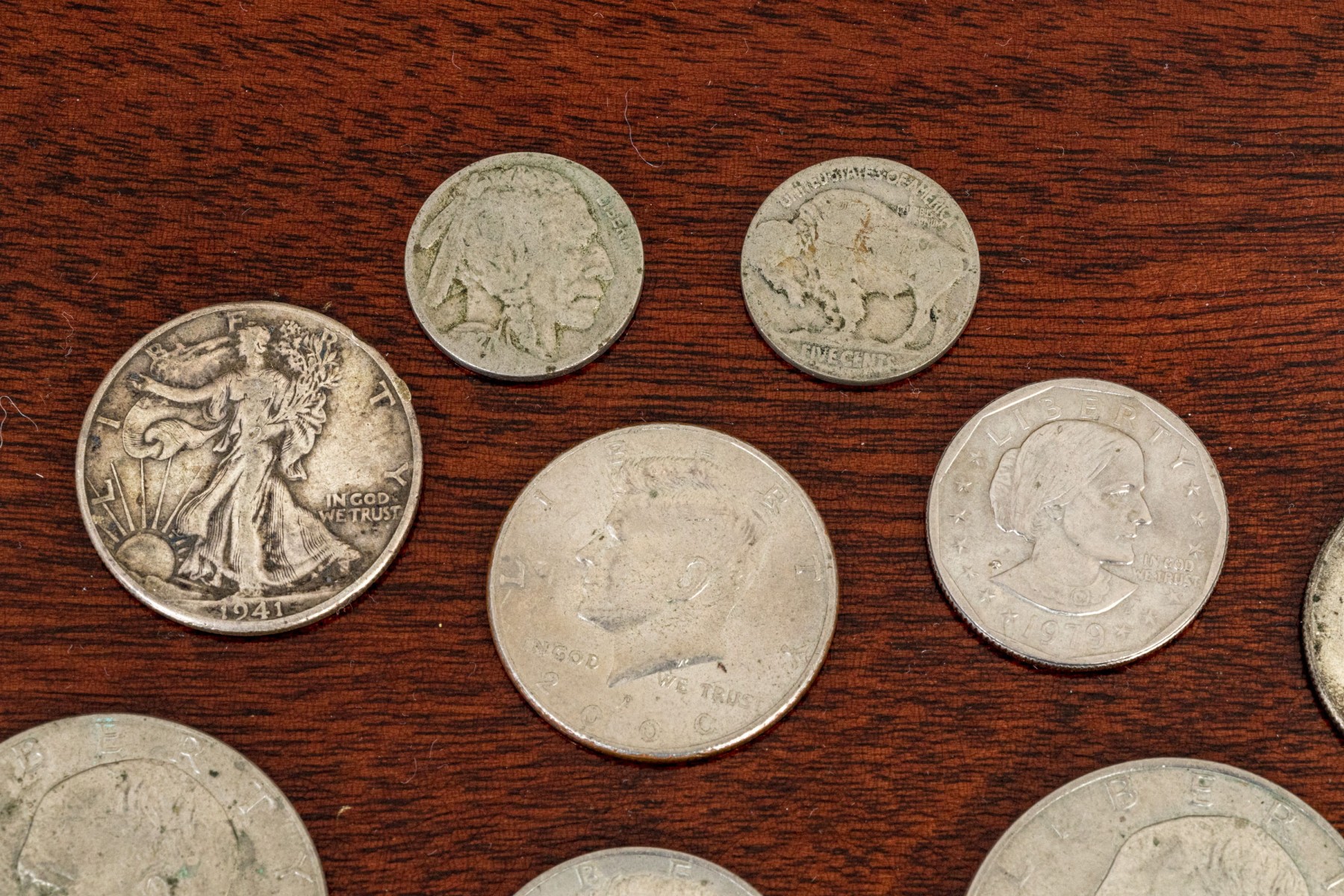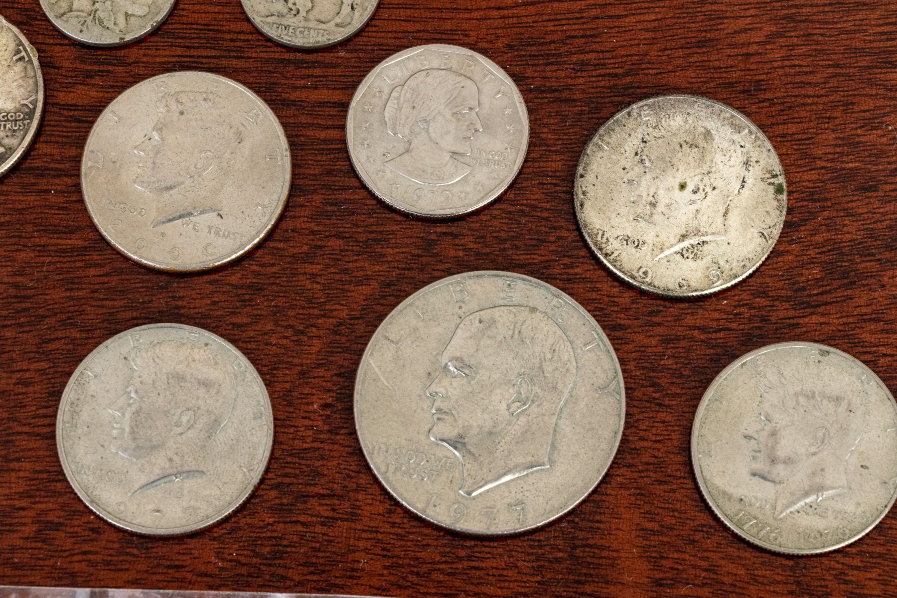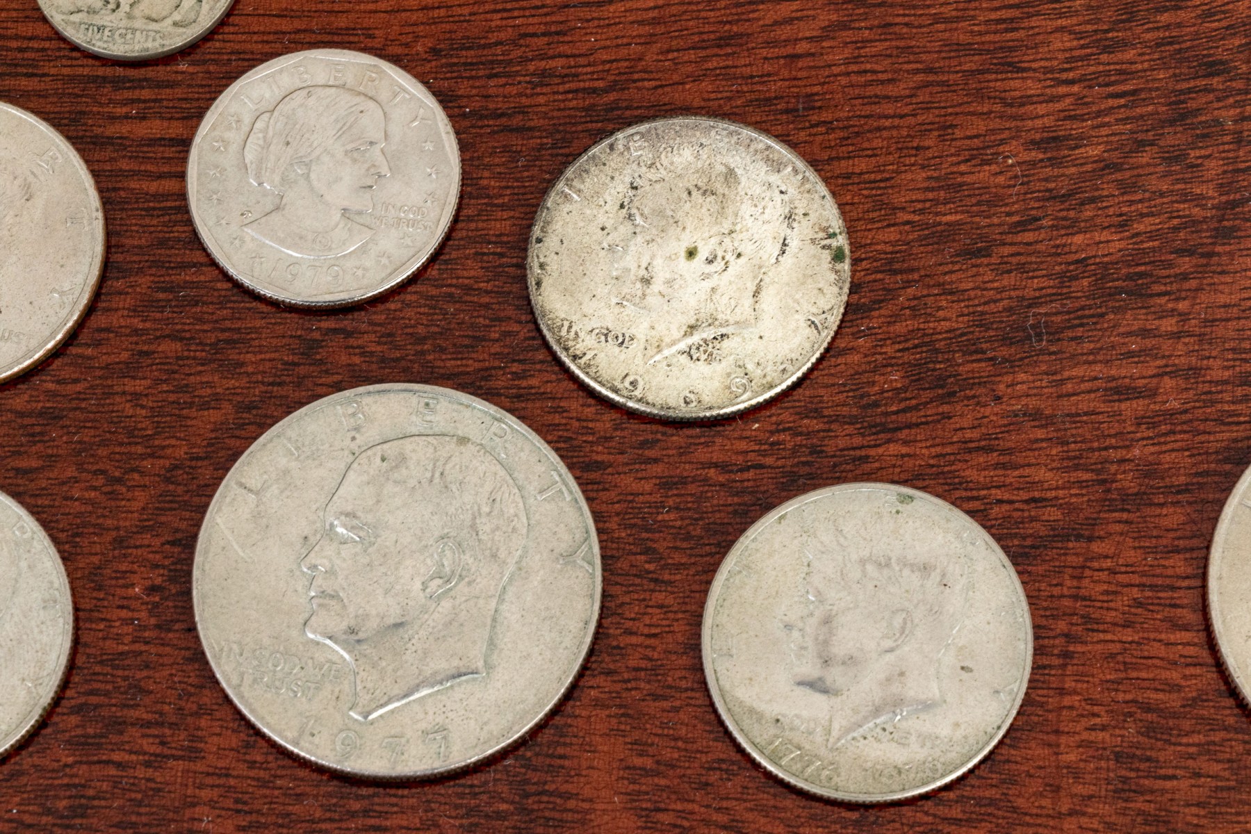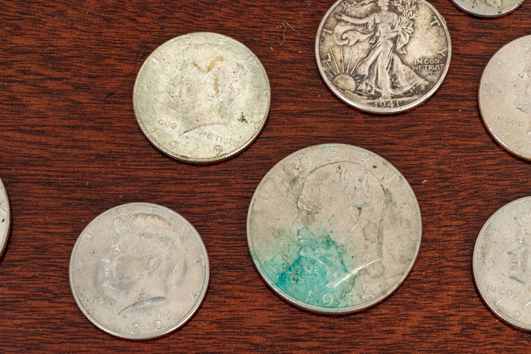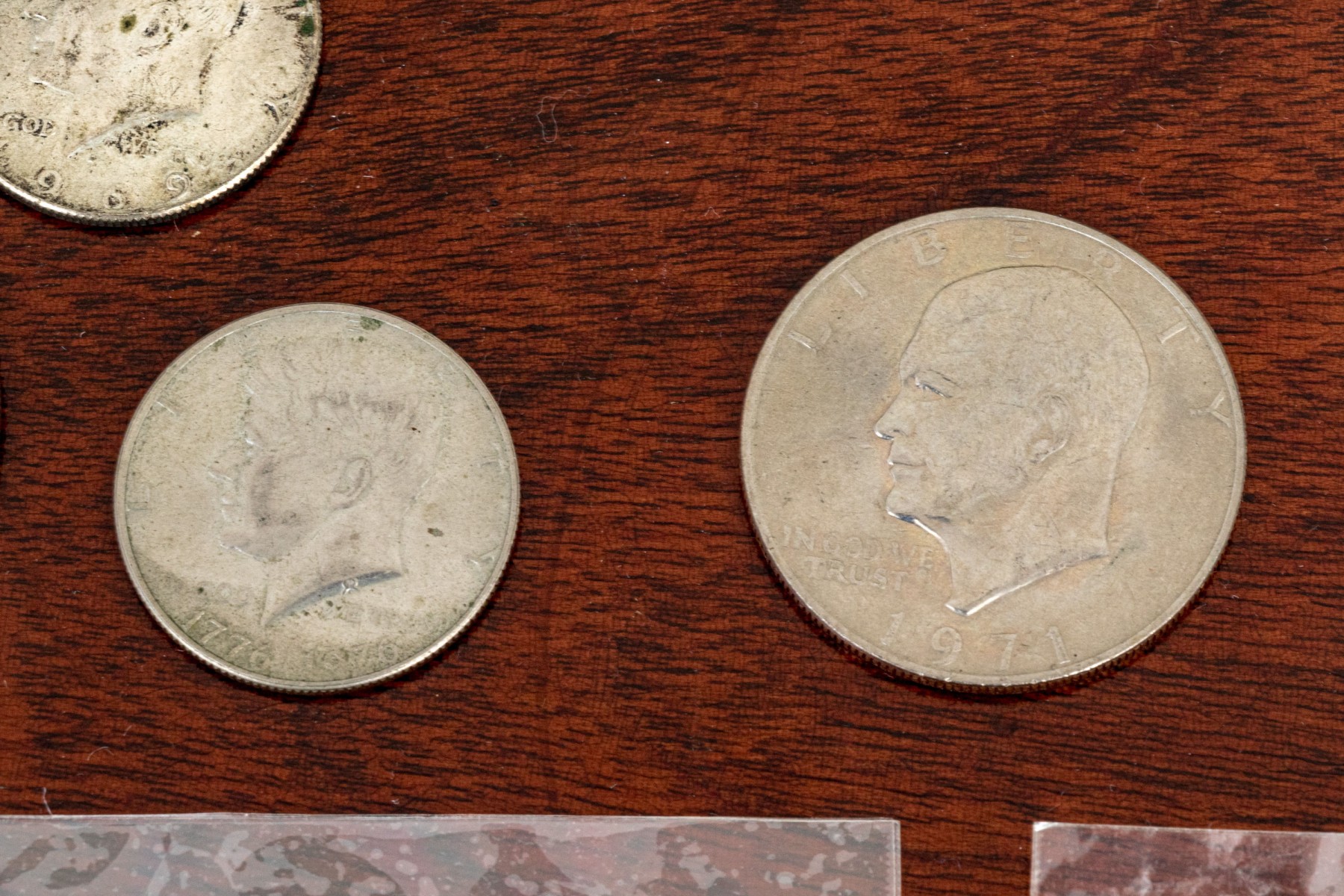 Five uncirculated 40% silver dollars, three 90% half dollars, plus $7 face value