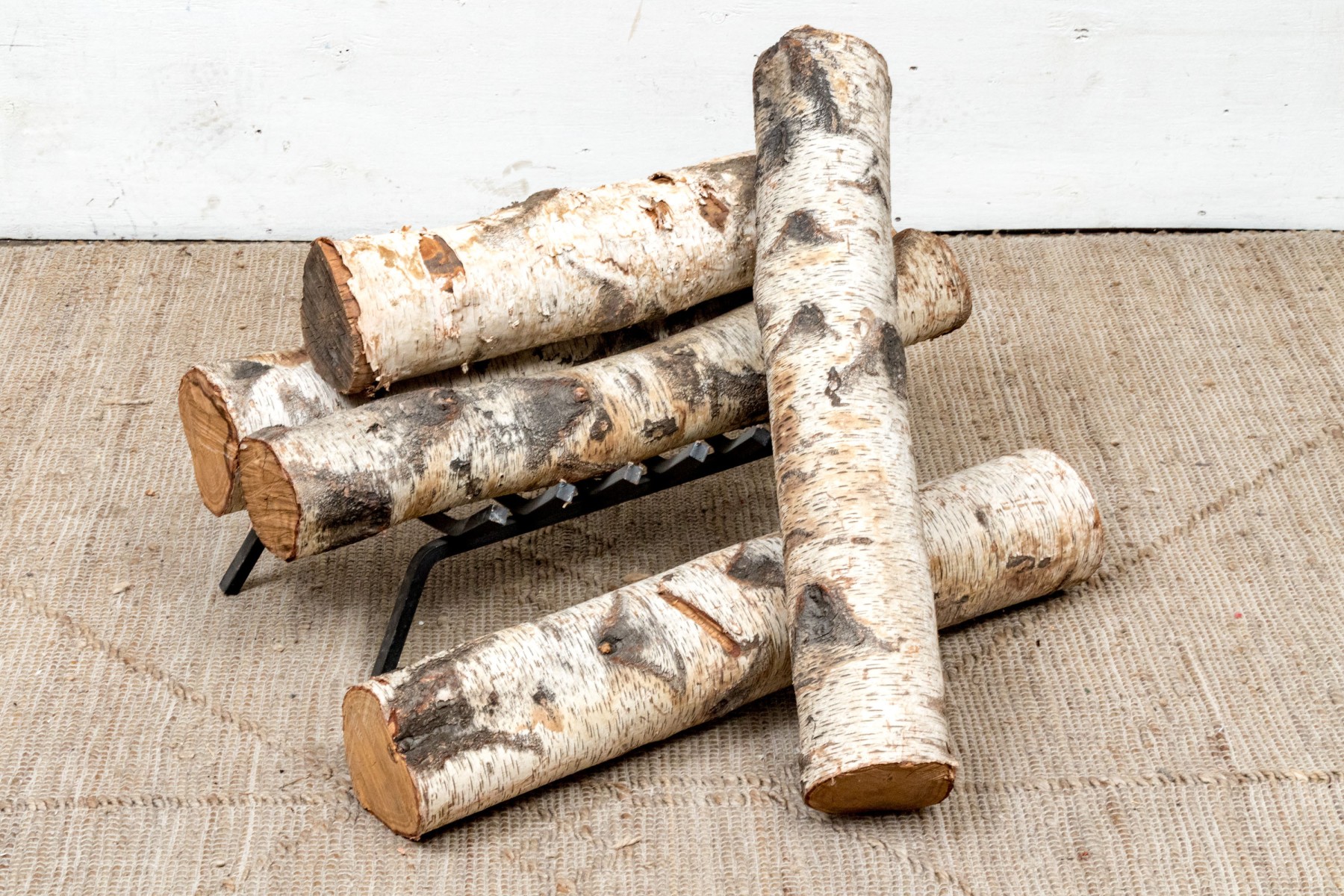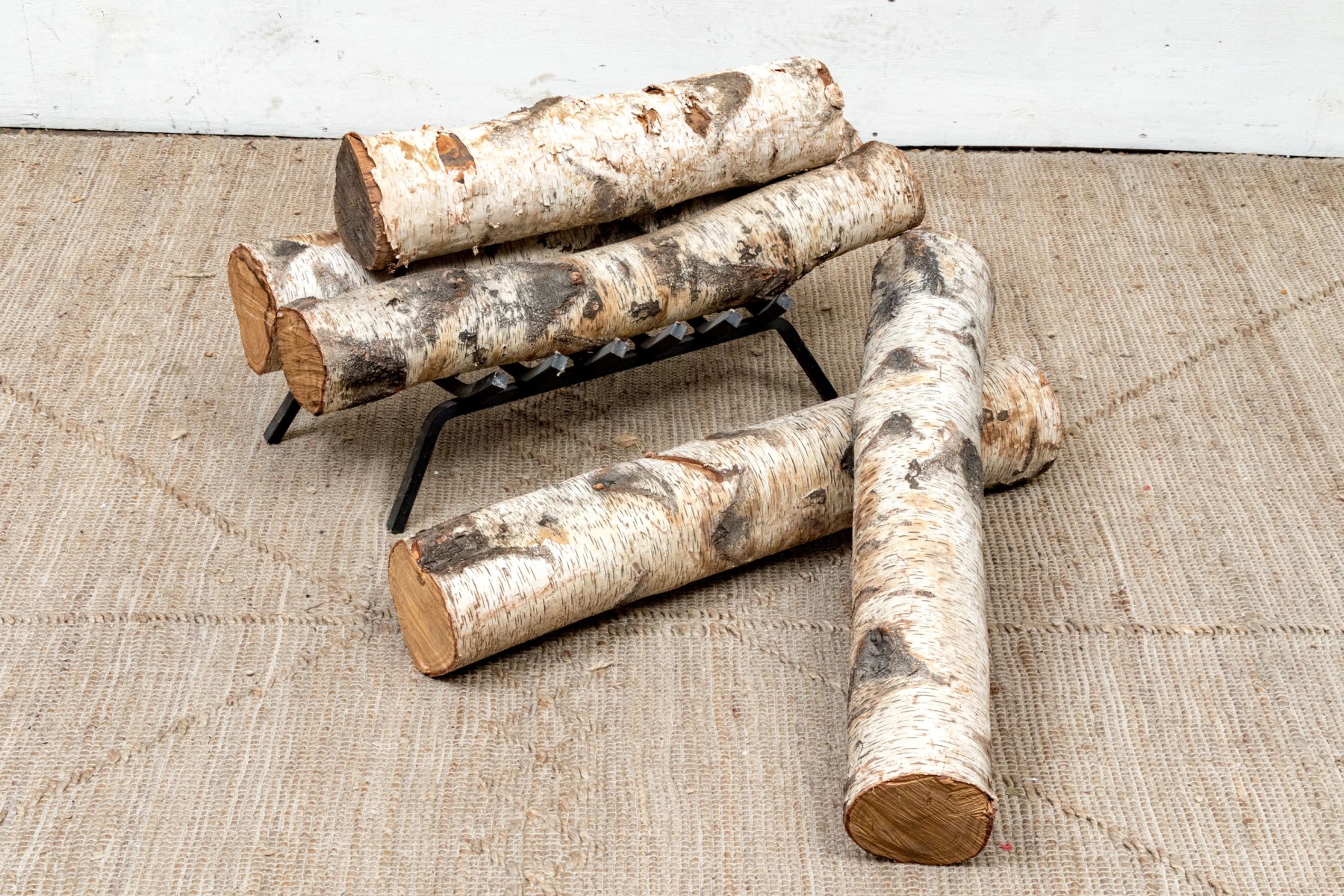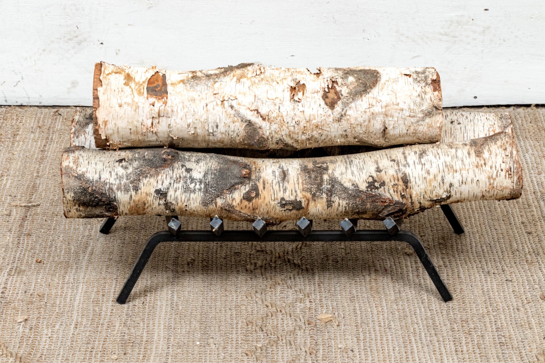 Collection Of An Iron Fire Log Stand With Five Birch Branch Segments