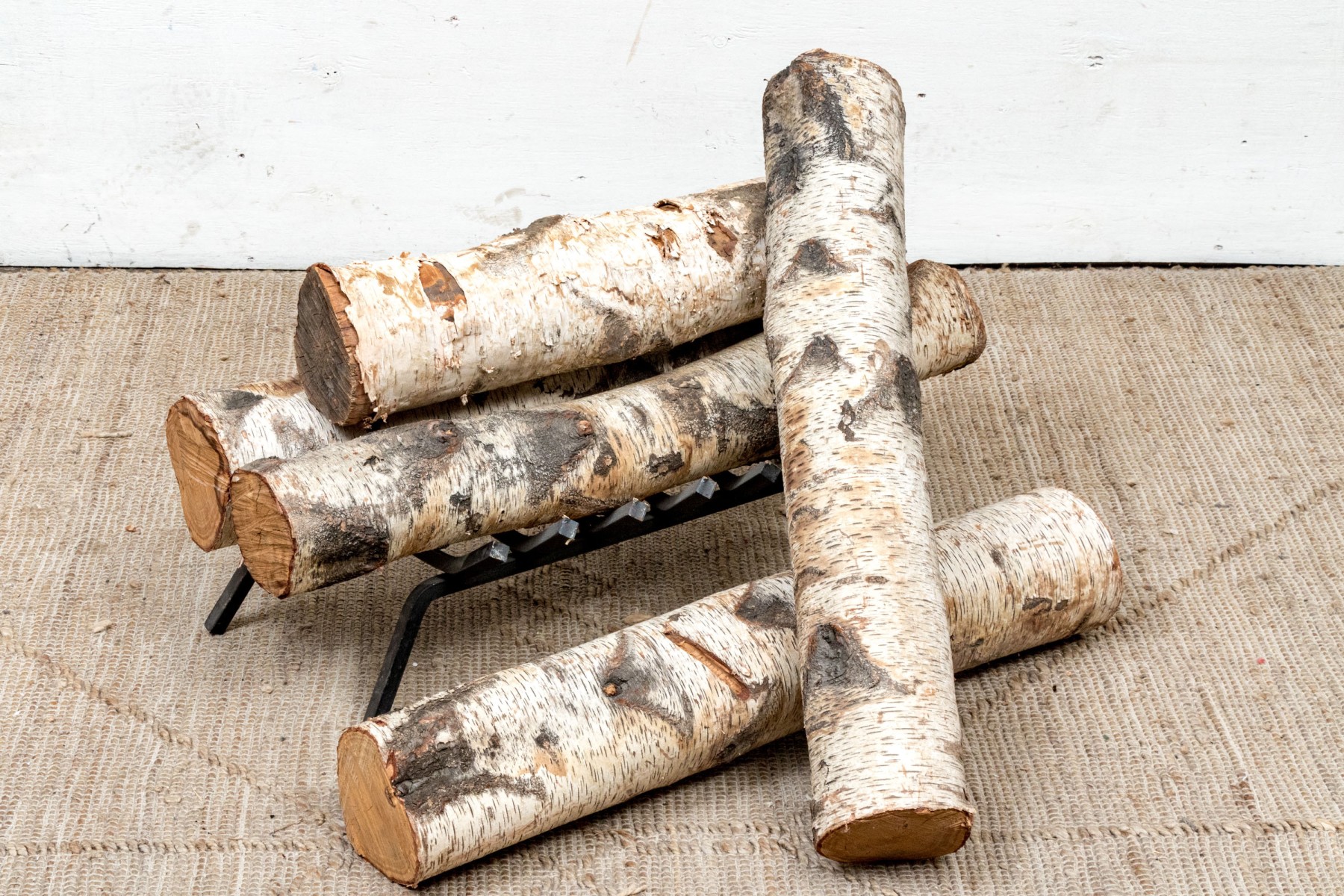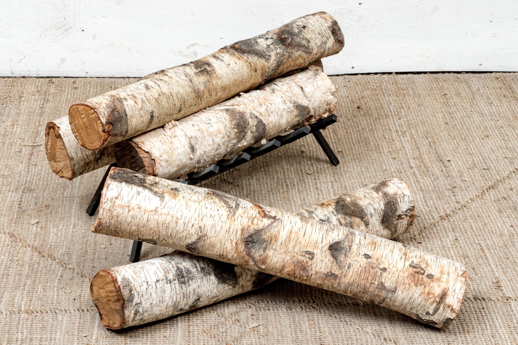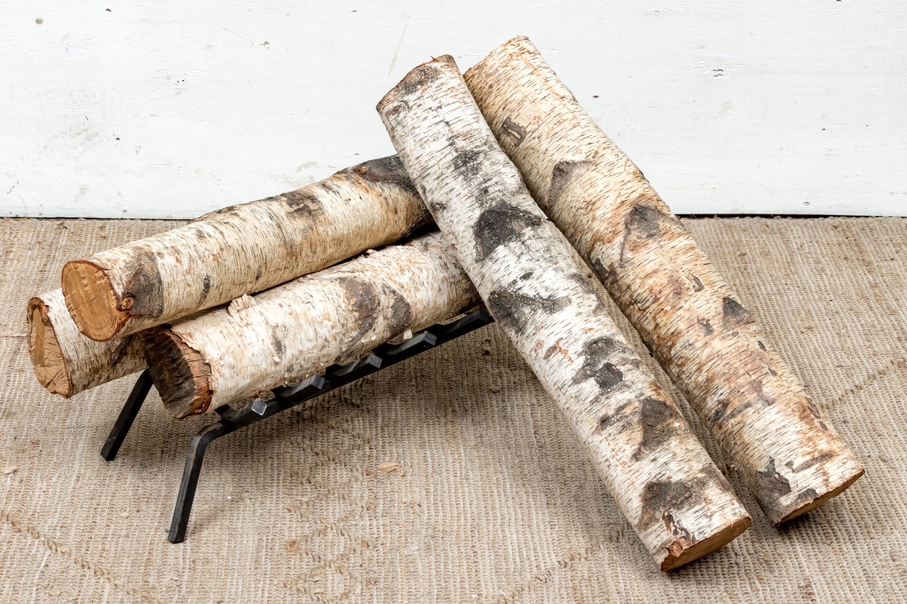 Collection Of An Iron Fire Log Stand With Five Birch Branch Segments