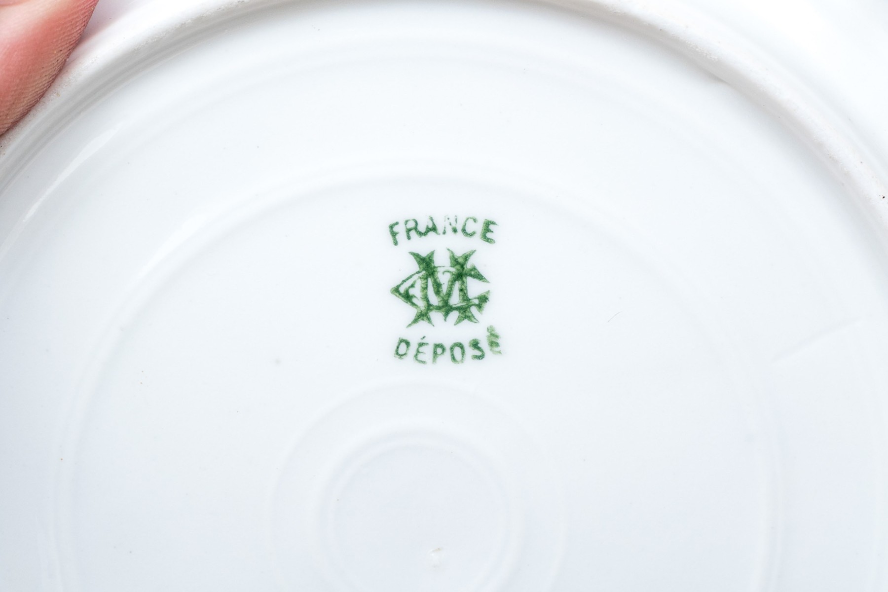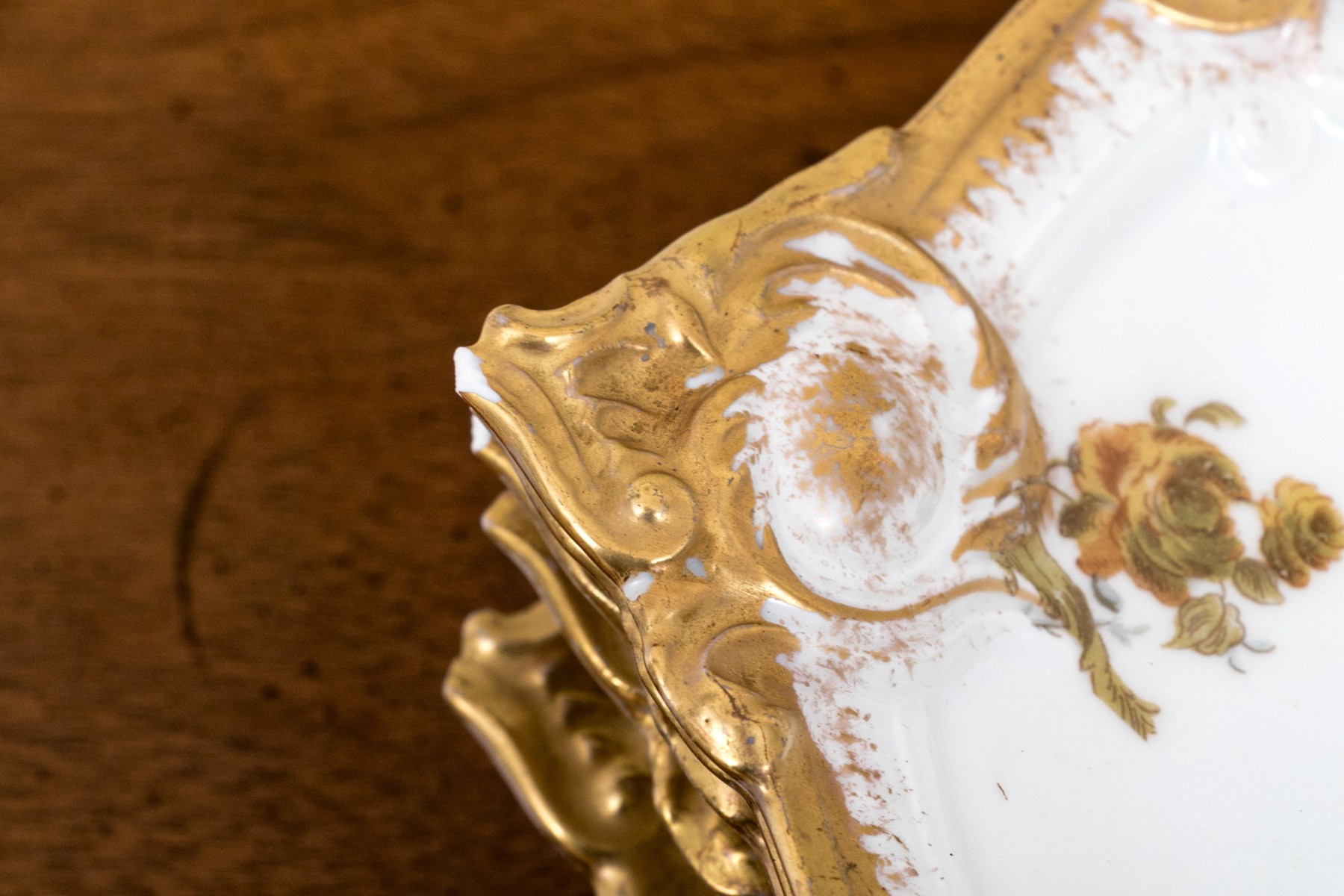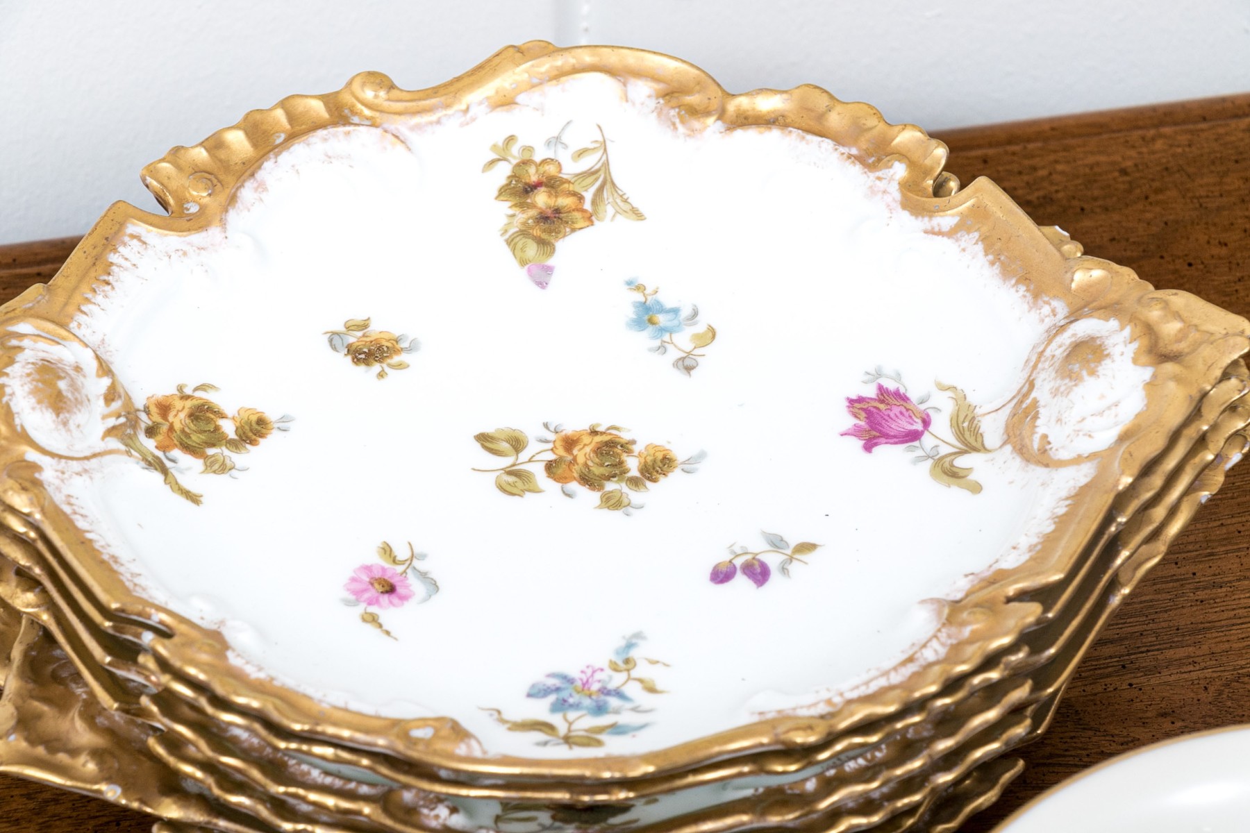 Condition: fruit bowls good and clean, the French plates with some chips to a few handle points, some wear to the rim gilt but minor, otherwise good, clean. Please review the photos as they are part of the condition report.