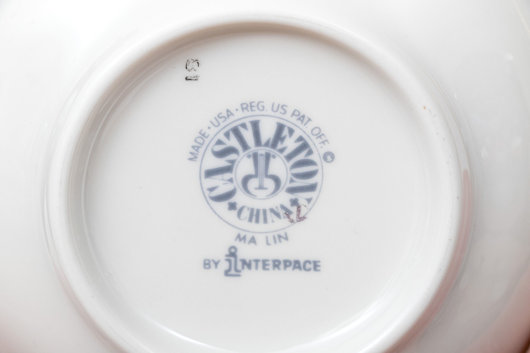Along with a set of 12 Castleton American china fruit bowls in white with colored flowers on green stems.
