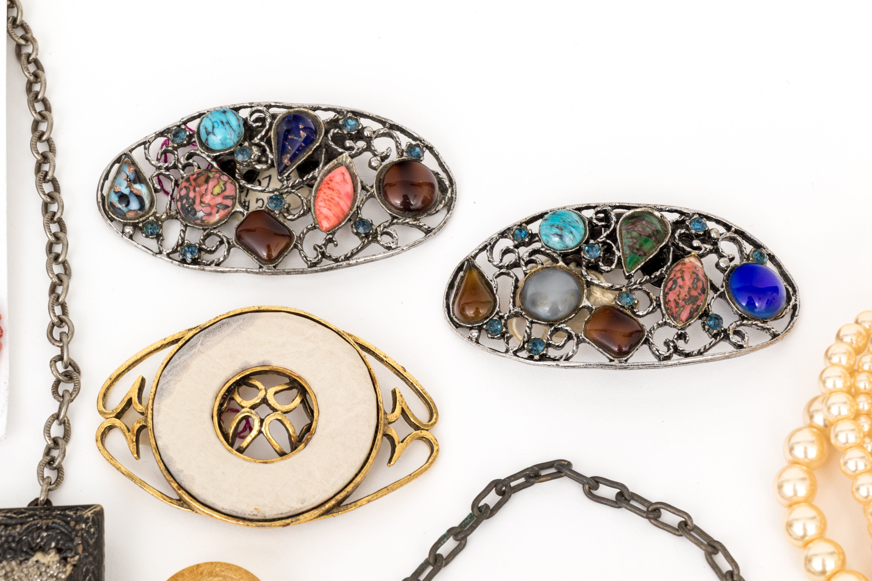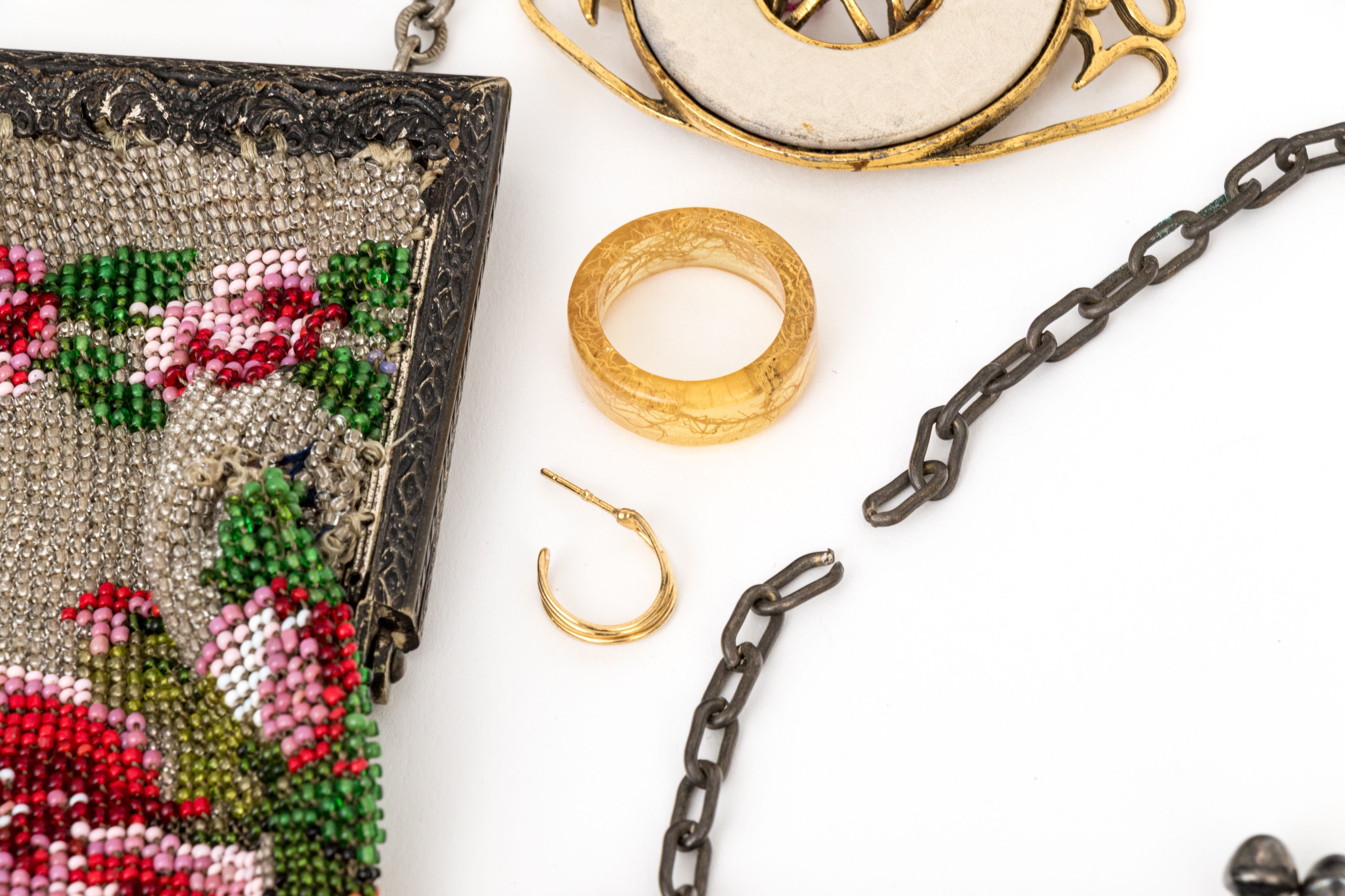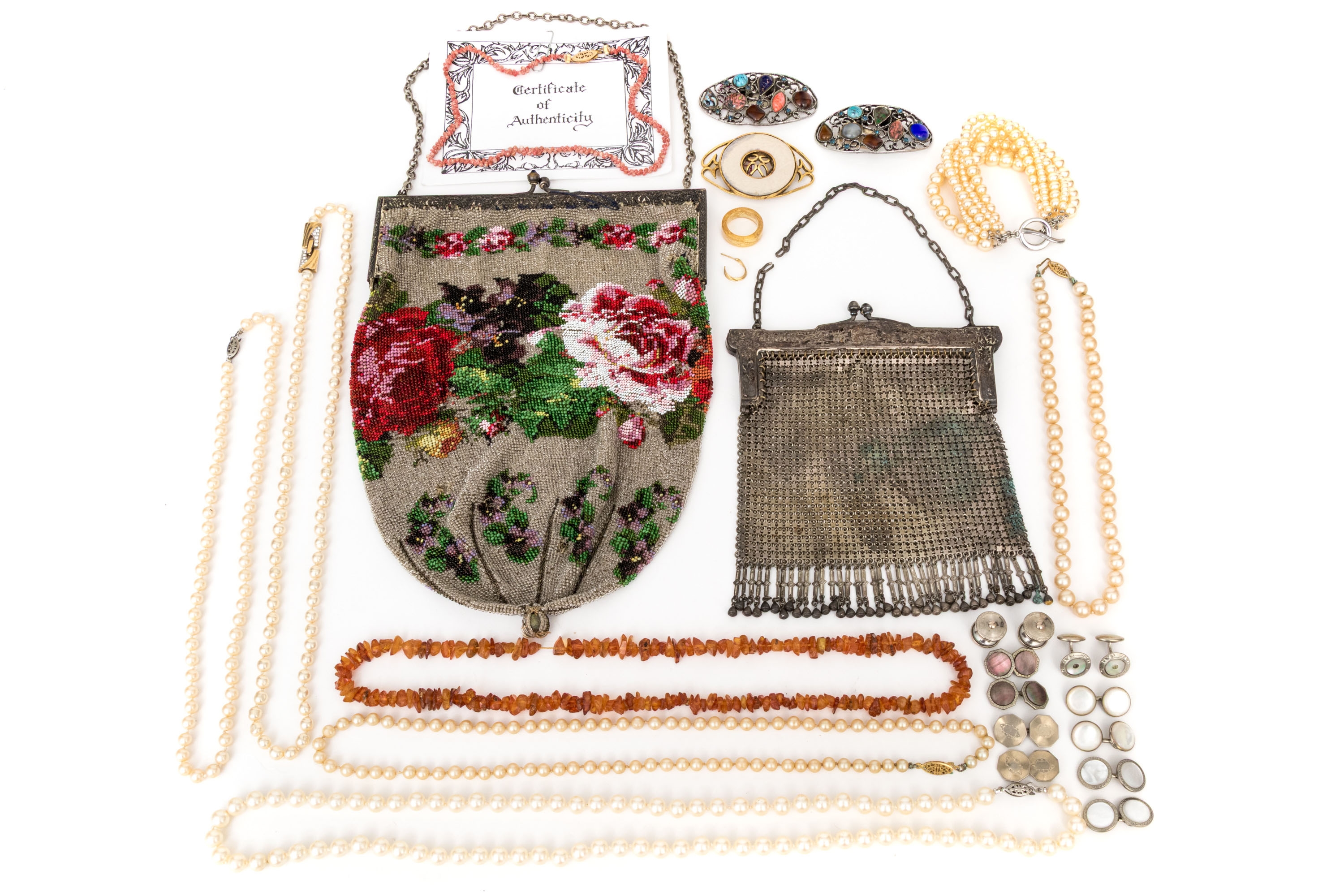 Collection of assorted fashion and costume jewelry pieces and vintage handbags
