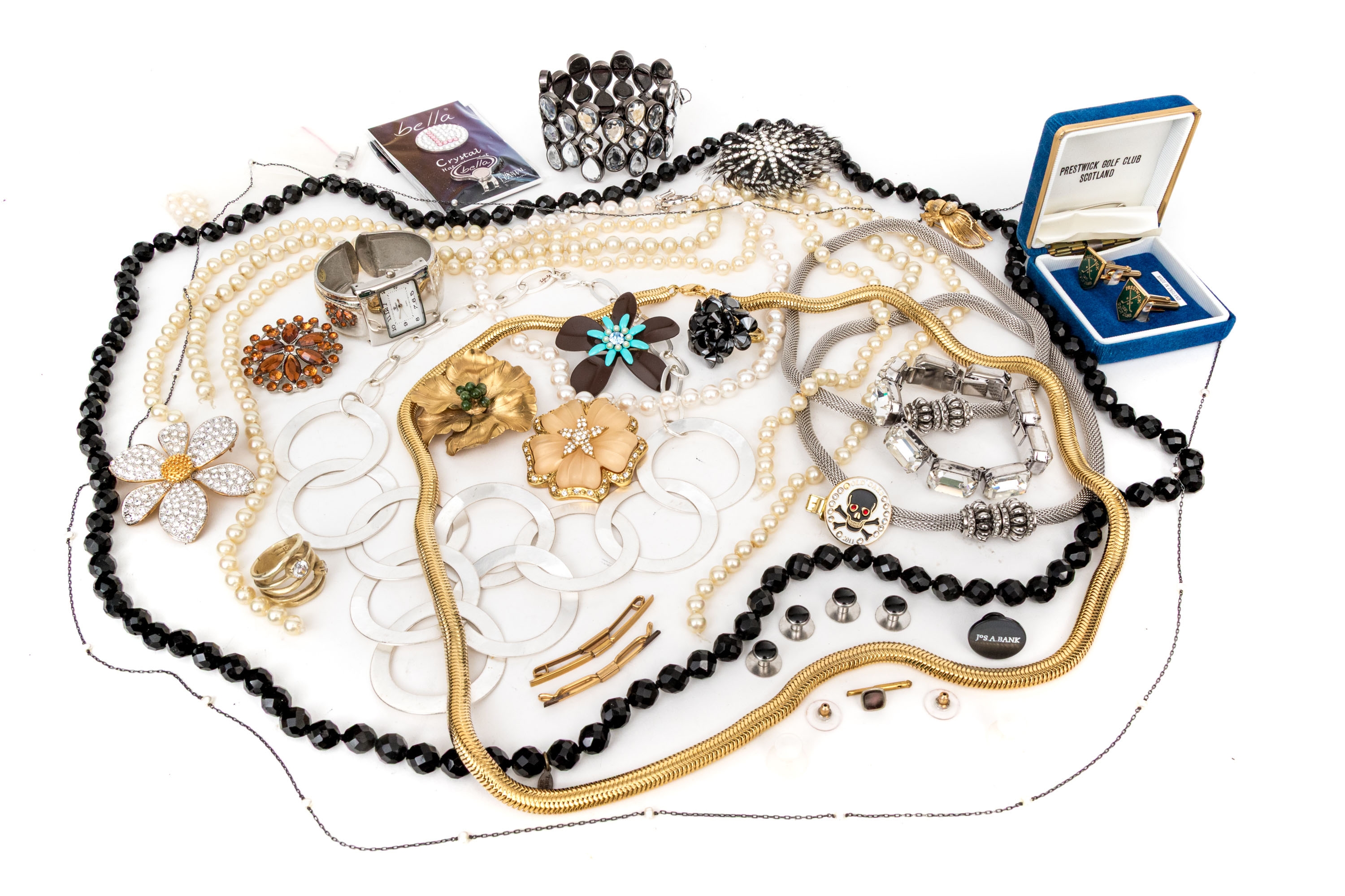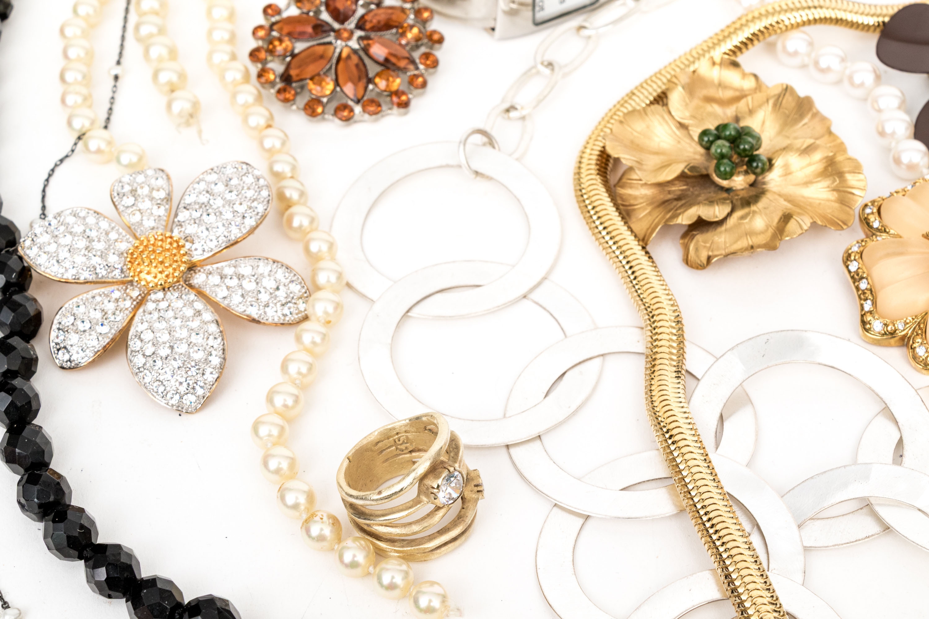 Collection of assorted fashion and costume jewelry pieces, including Lee Angel and Monet and ranging from signed to unsigned pieces. Includes some gold filled jewelry pieces also.
