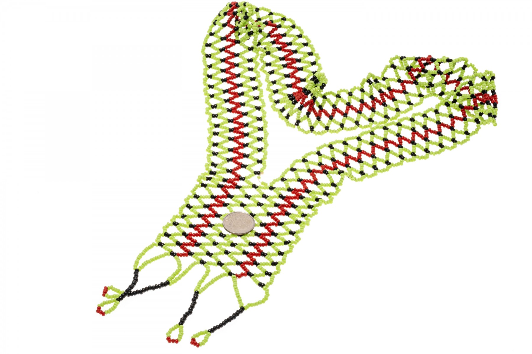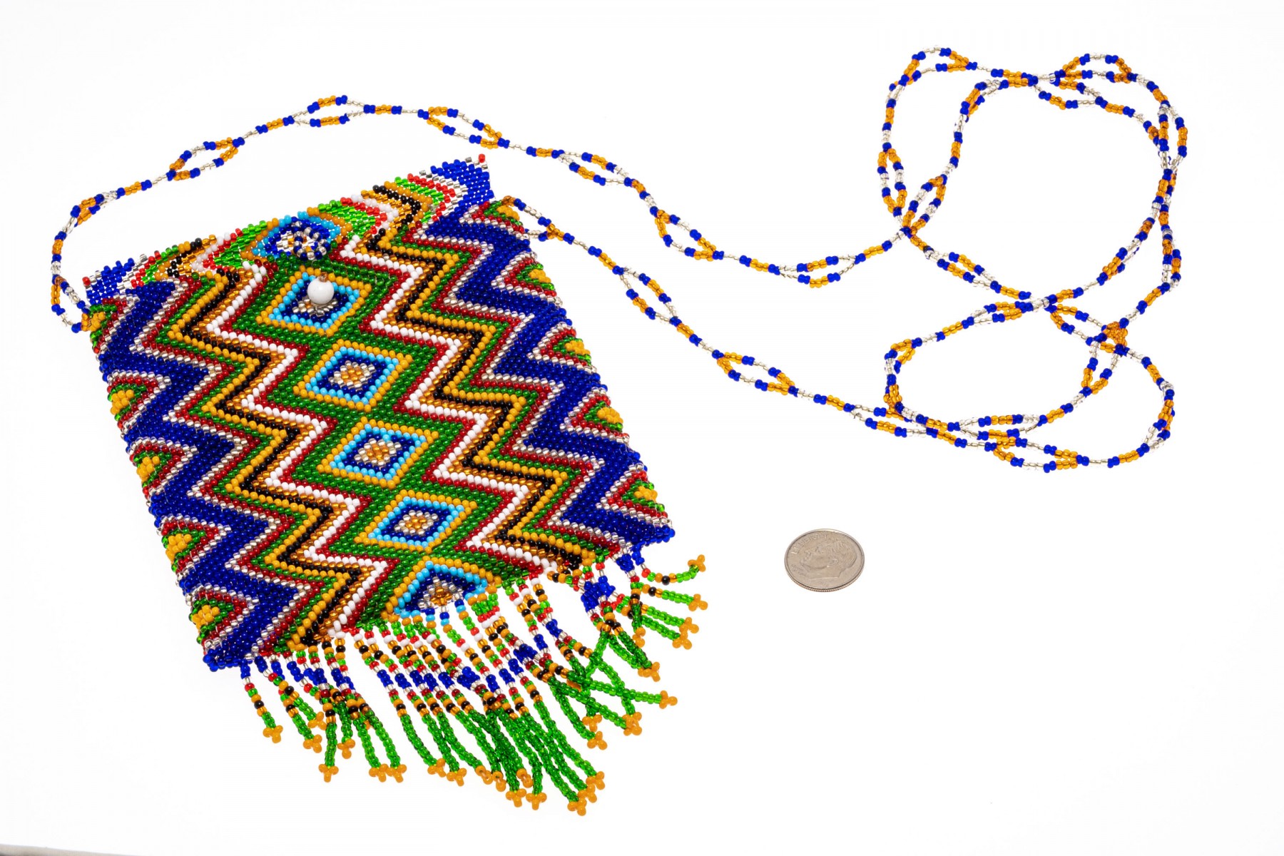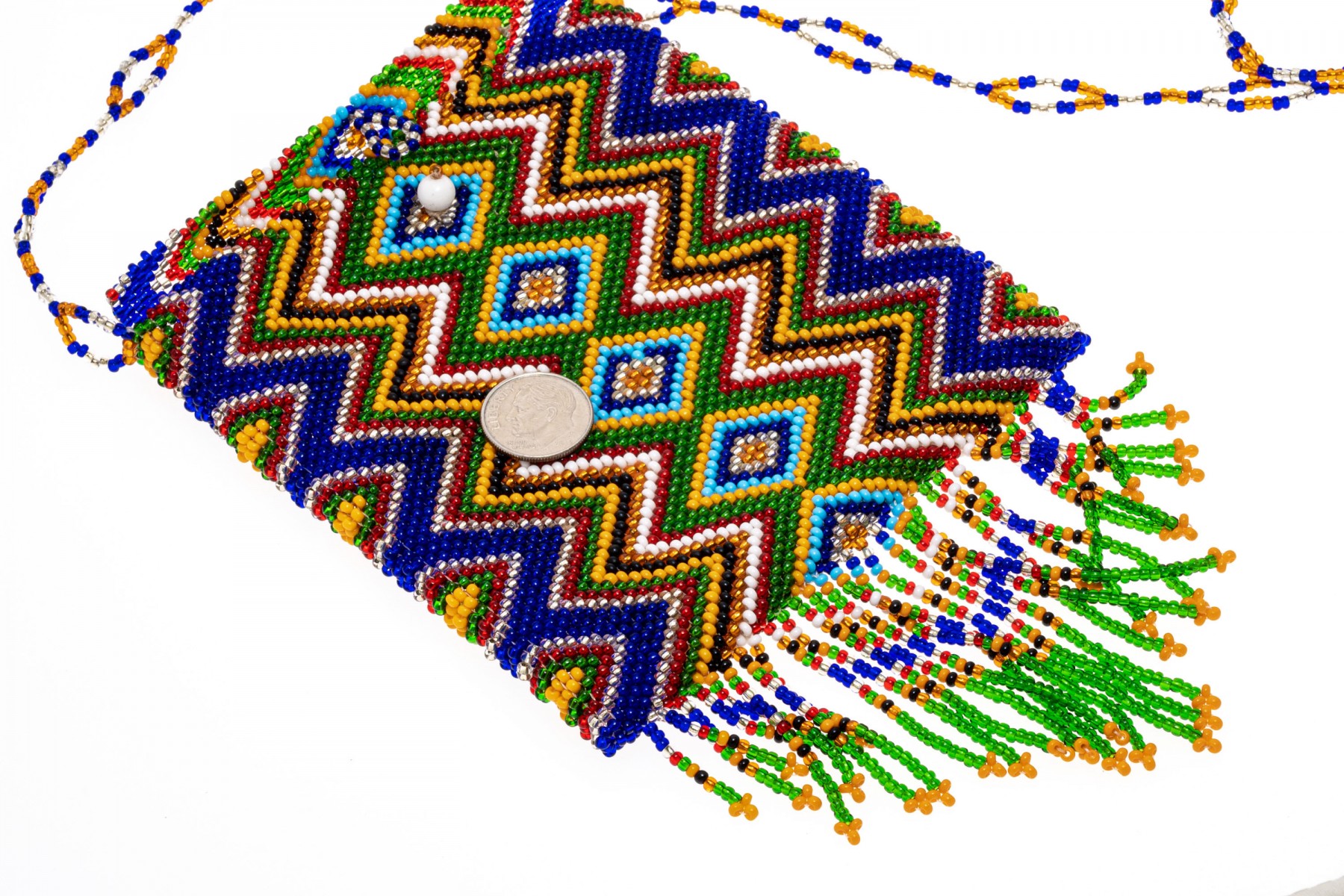Dimensions: 4 1/4" W x 7" H (with a 19 1/2" L Drop)-Beaded Purse, 17" L x 1 1/2" W-Green and Red Beaded Necklace, 2 7/8" x 3 1/8" x 3/8"-Bangle Bracelet, 2 1/2" x 2 1/2" x 1/2"-Multi-Stranded Bracelet, 2 1/4" L x 1" W-Earrings.