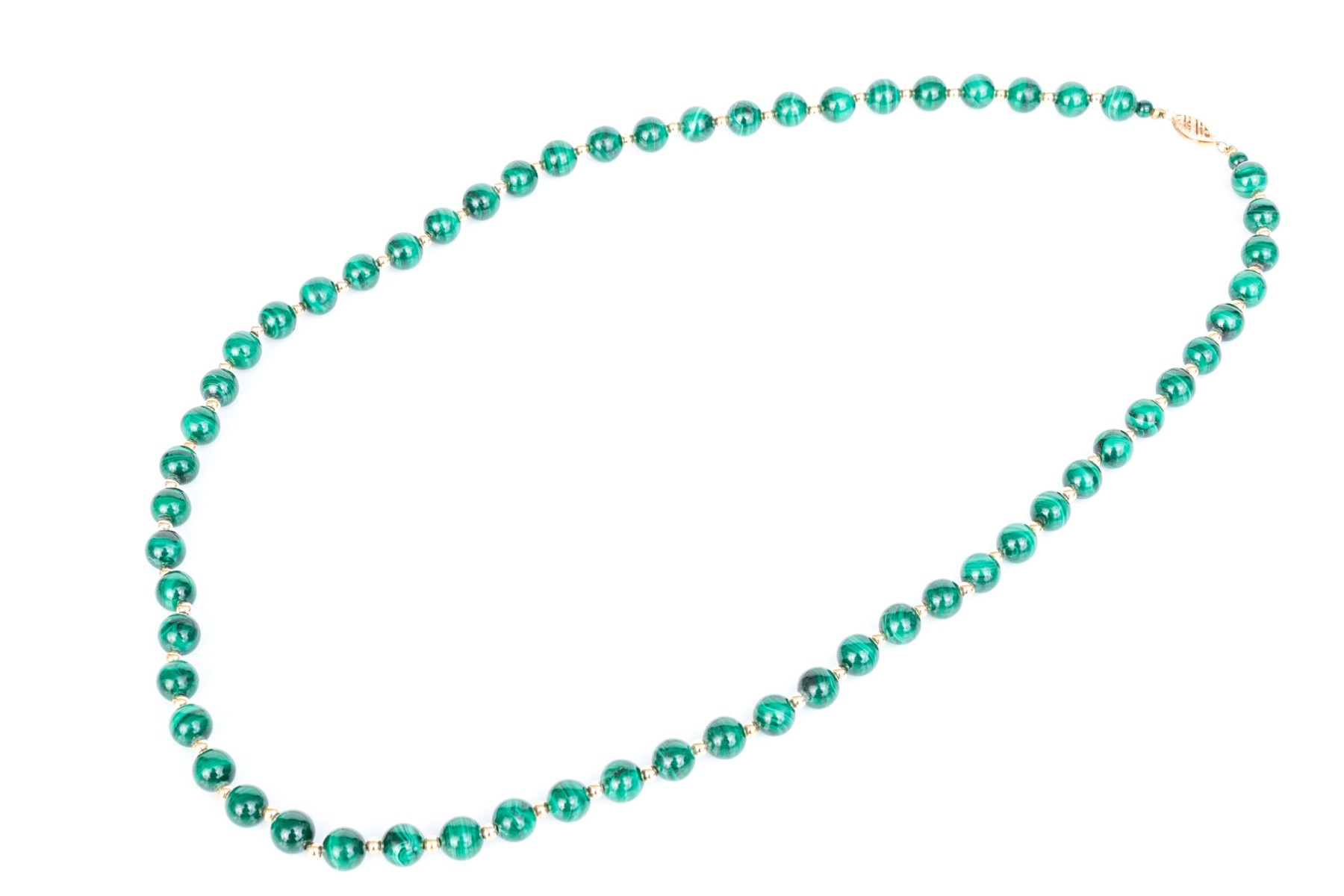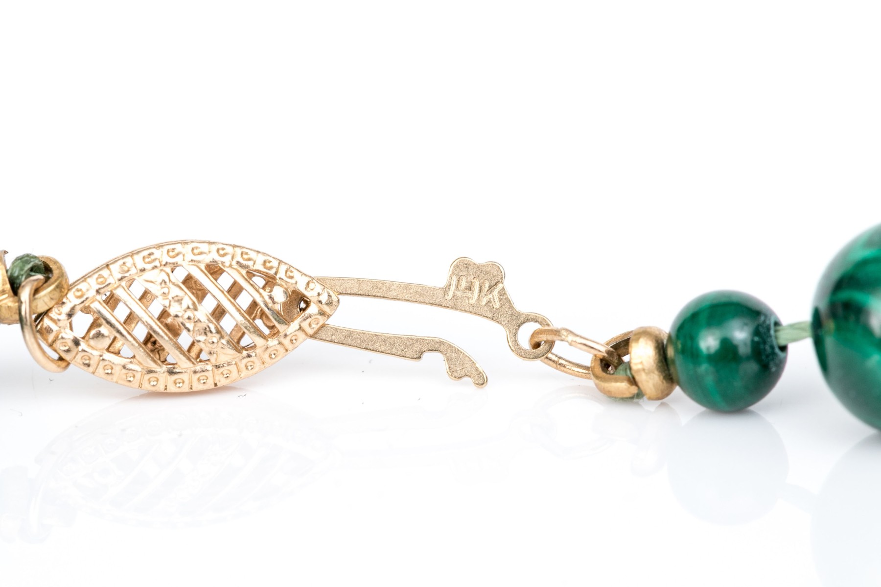 Marks: None to 14k (the malachite strand has a 14k yellow gold clasp)