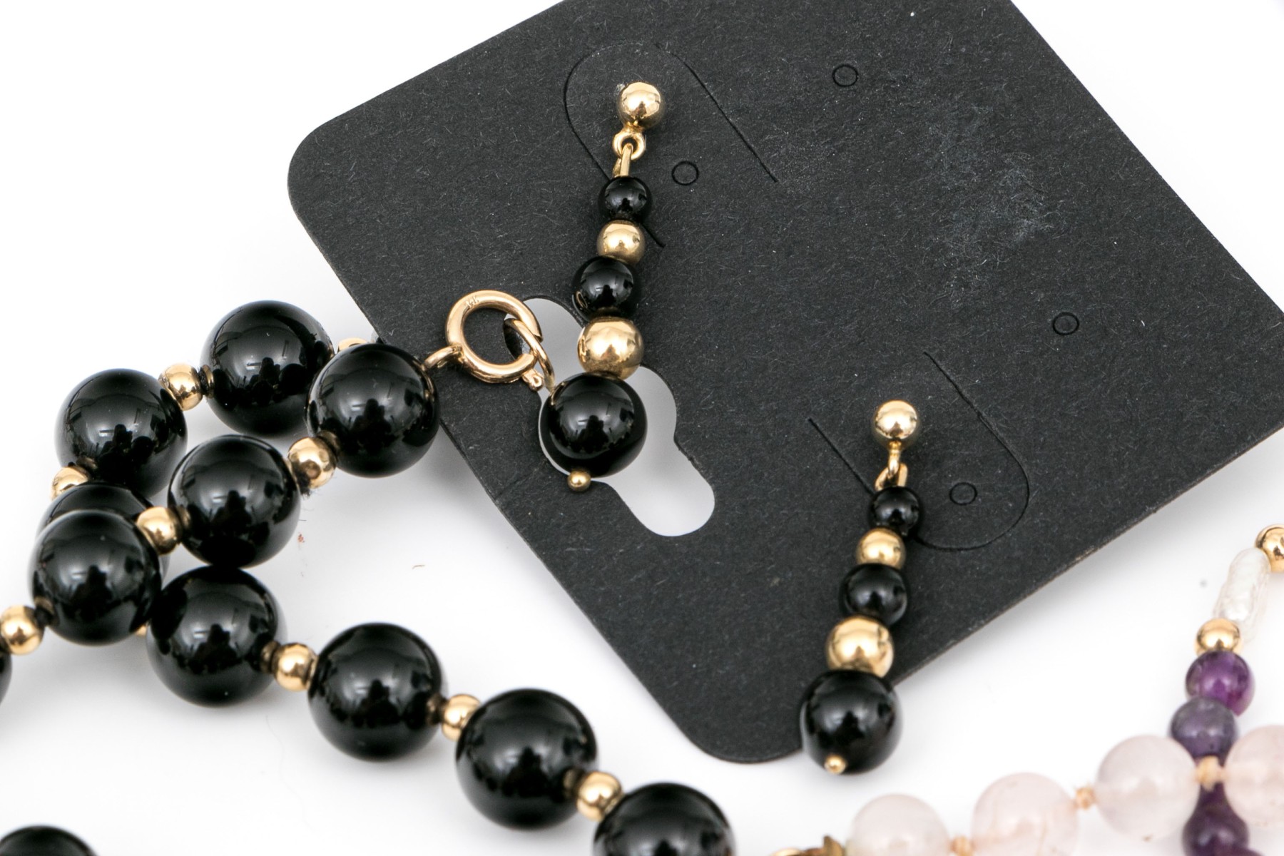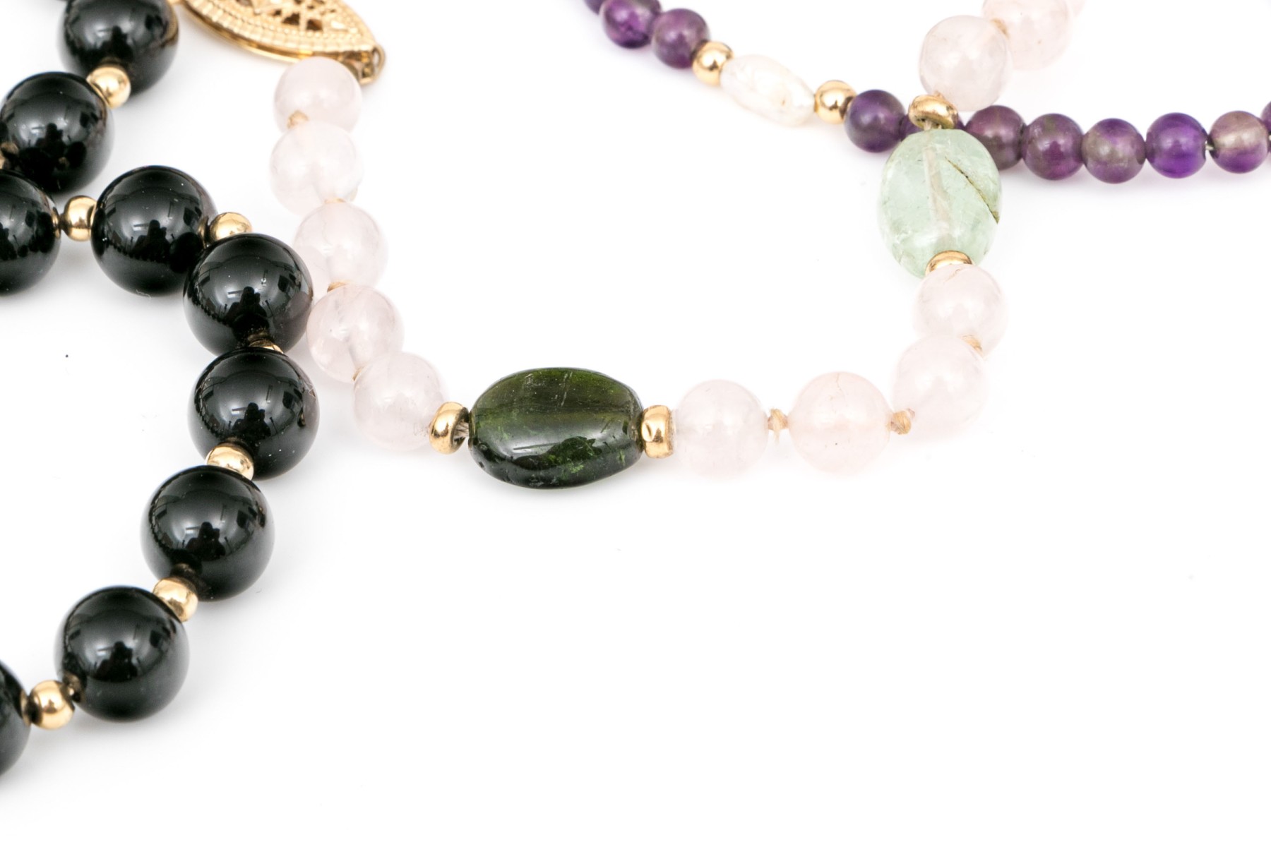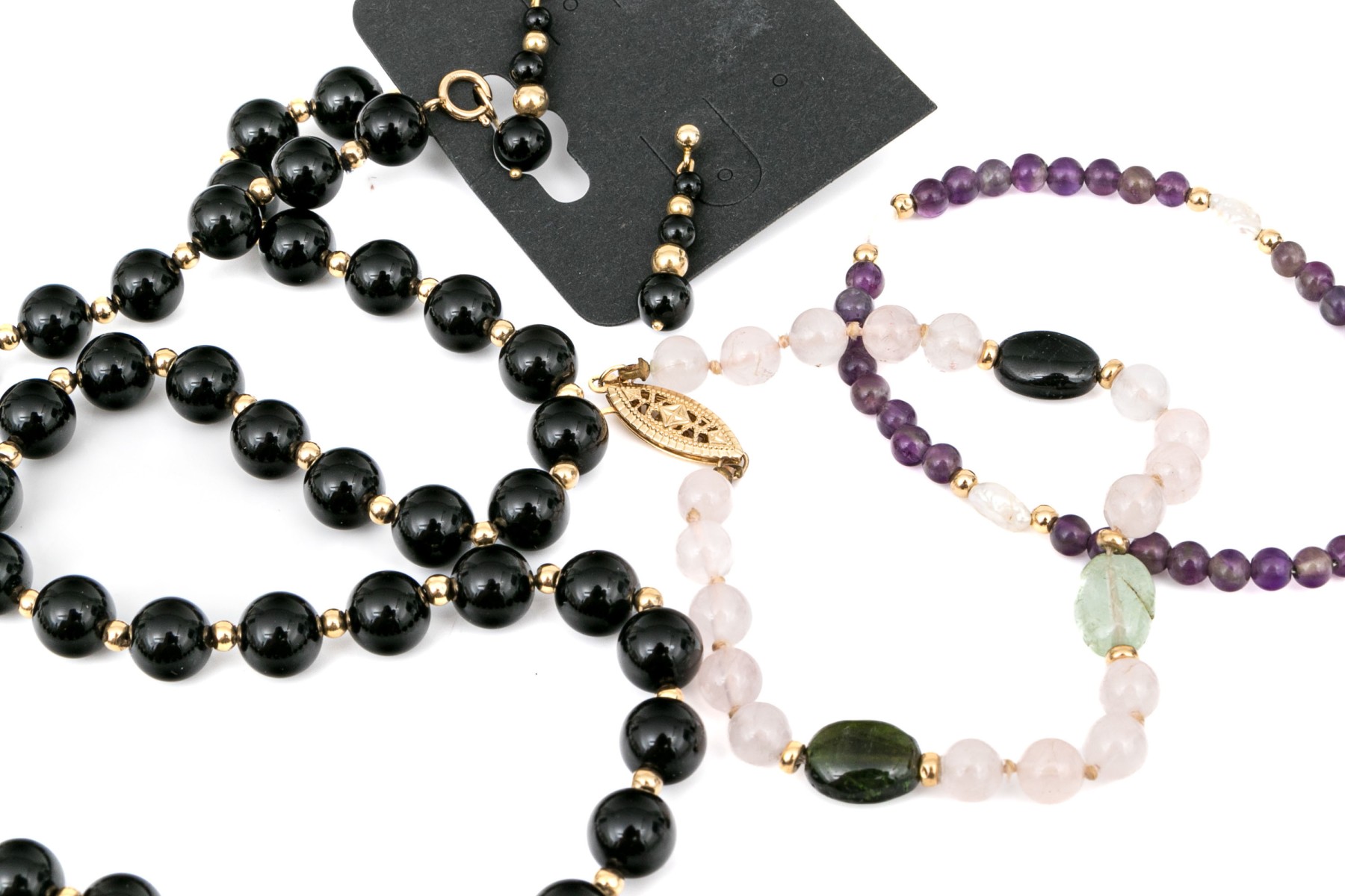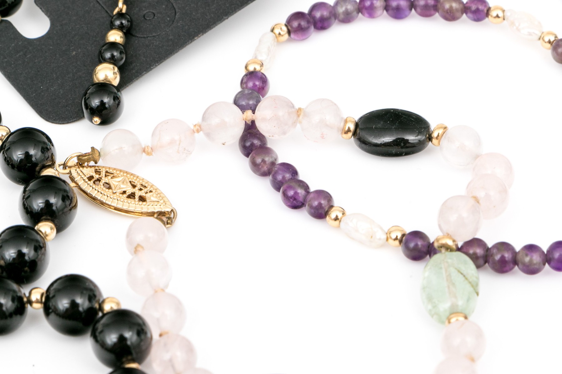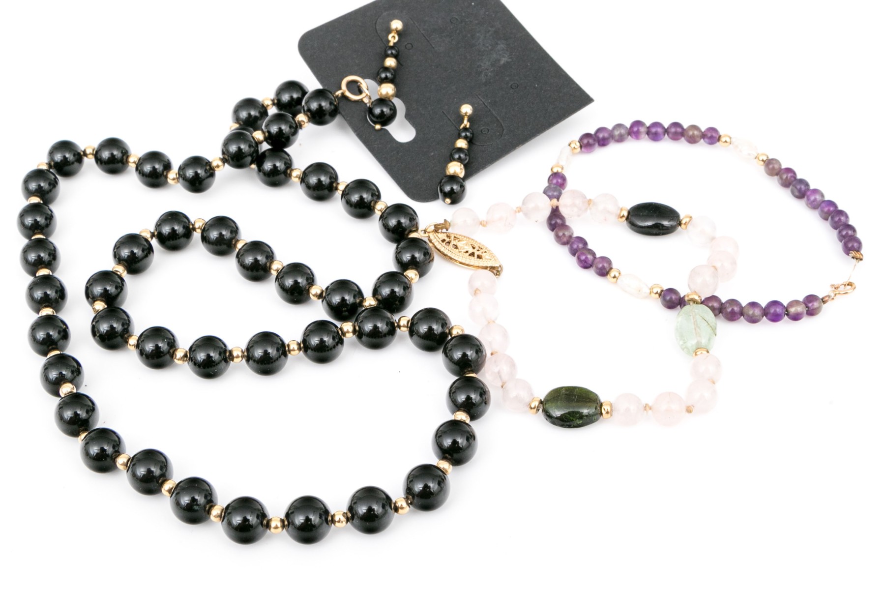 and a small bracelet with pink, green, dark stones and gold beads with a 14k gold clasp. 3 1/2" Dia