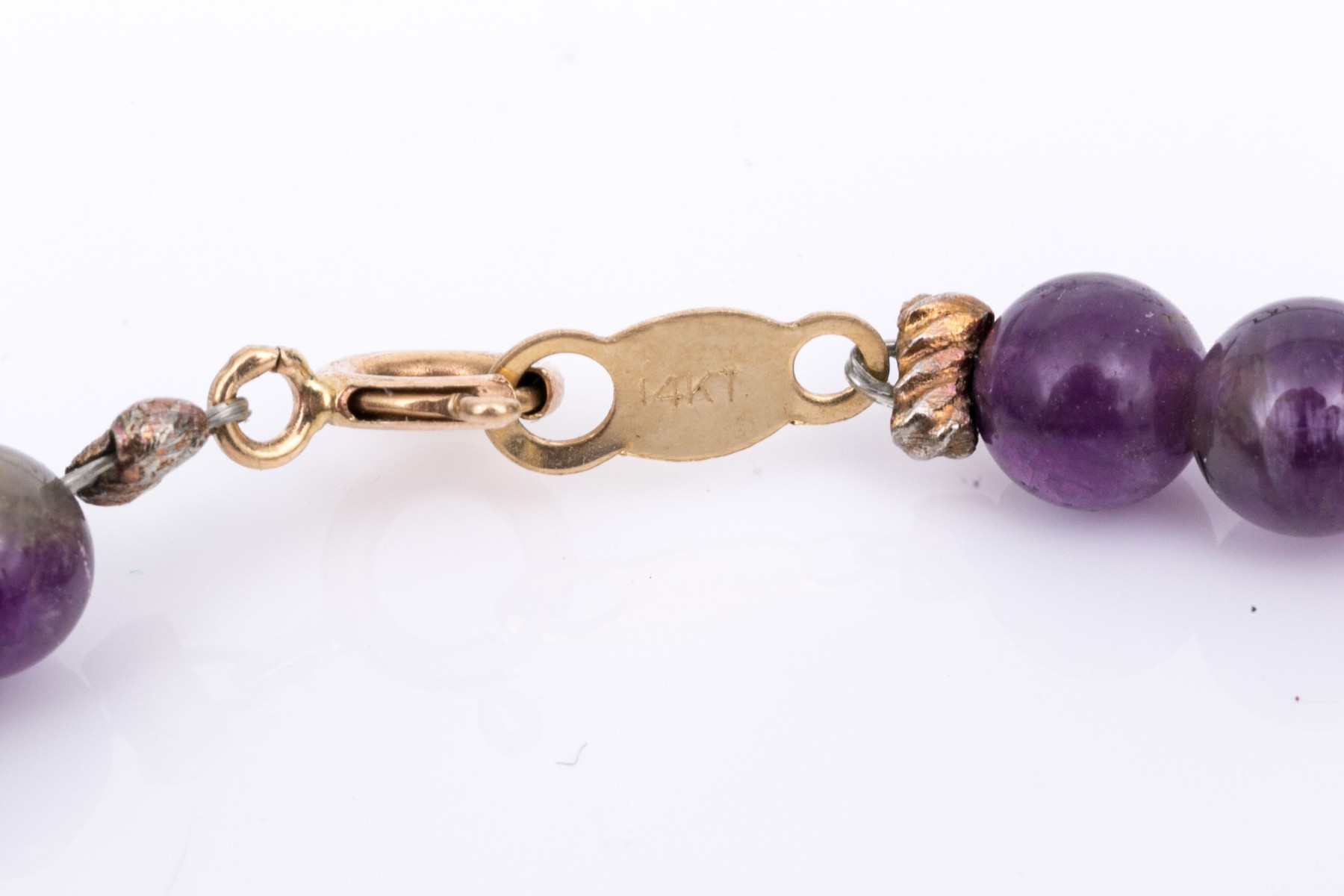a purple stone, pearl and 14k gold beaded small bracelet, 2 1/2" Dia