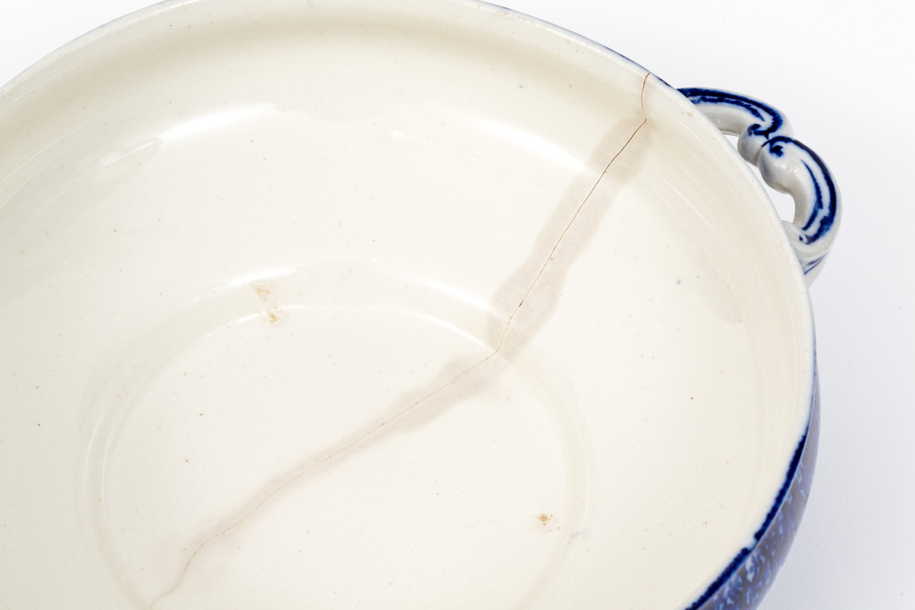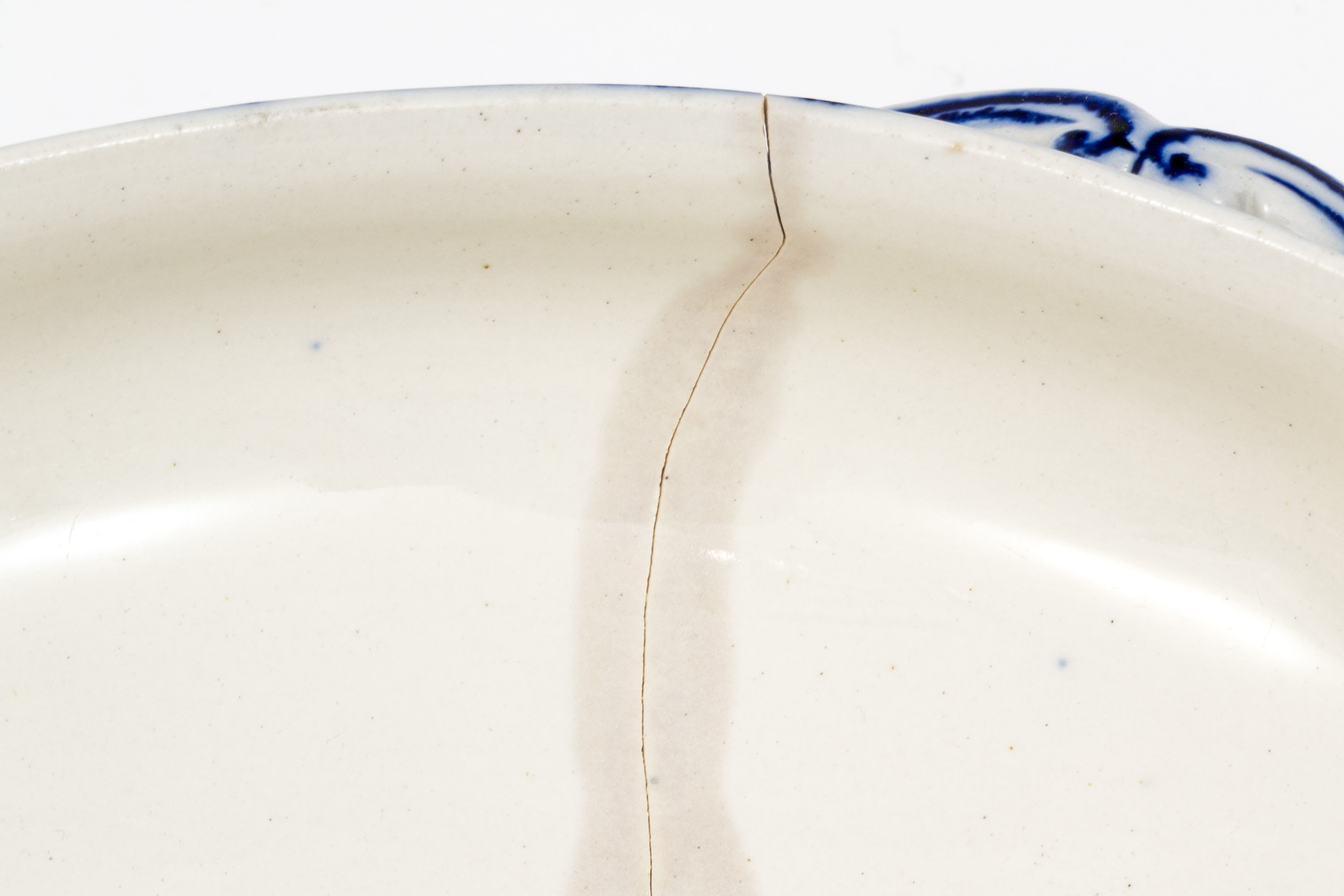 Condition: A substantial fracture underfoot to the circular dish. Wear is commensurate with age and usage. See lot images for further visual inspection as they are considered part of the lot condition report.