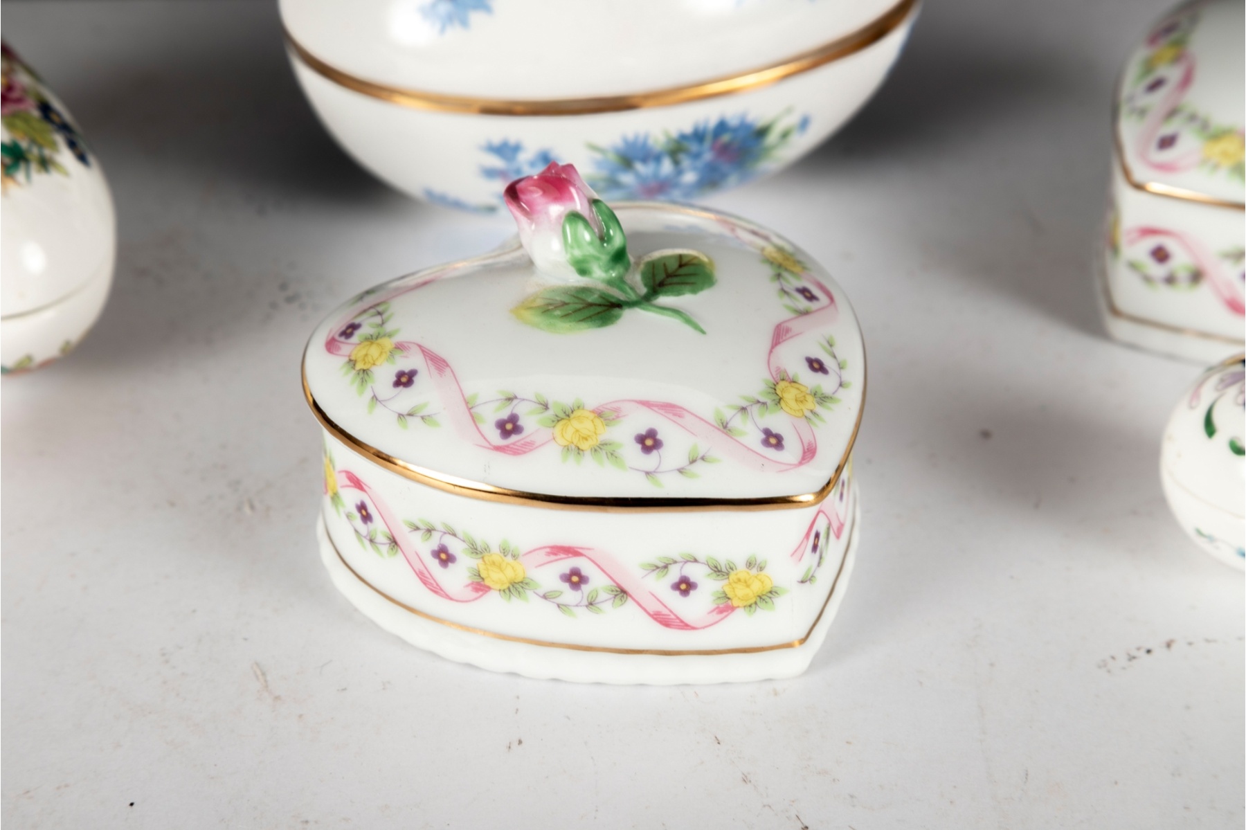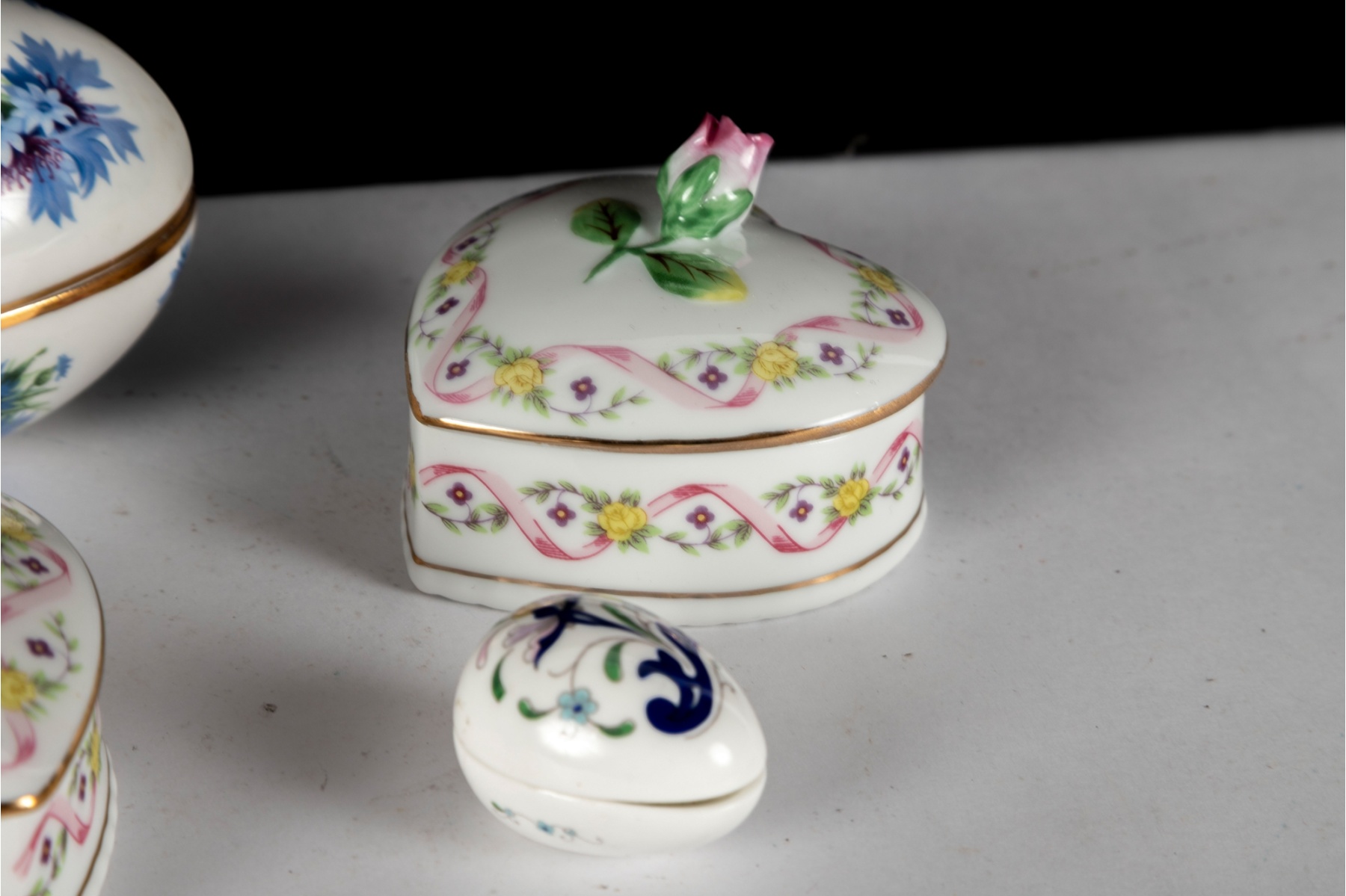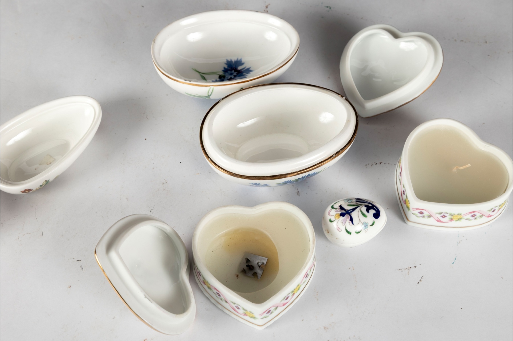 - (2) Heart-shaped porcelain candle boxes with rose finials