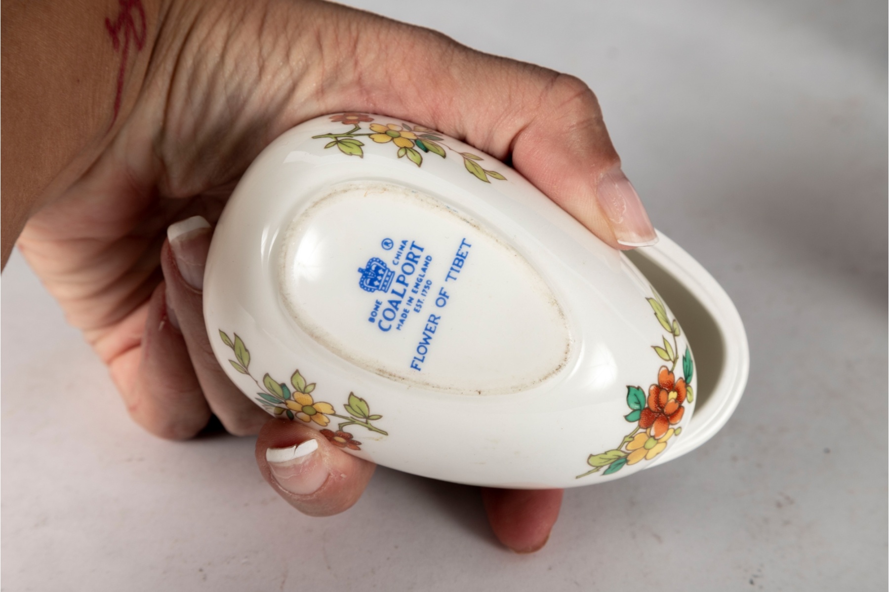 - (1) Hammersley porcelain egg capsule with floral decoration