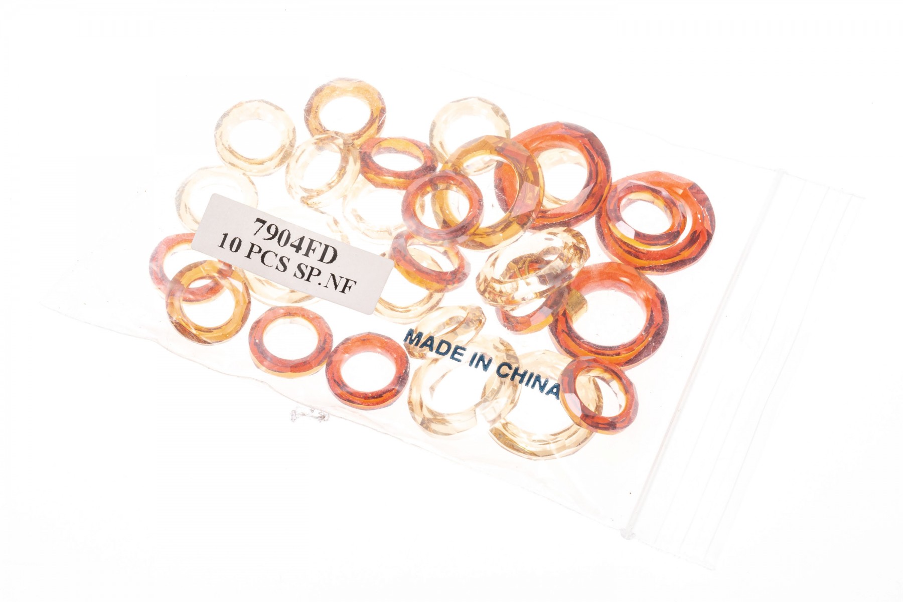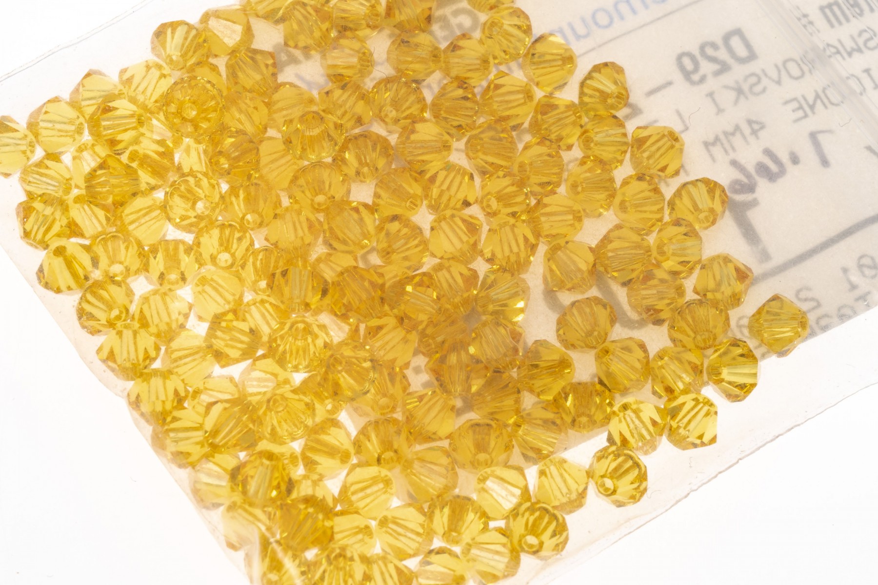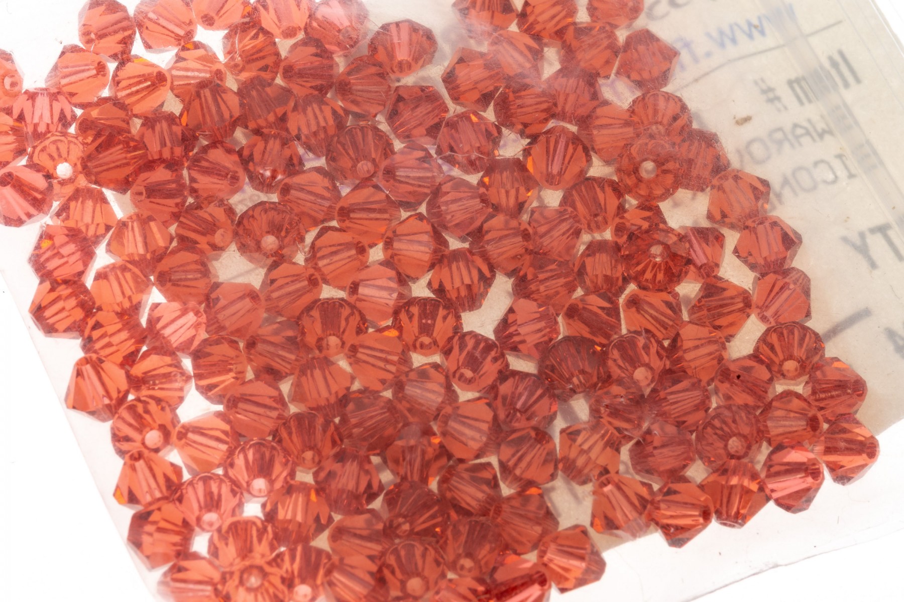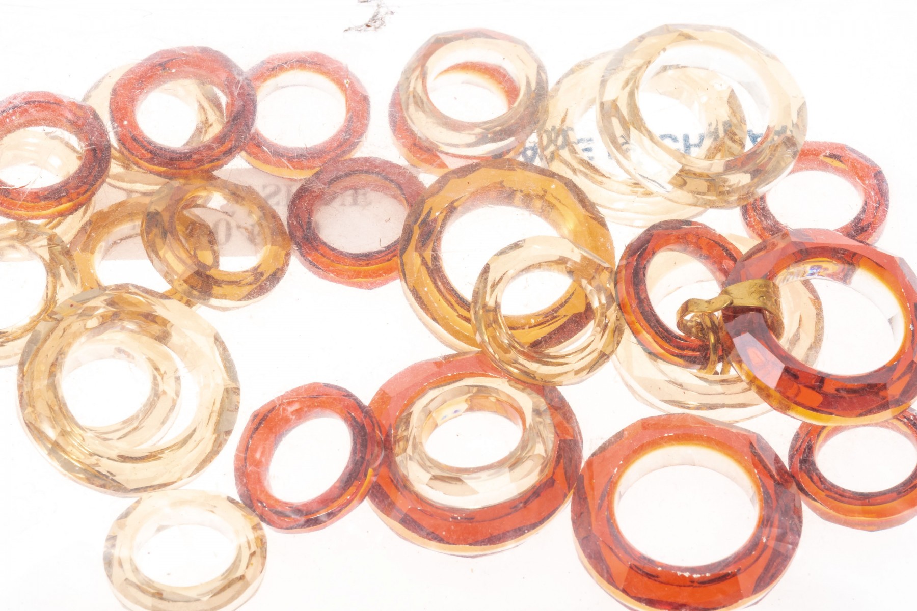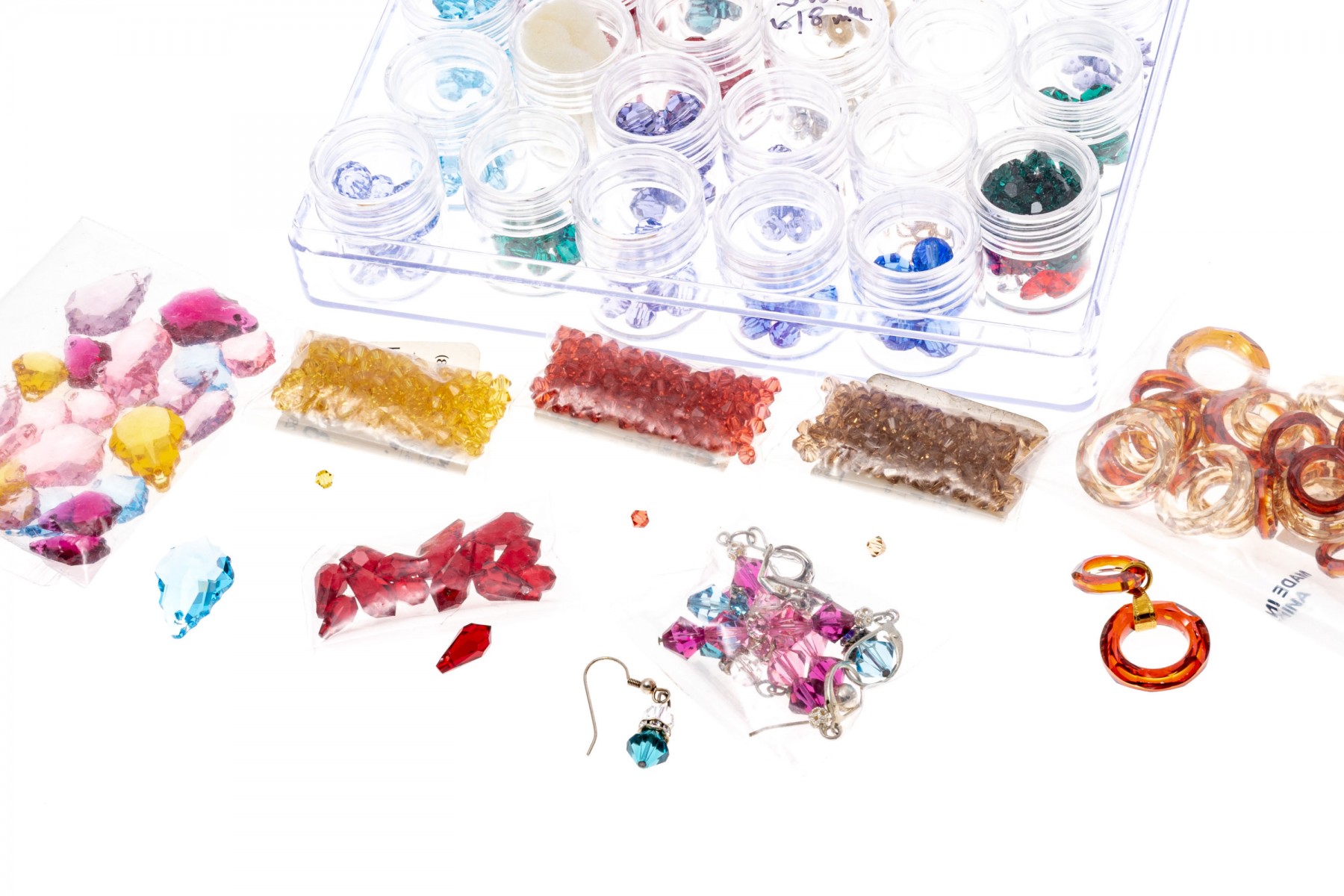 Collection of colorful costume beads. These beads have a faceted design with a variety of shapes.
