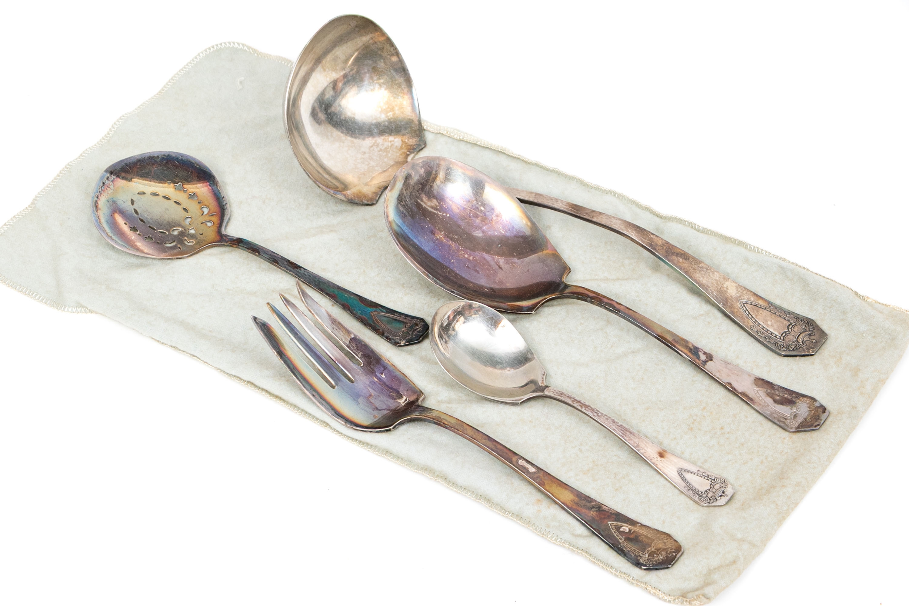 ladle, serving spoon, meat fork, tomato server and a jelly spoon.