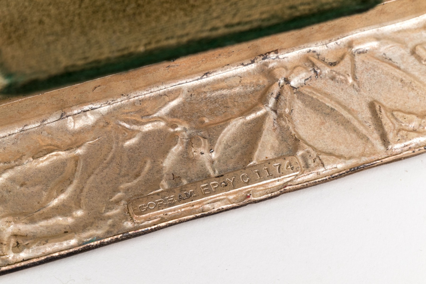 one by Gorham with embossed flowering vine pattern. Velvet like backing (loose)