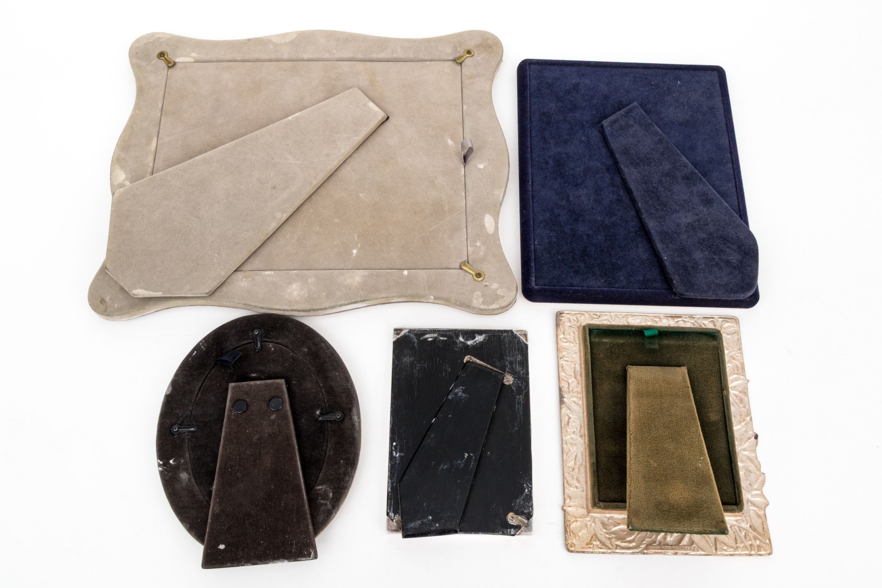 an oval frame with embossed foliate scrolled band. Suede like backing