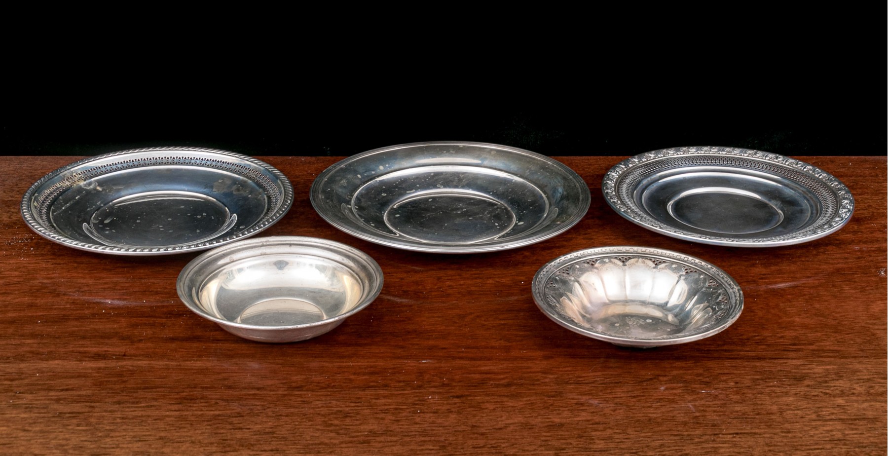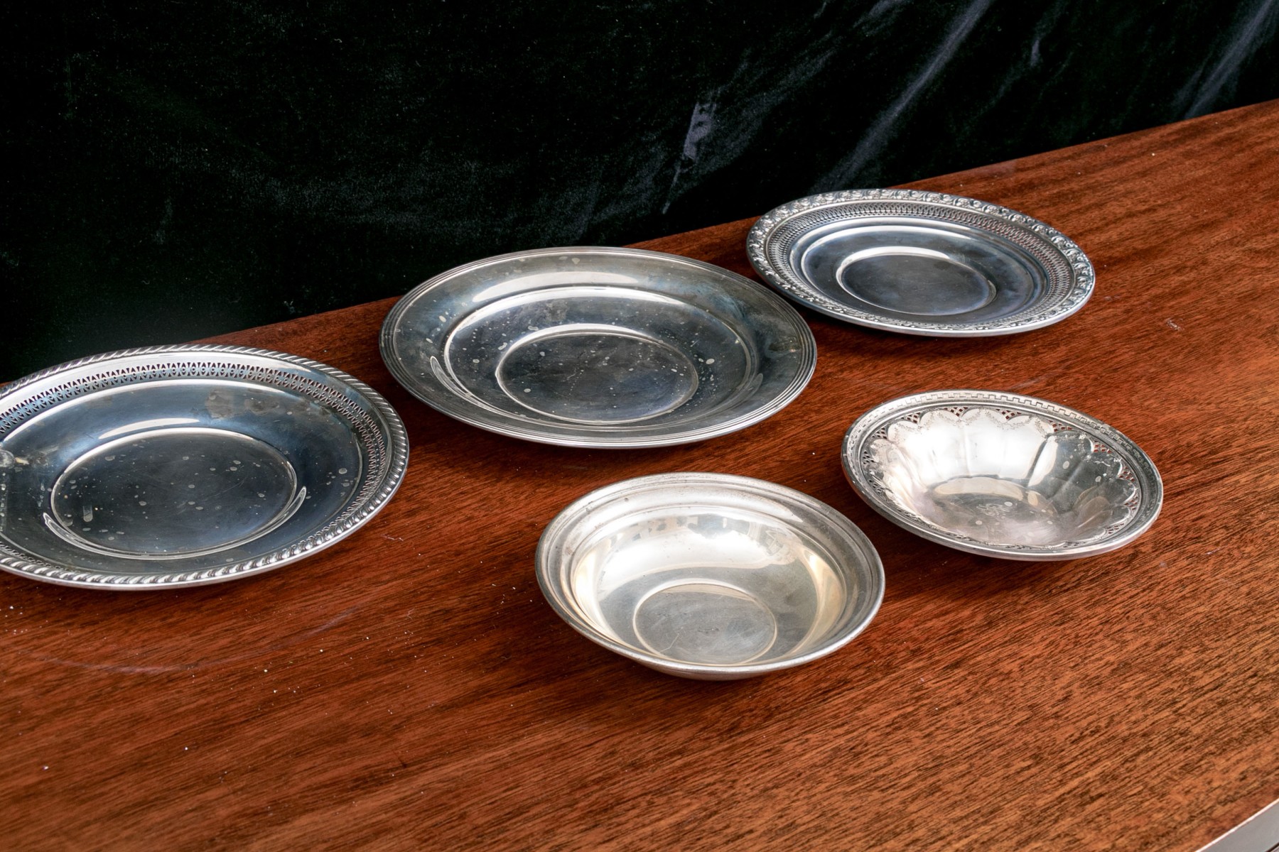 Collection Of Five Sterling Silver Trays/dishes 18.900 OZT #287207. Black Rock Galleries provides high end estate liquidation services through online estate auctions and a 50,000 sq ft designer showroom. estate liquidator, estate sale, online auction, antiques, fine art, liquidation, clean outs, auction, consignment, interior design, fine jewelry, collectibles, appraisals, estate appraisals, estate services, decor, furniture, furniture consignment, antique center, consignment shop. We offer appraisal services and specialize in fine art, jewelry, antiques and decorative arts. Sell with us. Black Rock Galleries is the tri-state's largest estate liquidator serving New England and the greater New York City area. We are the trusted source for expert appraisals, auction services, estate sales, and consignments. Black Rock Galleries is the east coast's largest and most trusted estate liquidator, with locations in Connecticut, greater Boston, MA and Raleigh, NC, Fairfield, Southport, Apex, TX. We are the best source for expert appraisals, auction services, estate sales and consignments. We have served thousands of families and estates with compassion, professionalism and expertise. BRG works with attorneys, executors, realtors and families to bring the greatest return on personal and estate property in the current market. Our unique combination of services make us the easy choice to get the job done in a timely and stress-free manner. We are with you from the initial consultation to the final clean out. Our house-built online auction software platform offers clients a dynamic approach to liquidating their personal property. This venue is most successful in bringing the best return with the least amount of disruption for our clients. See our services page for a complete description of this offering. Collection Of Five Sterling Silver Trays/dishes 18.900 OZT #287207