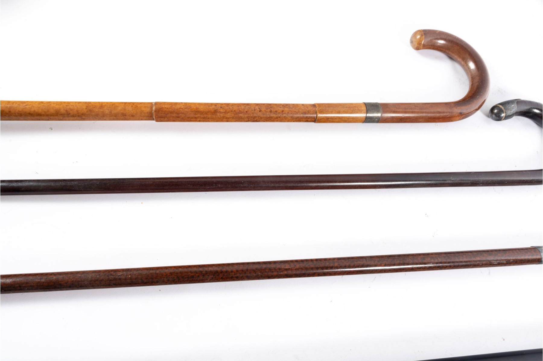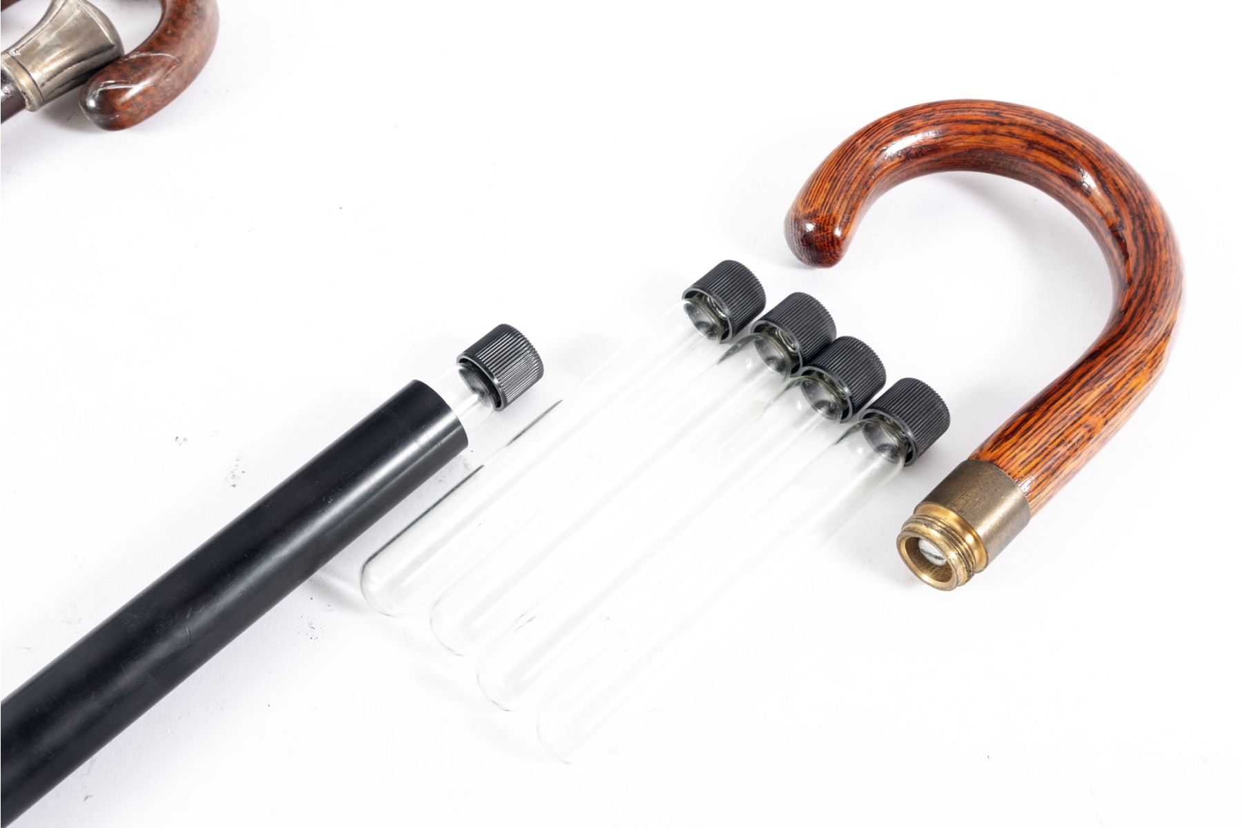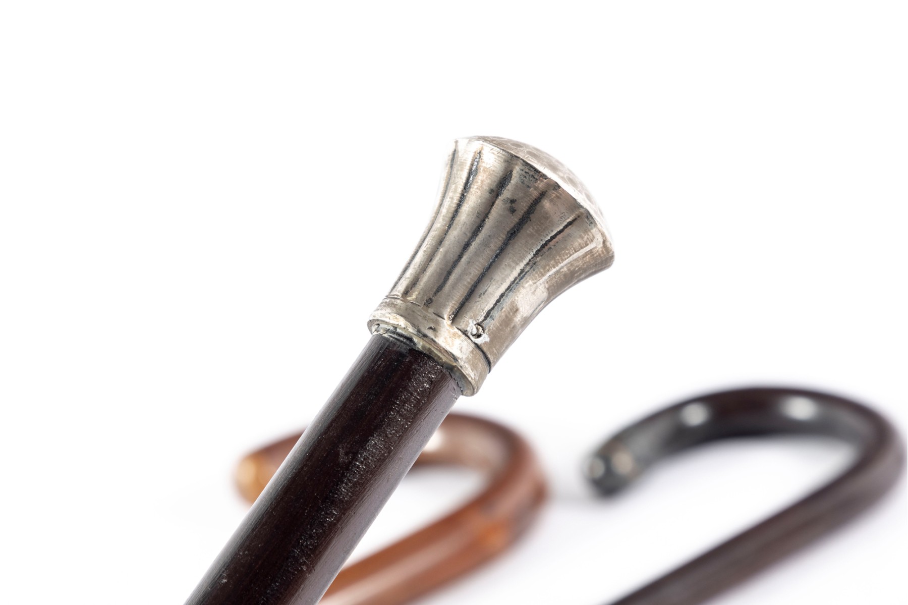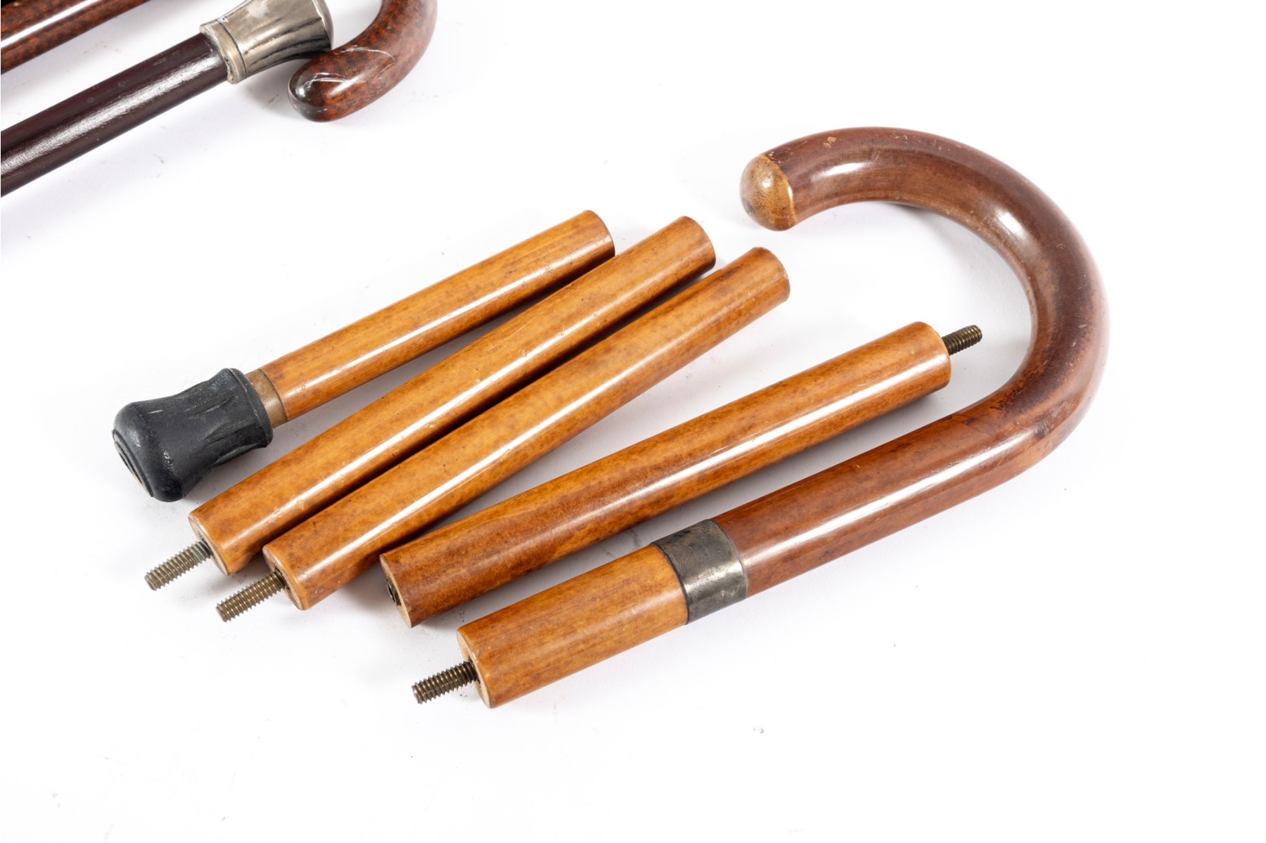 A set of five vintage walking canes -- each one unique and showcasing arched handles and one pommel handle cane. Contents as shown, see photos for details.
