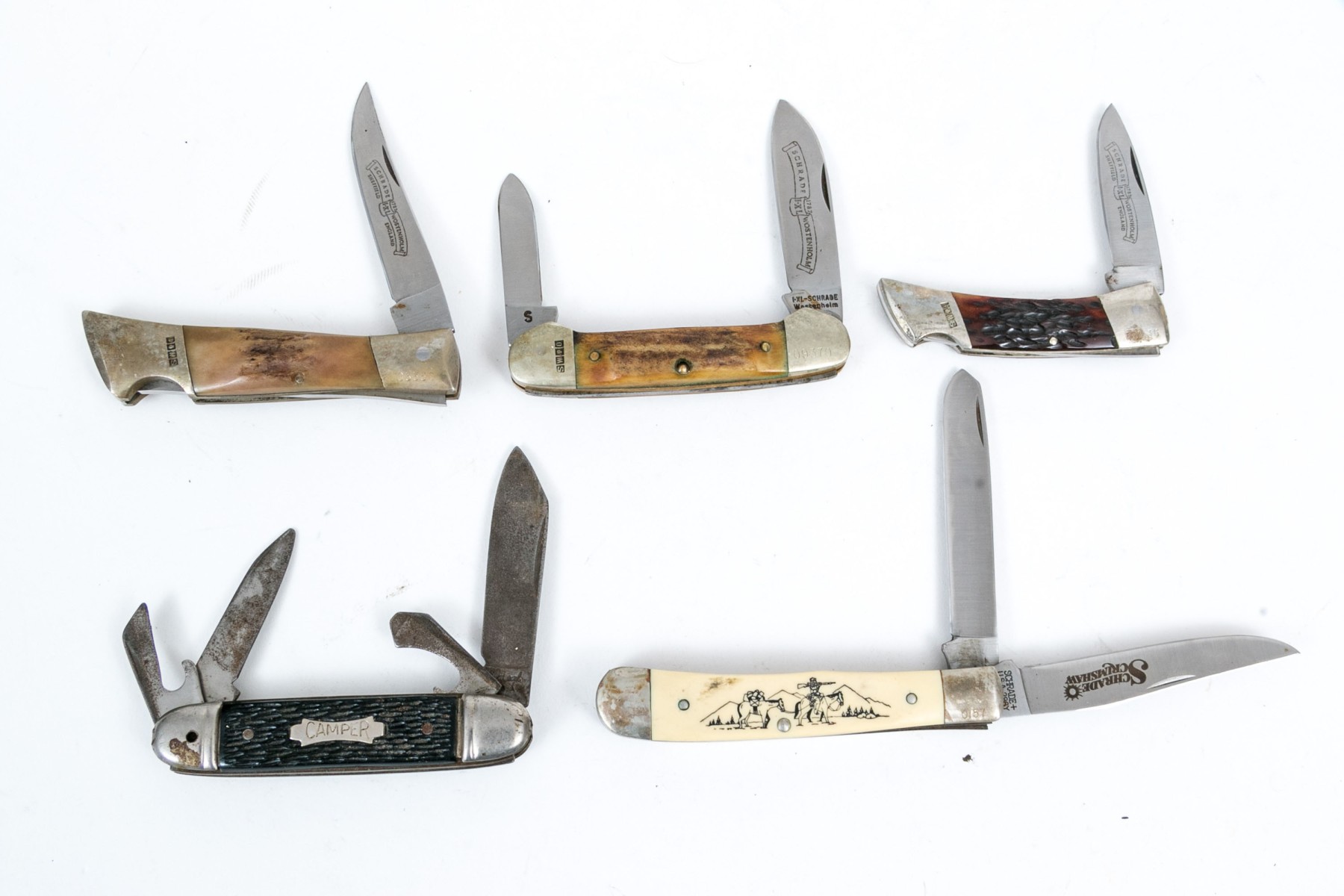 Dimensions: Folding knives range from 3 1/8" L to 5 1/4" L (blades range from 2" L to 3 5/8" L), Tomahawk Knife 11 1/4" L (5 1/2" Blade)
