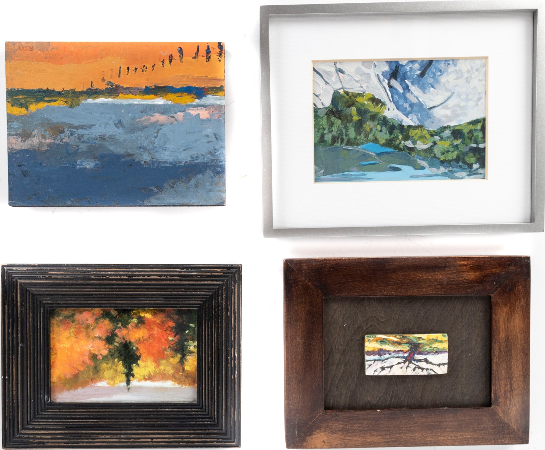 Collection Of Four Small Abstract Painted Landscapes, Some Signed