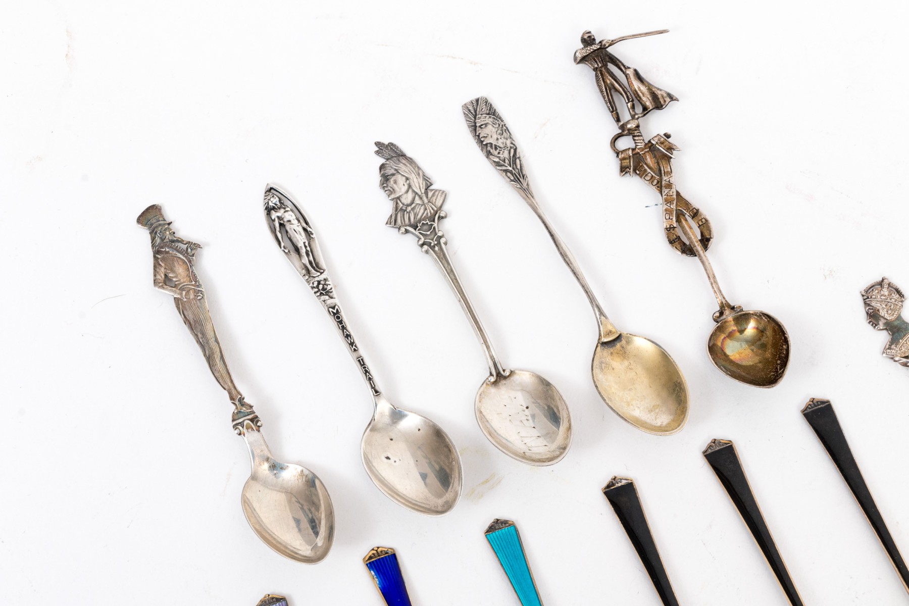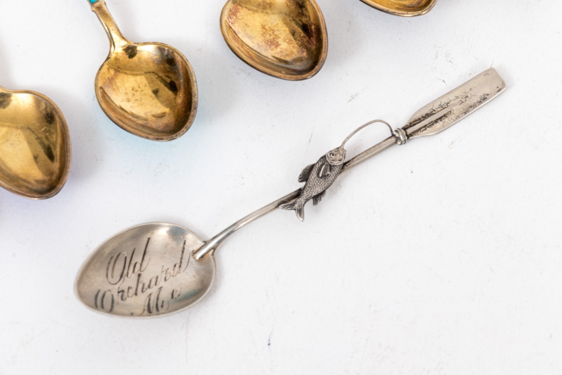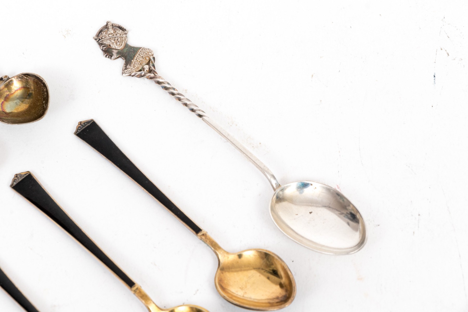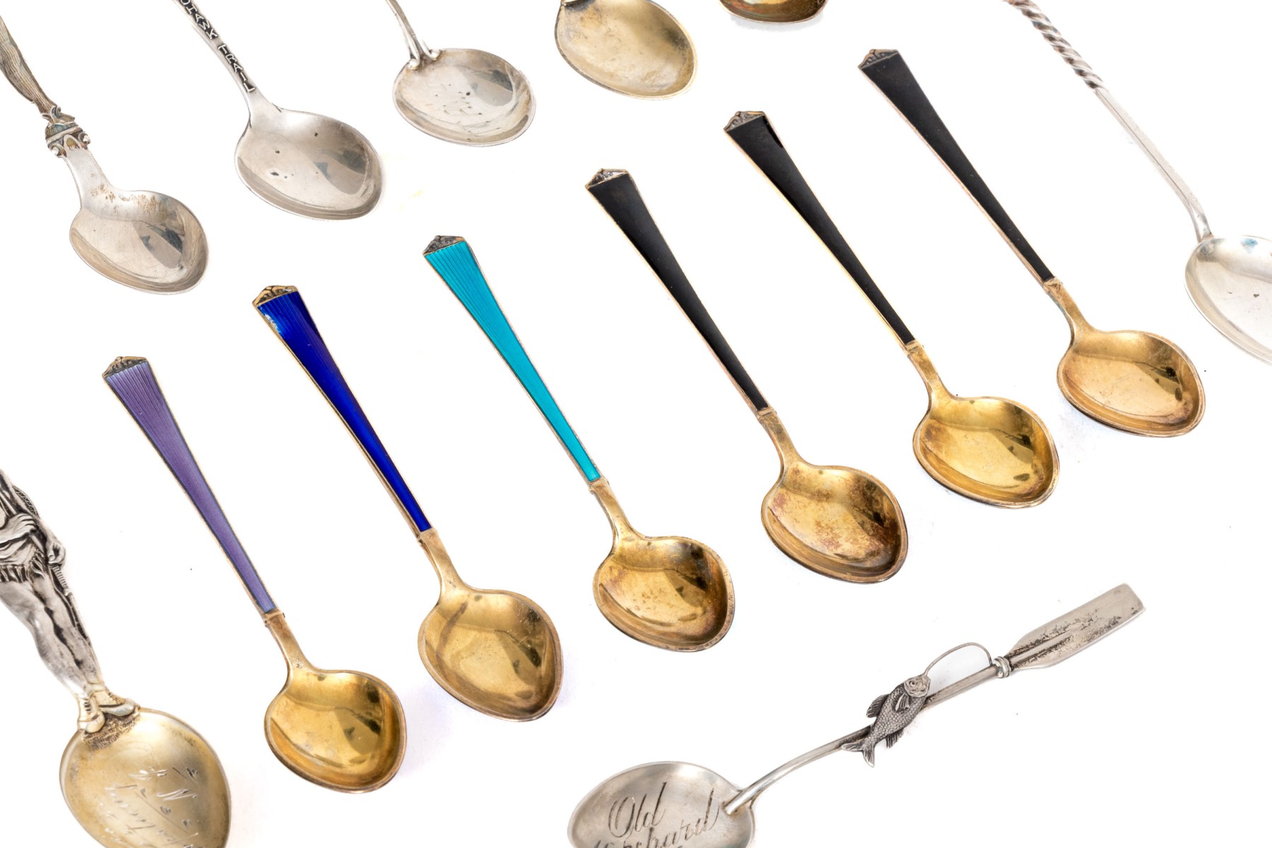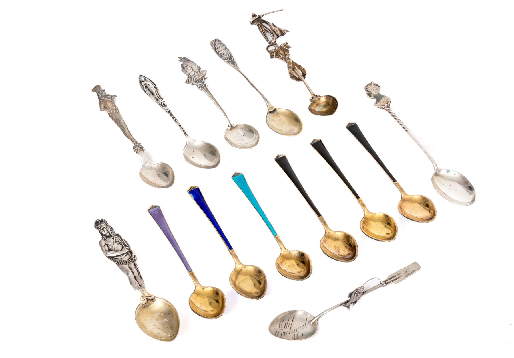 Collection of fourteen sterling silver coffee spoons. Various designs, some with colorful enamel.
