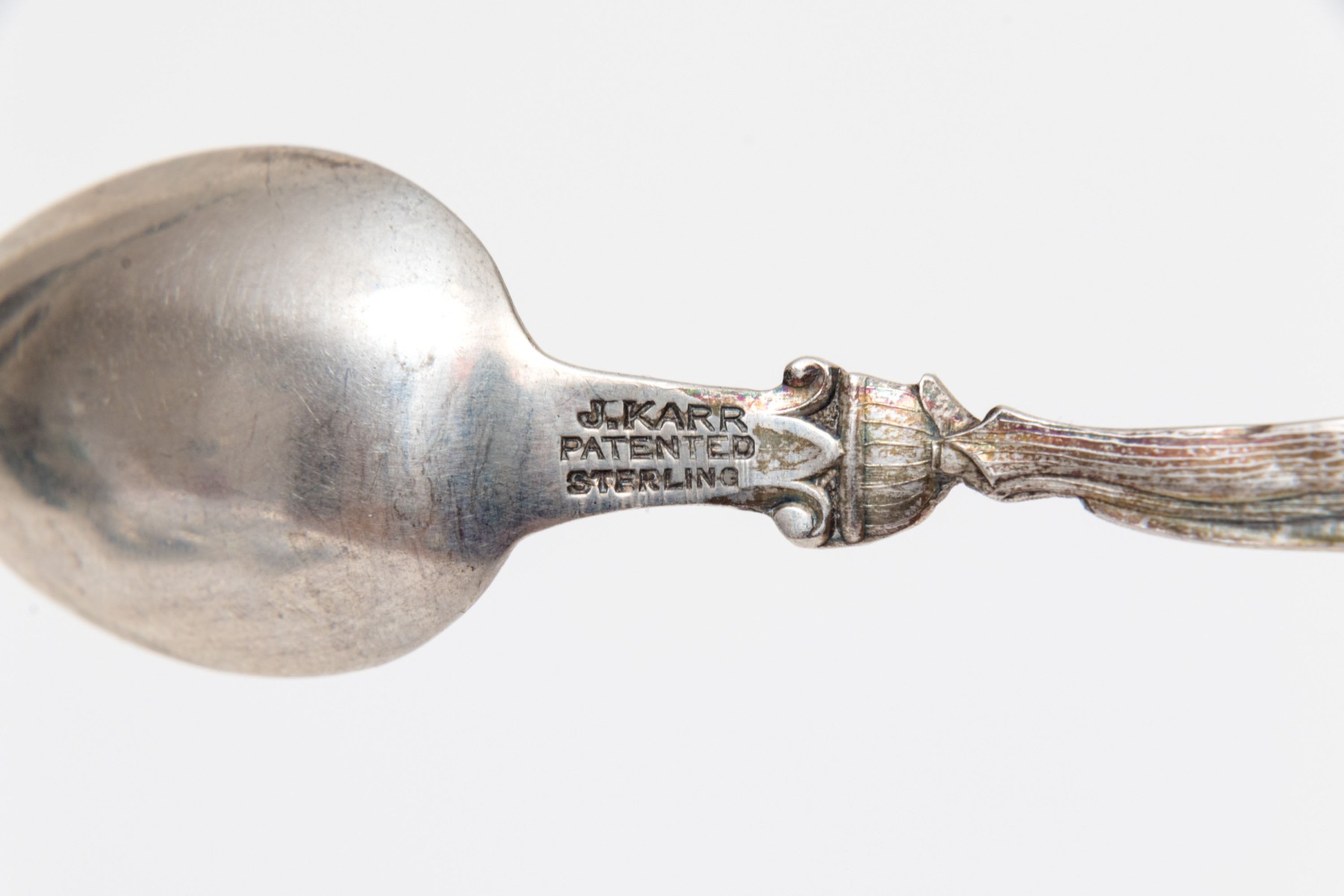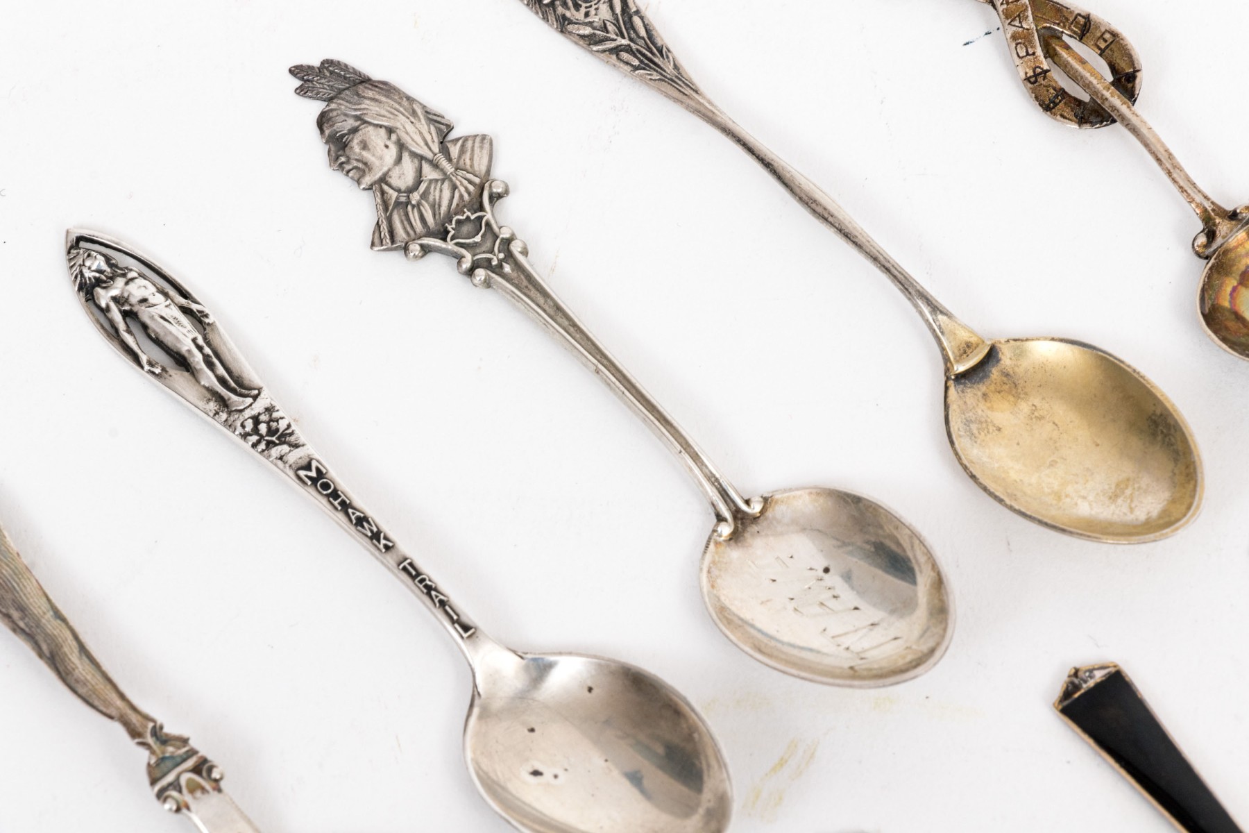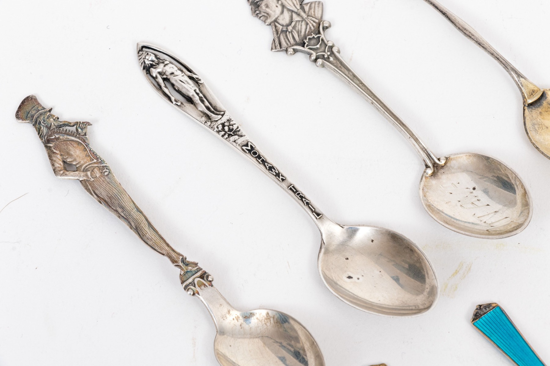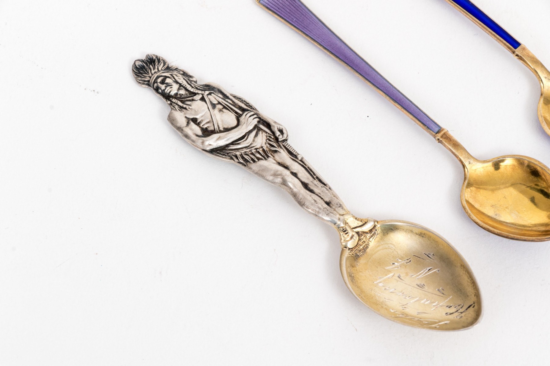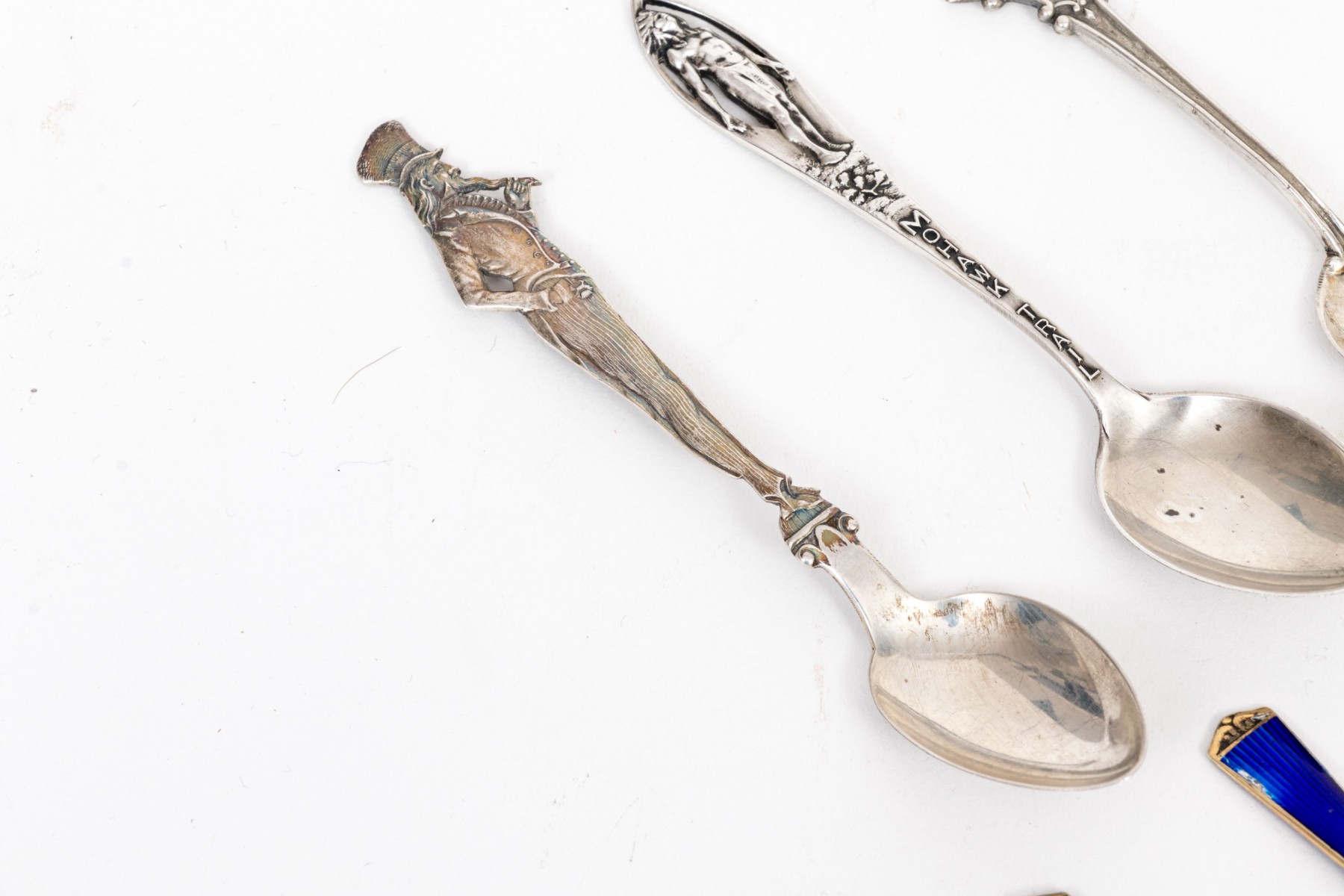 Collection of fourteen sterling silver coffee spoons. Various designs, some with colorful enamel.