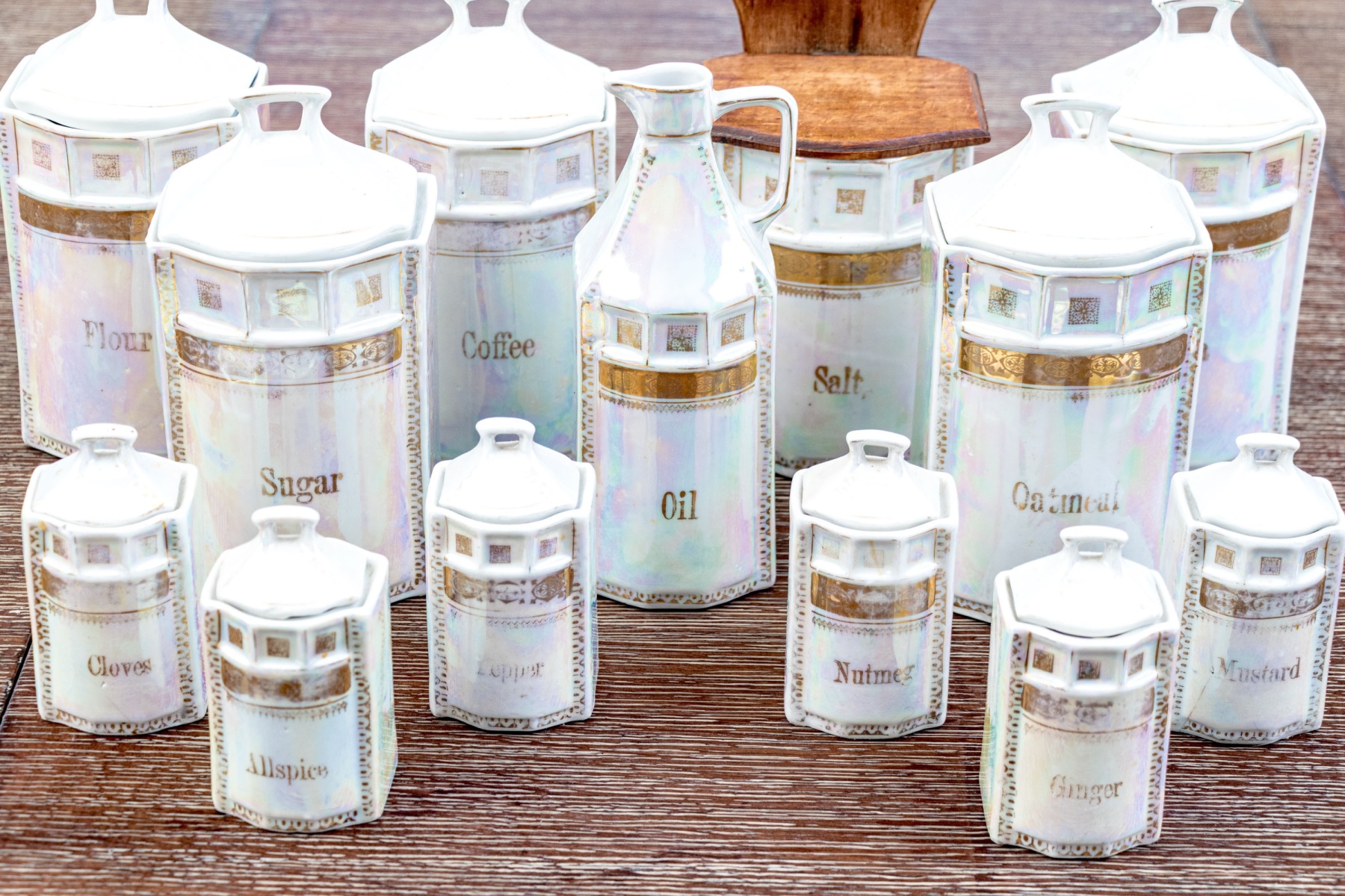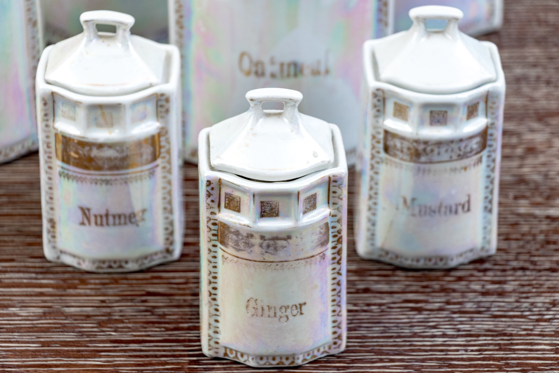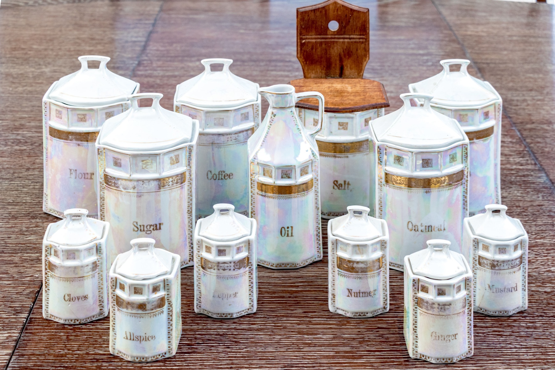 A wonderful collection of German lustreware kitchen ceramic vessels comprised of: