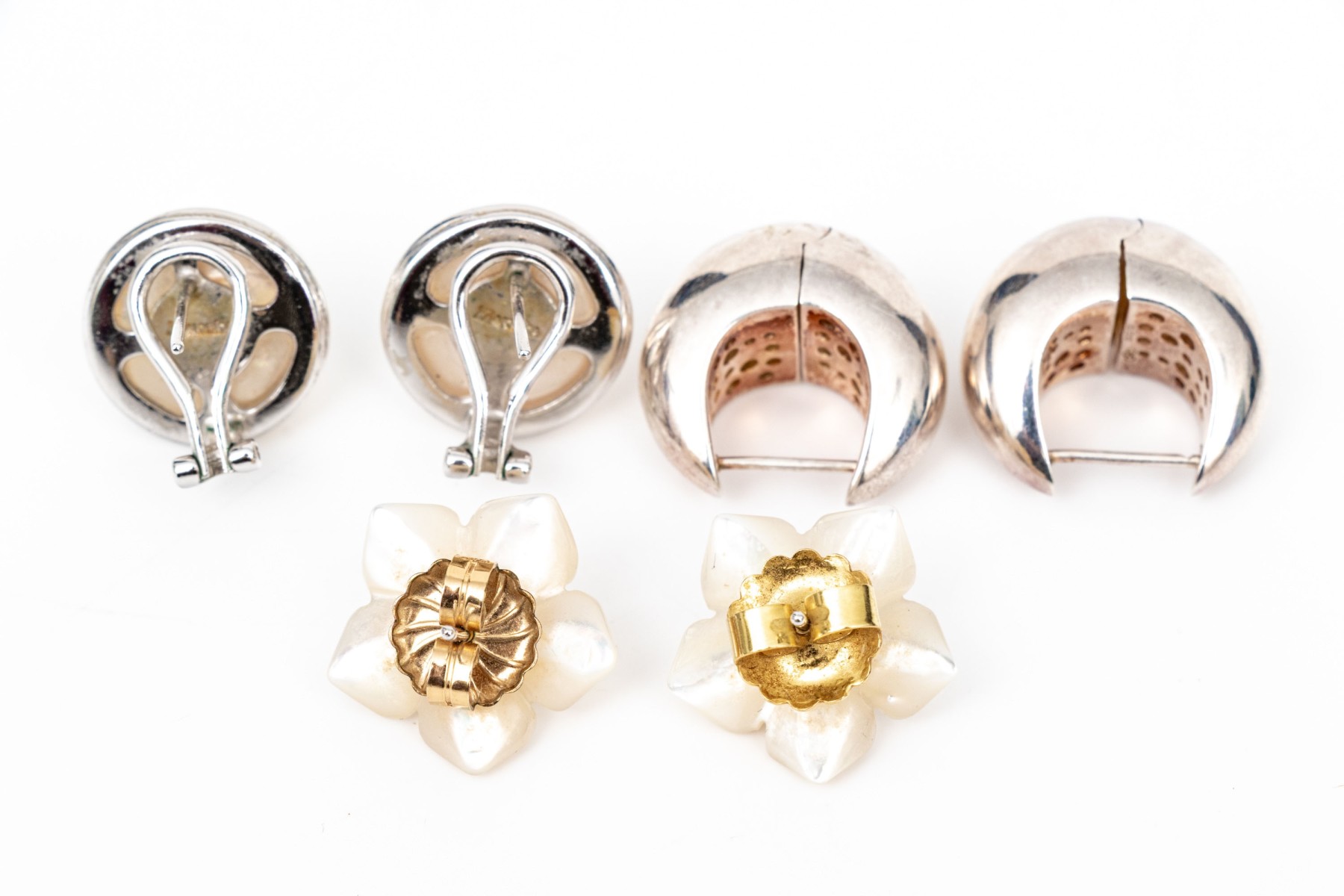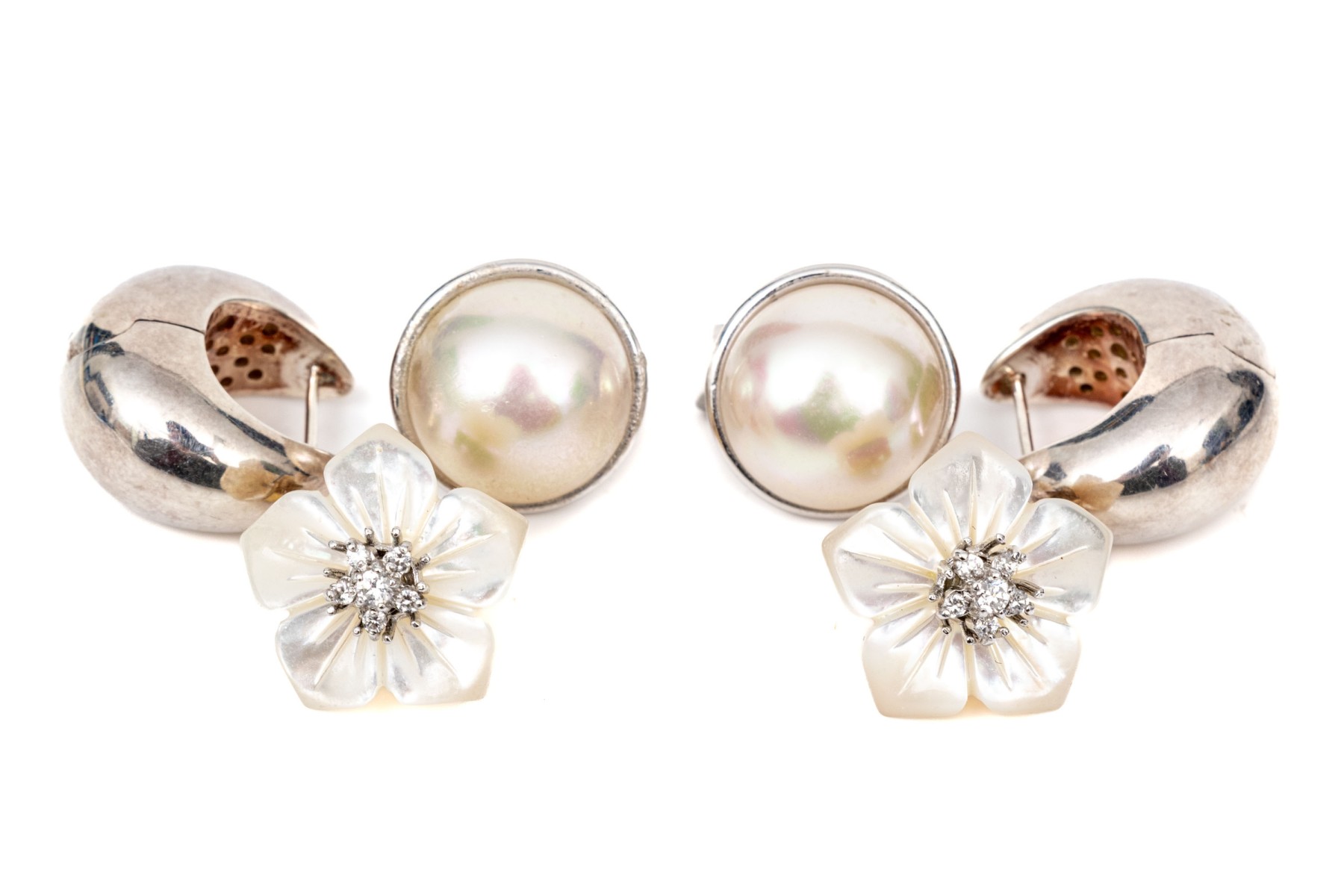 Collection of handsome sterling silver pairs, including Majorica faux pearl
