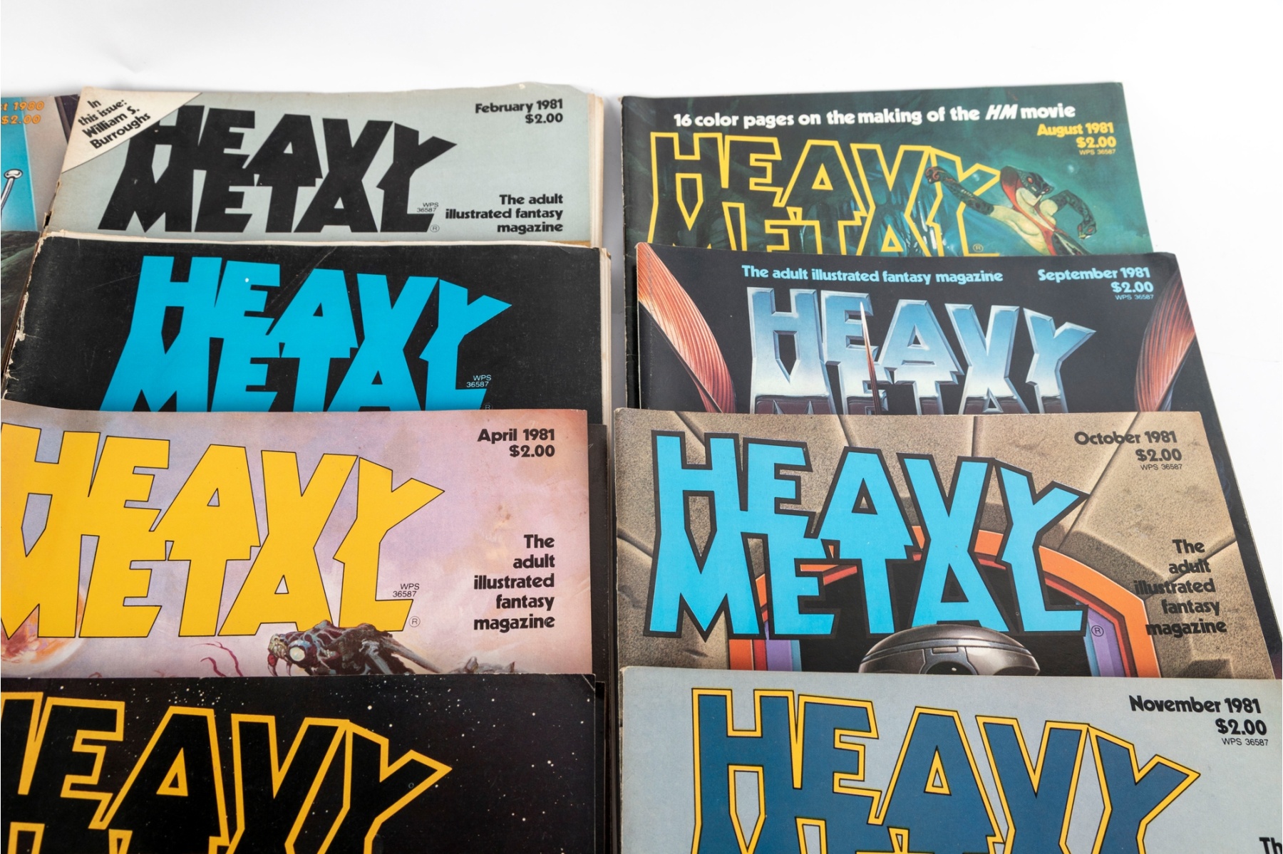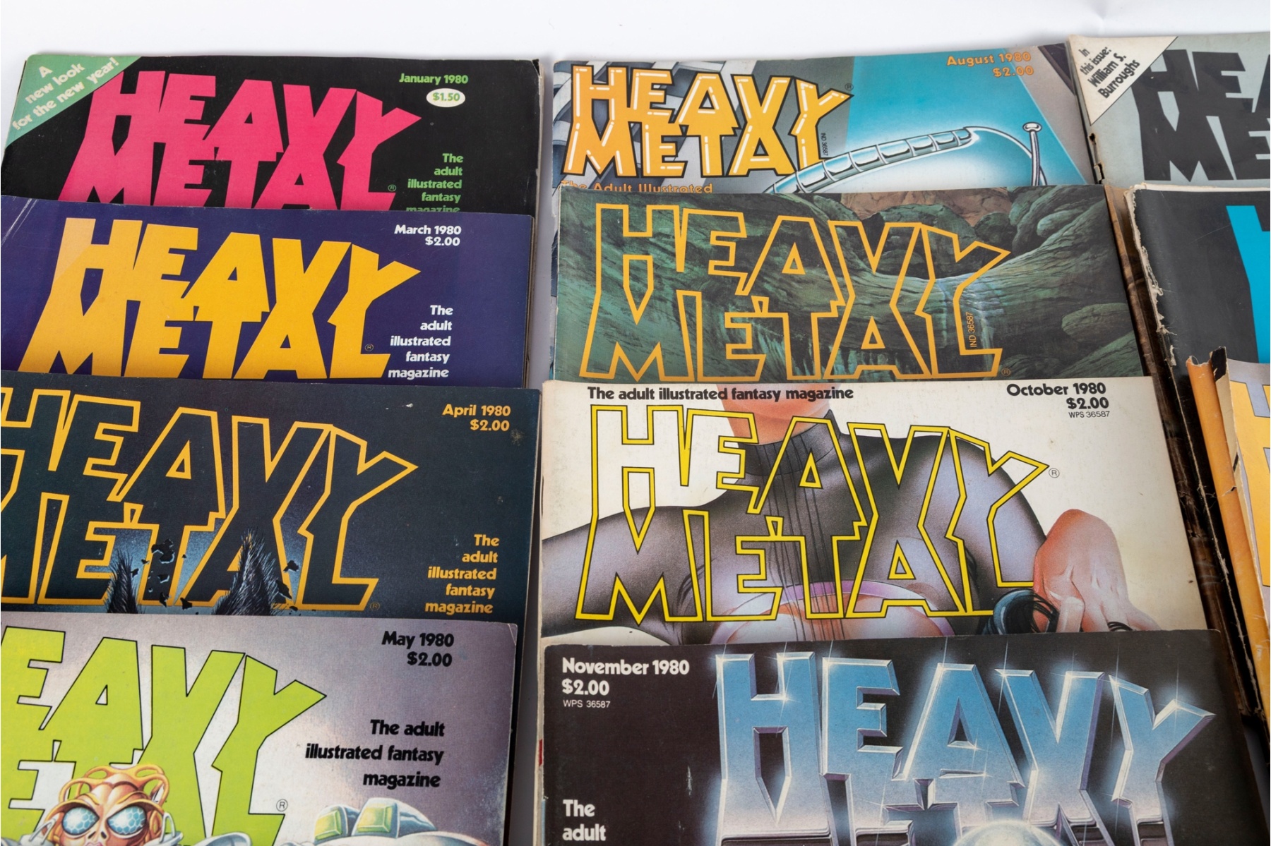 Large group of vintage Heavy Metal magazines dating from 1980 through 1982, featuring iconic sci-fi, fantasy, and surrealist artwork from some of the era’s most sought-after illustrators. Issues include monthly publications spanning February 1980, October 1980, April 1981, several 1982 issues, and more.