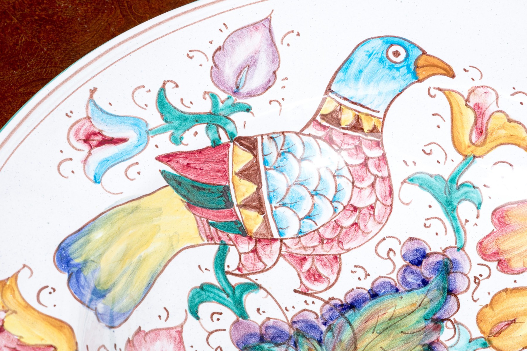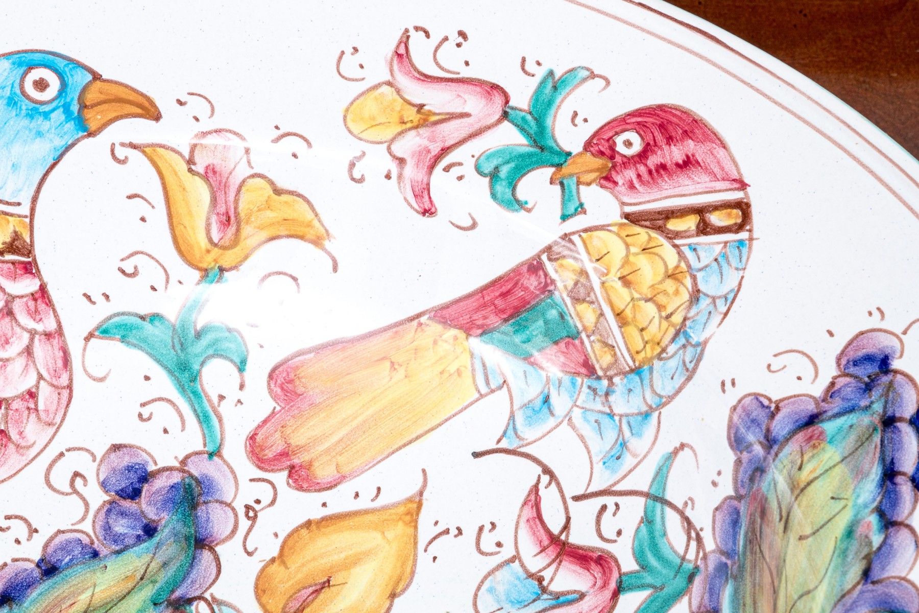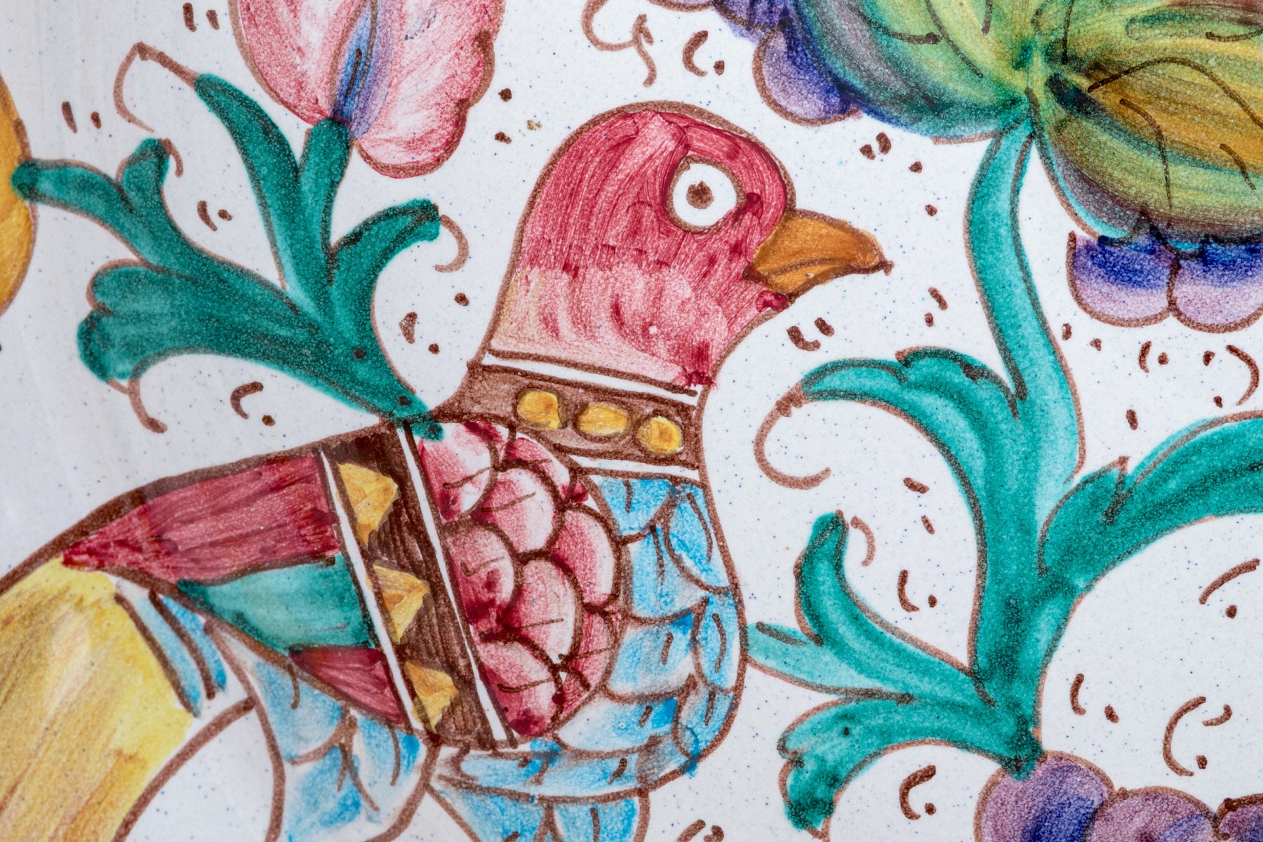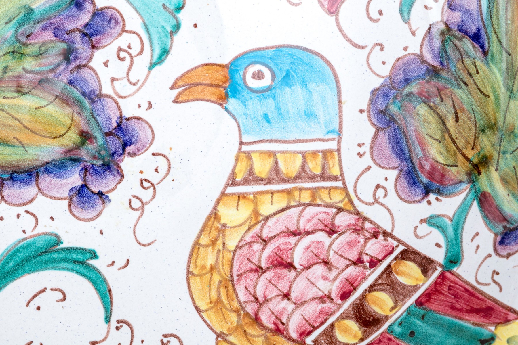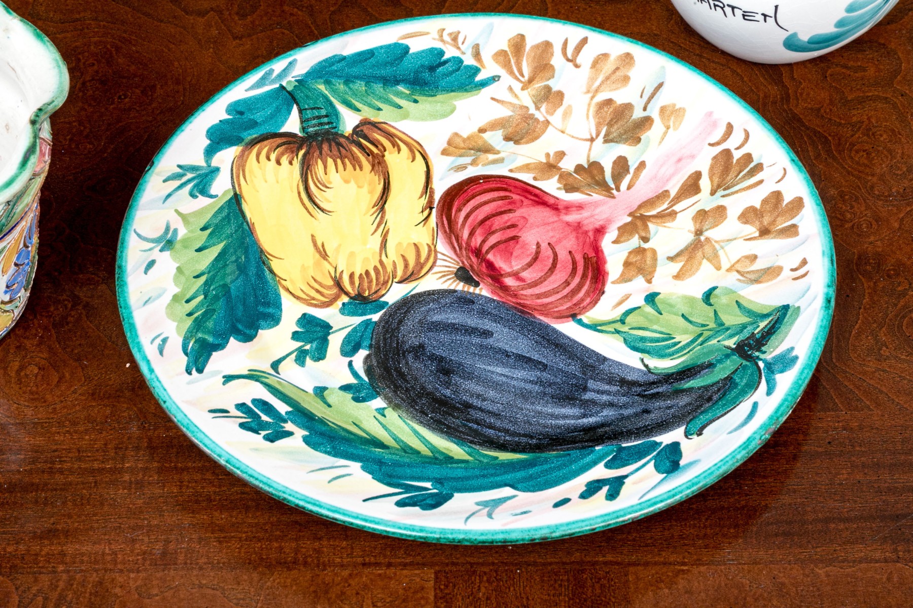 Comprised of hand painted duck form ewer, marked “Restaurant L’Ecargot / Sint-Maarten”, together with a pair of painted and carved jardinieres, with a dish and serving bowl.