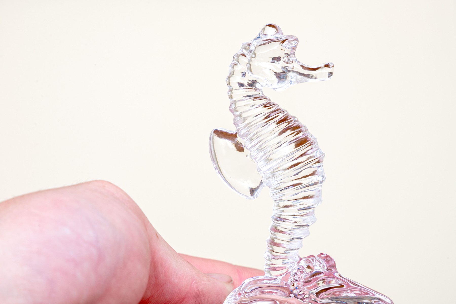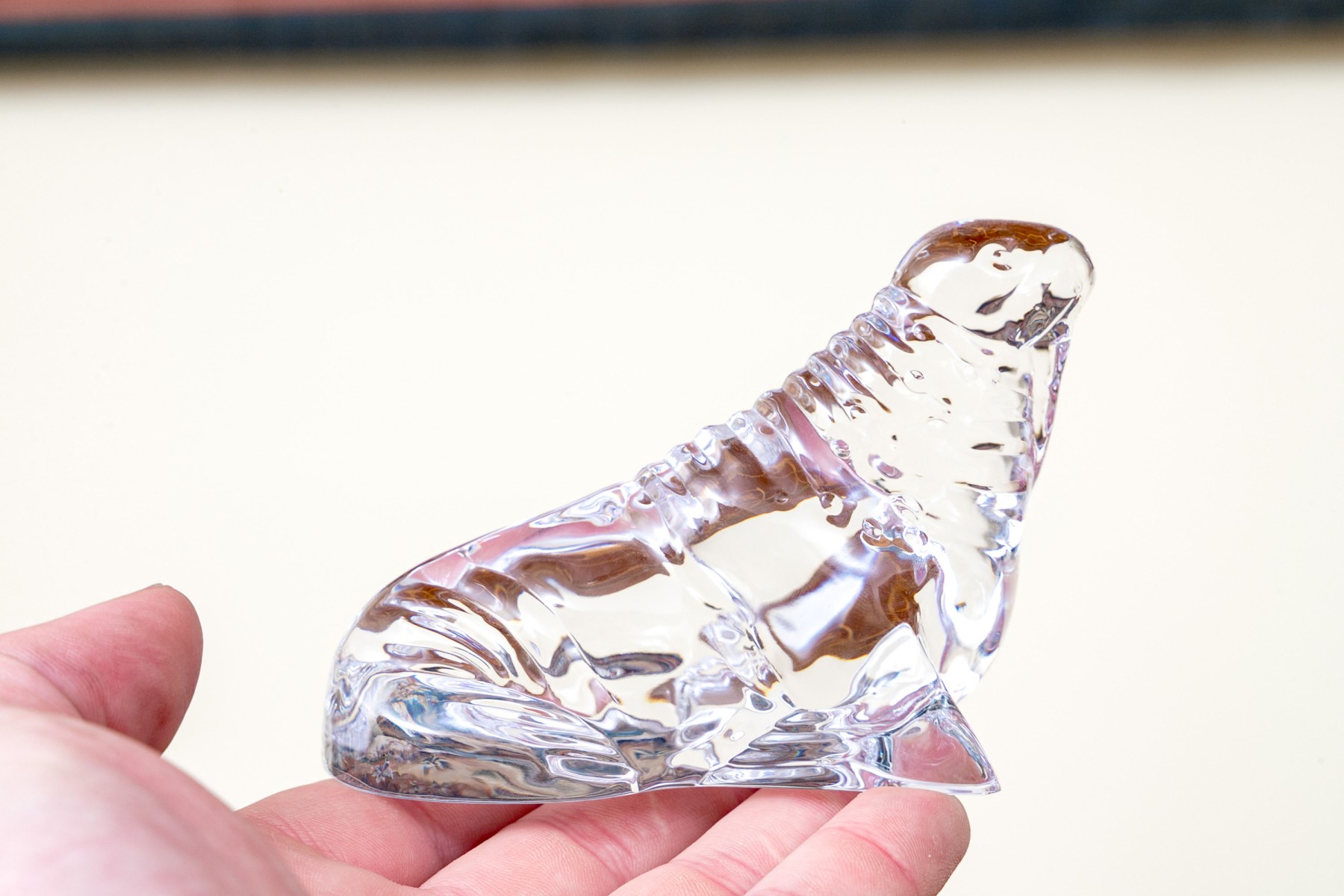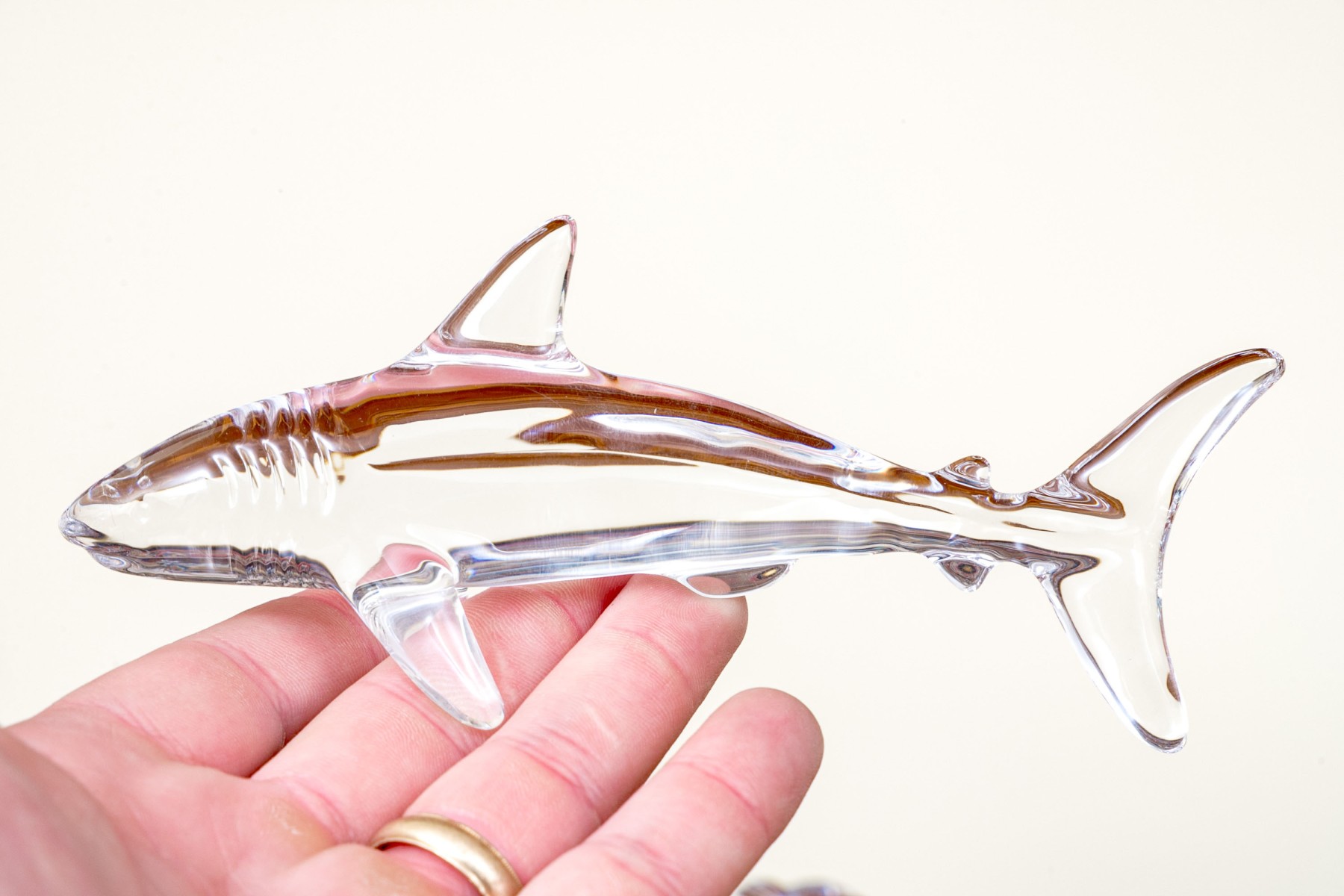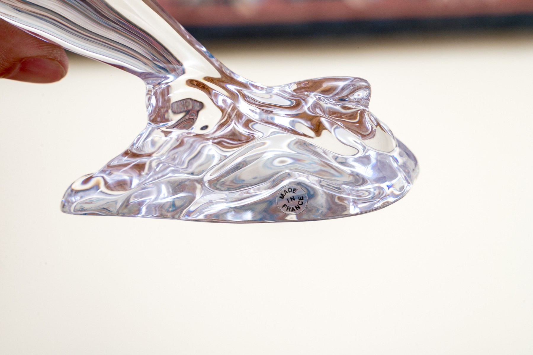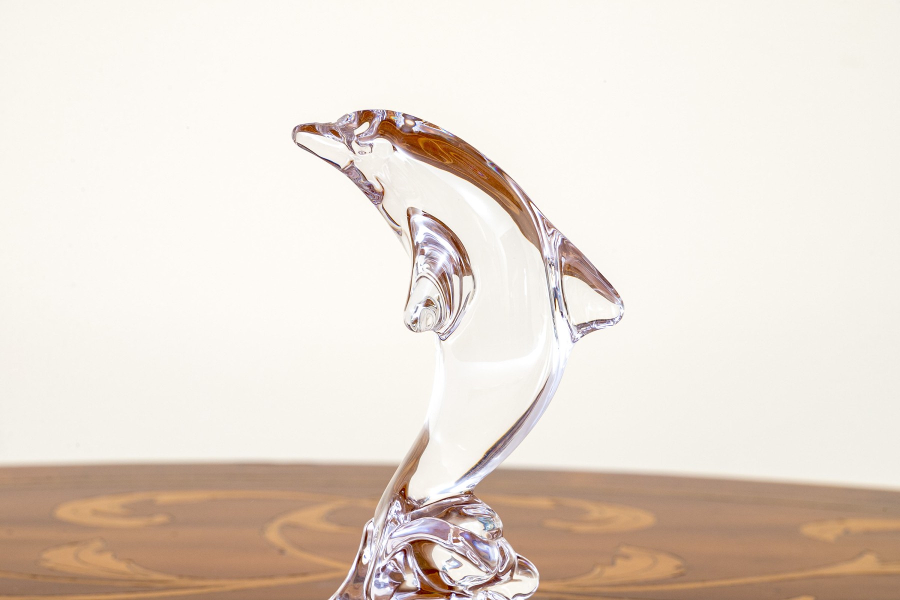 A wonderful assortment of eight crystal figurines depicting various marine animals including dolphins, seahorses, seals, sharks, and turtles, accompanied by a polar bear. Various pieces marked made in france, with one marked Sevres.