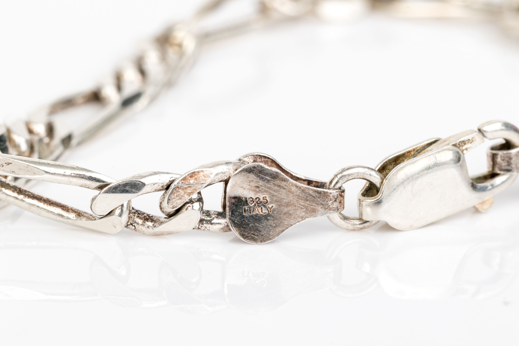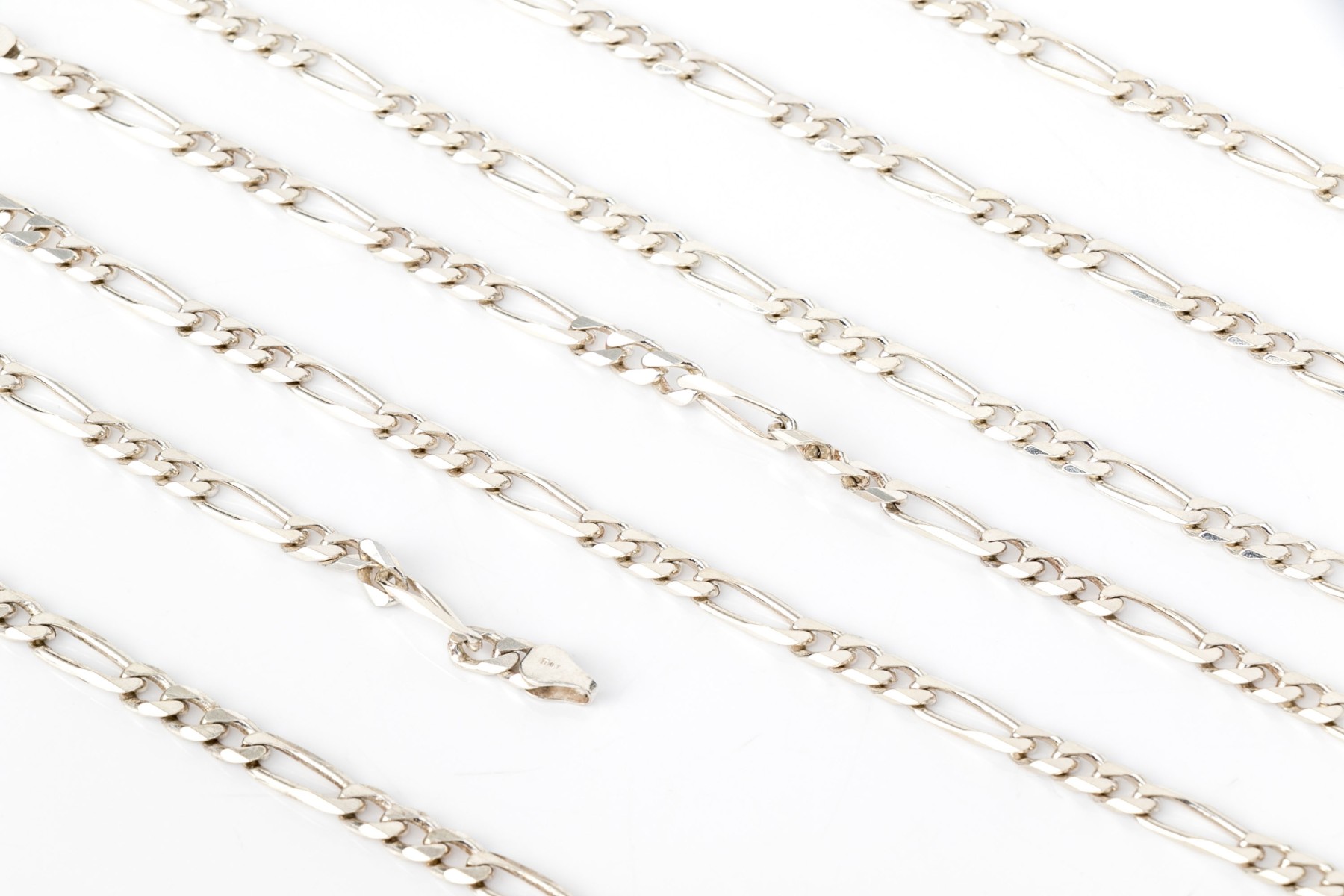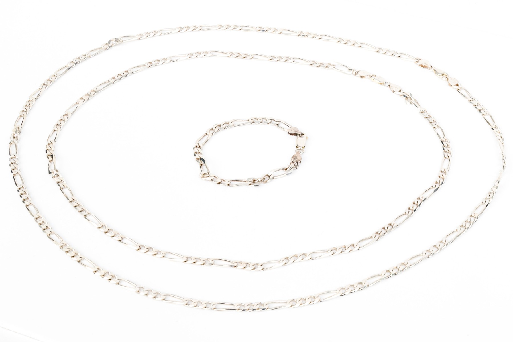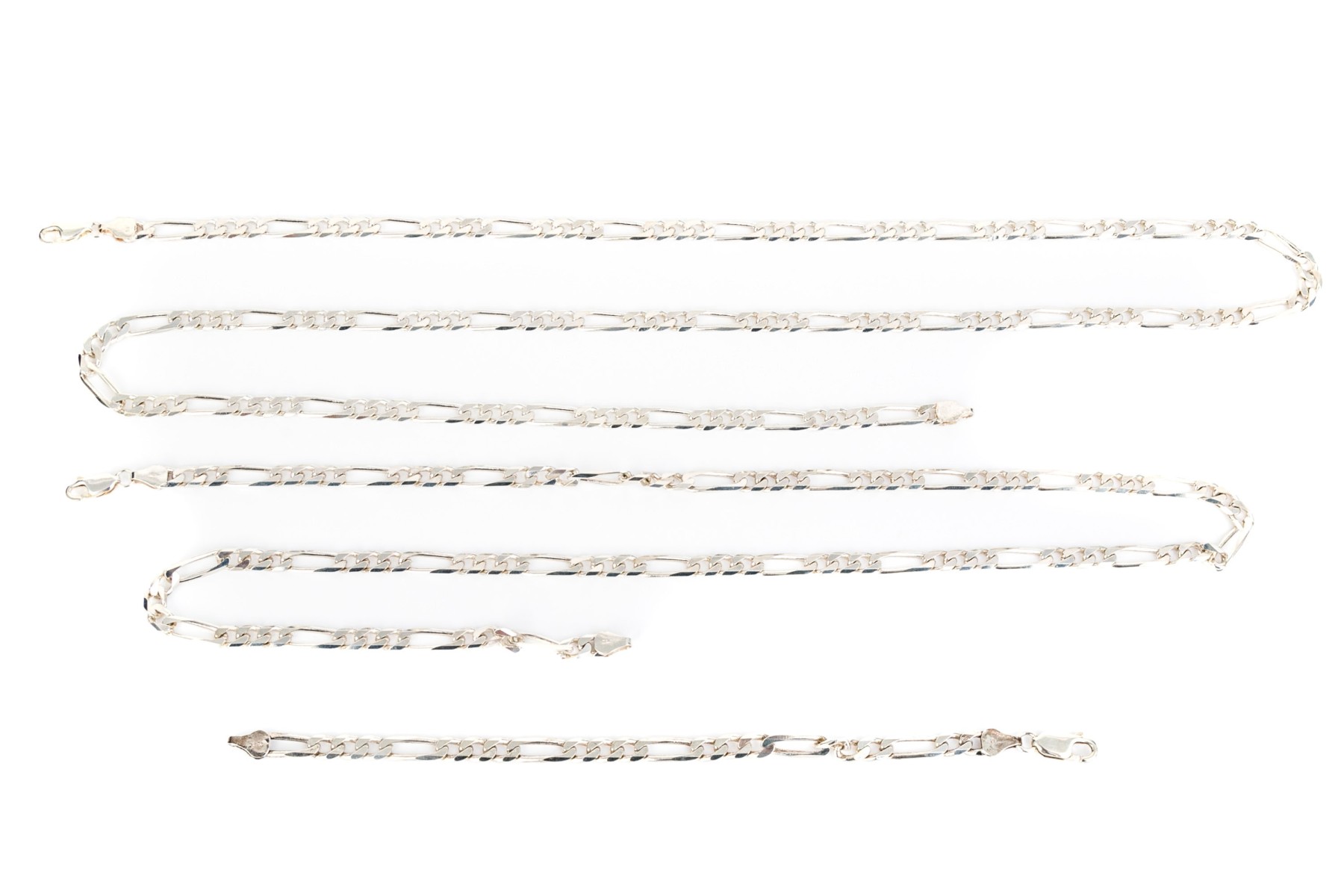 Collection of matching sterling silver figaro link necklaces, and bracelet, finished with lobster claw clasps